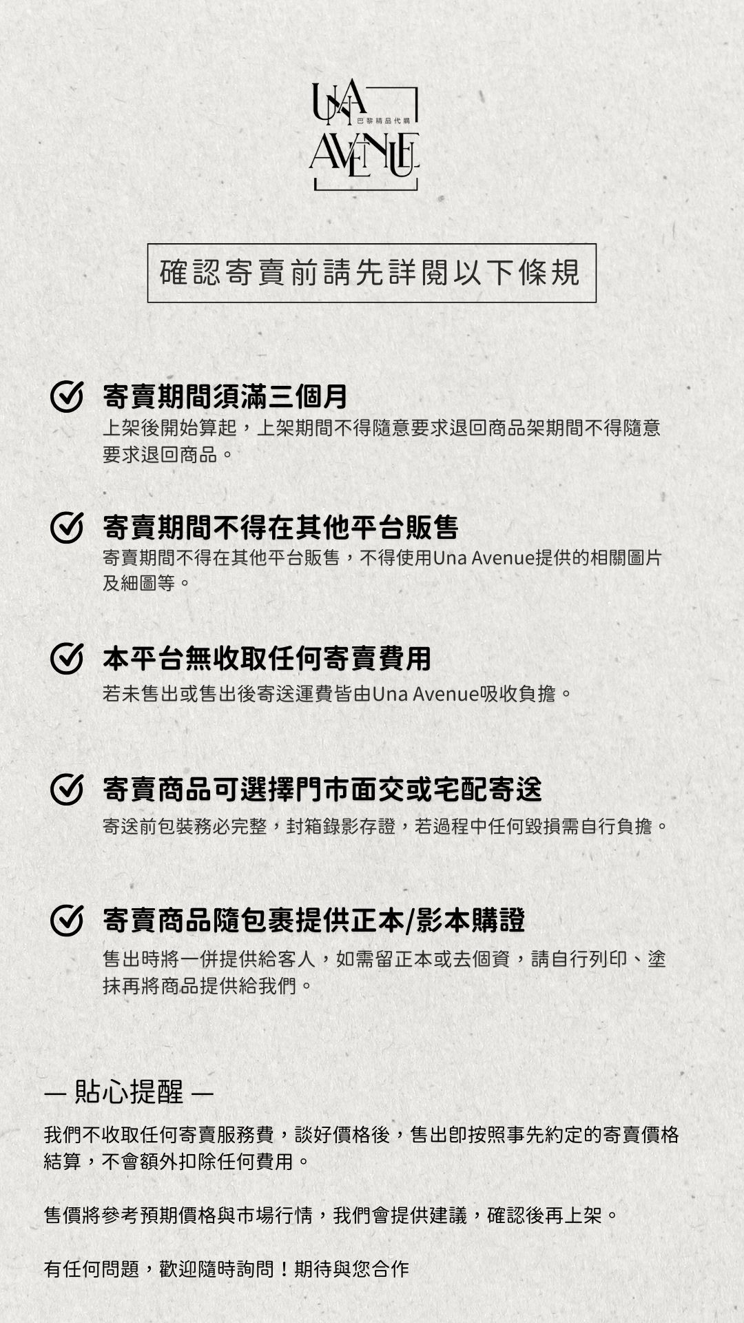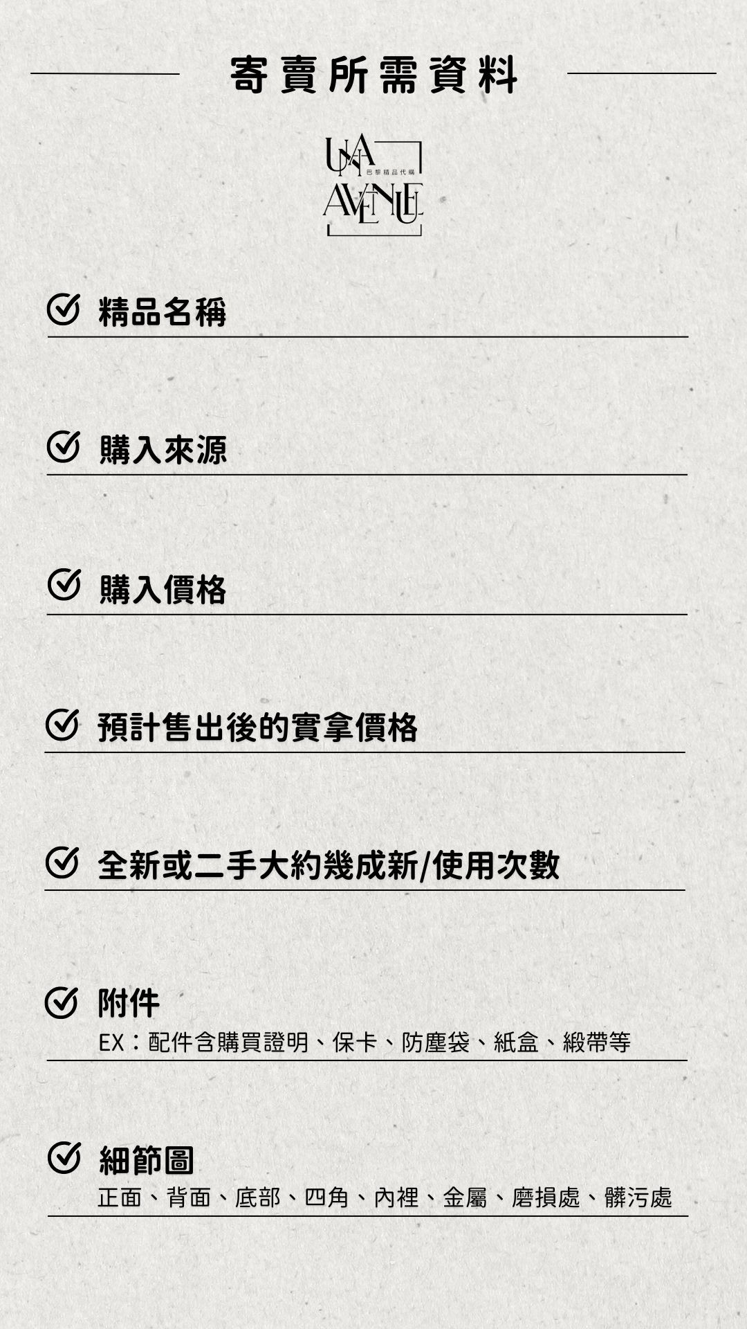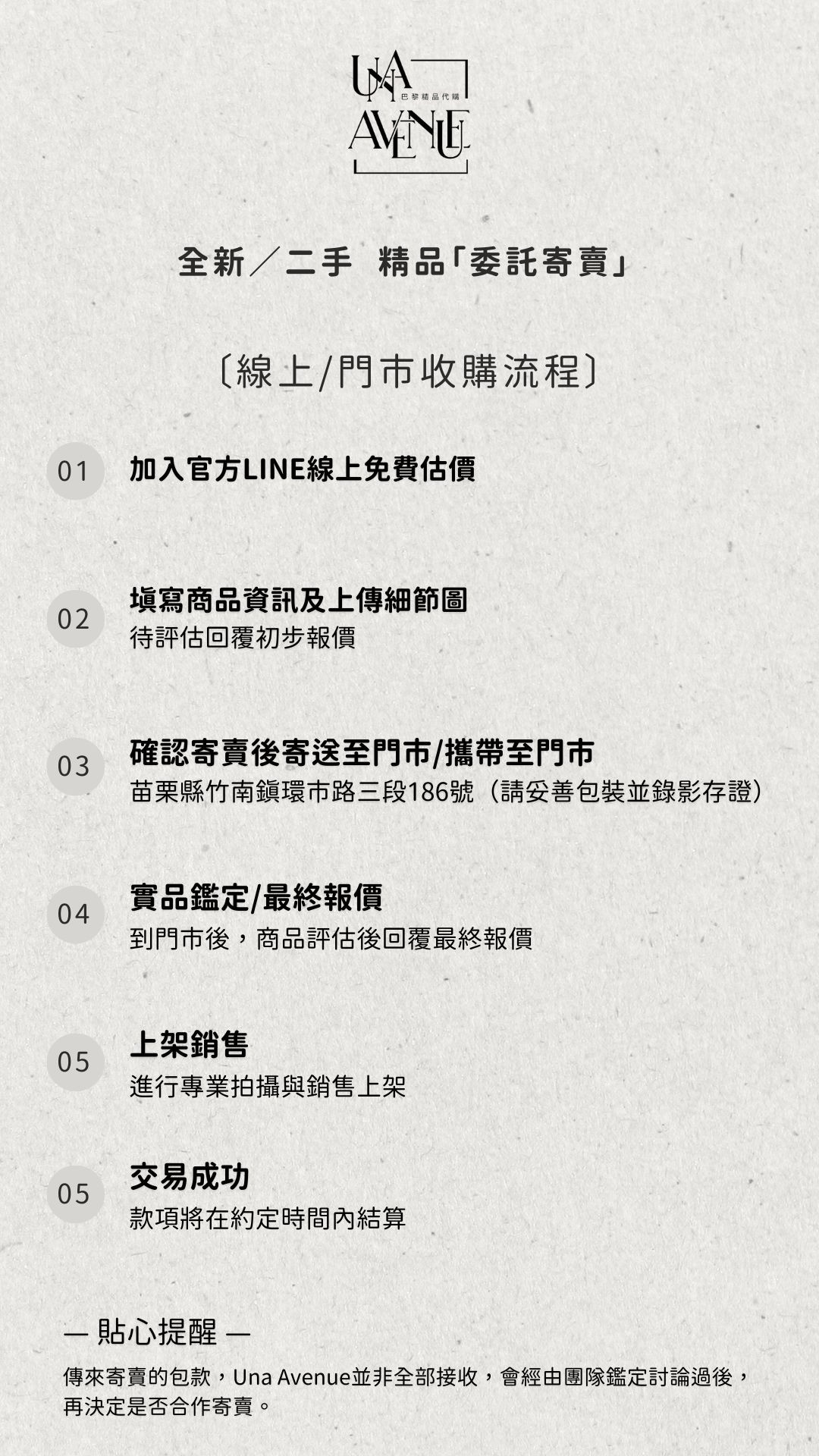 你買貴的包也能變現,買精品更有價值! 〔 寄 賣 須 知 〕〔 寄 賣 流 程 〕官方LINE:@loveuna 〔 寄 賣 所 需 資 料 〕 〔 寄 賣 細 節 照 片 〕 〔 商 品 成 新 分 級 〕 立即加入LINE免費估價