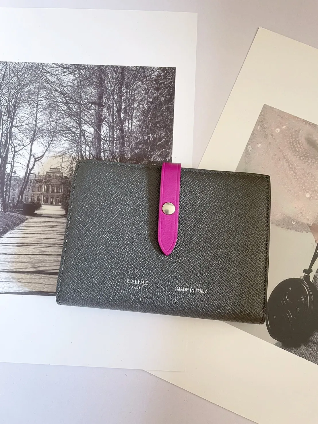 01標 Celine 大象灰+亮紫雙色中夾 有防塵 全新閒置