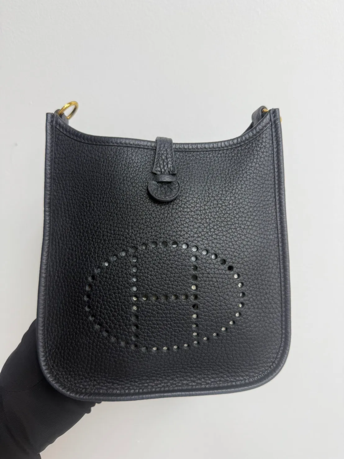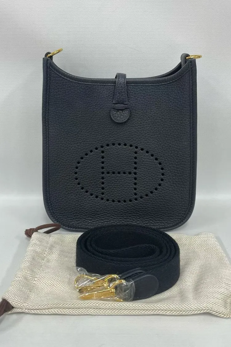 027 Hermes mini evelyne黑金 B刻 黑背帶 99成新