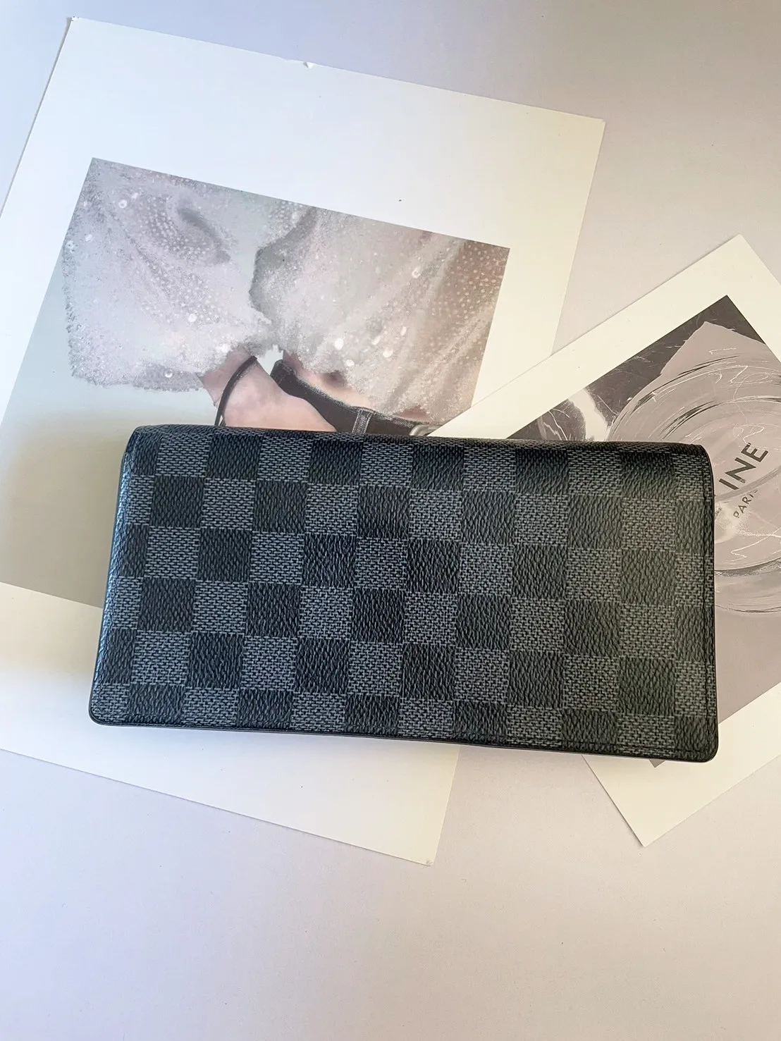 07標 LV 黑棋盤隔開合長夾 95成新