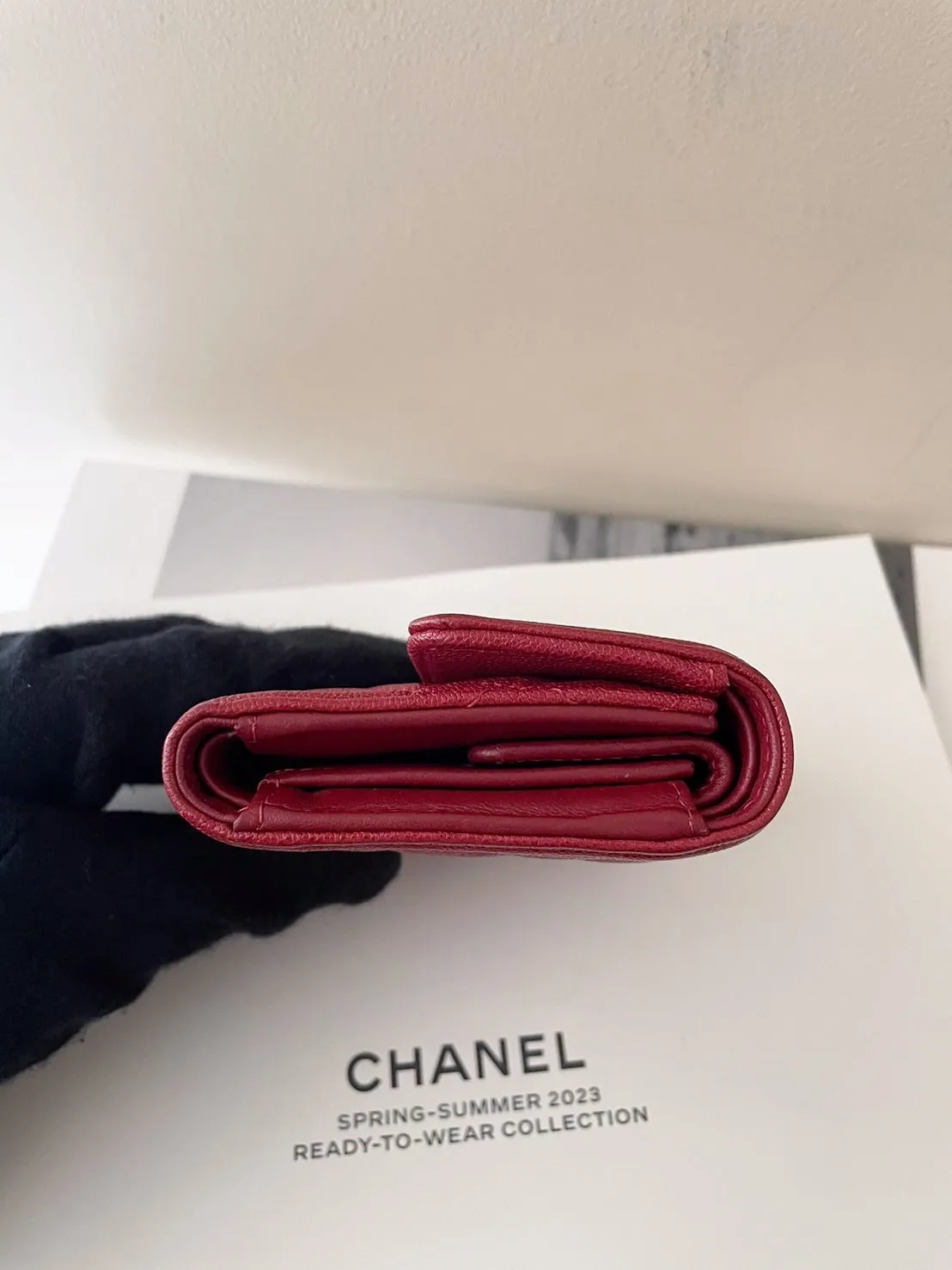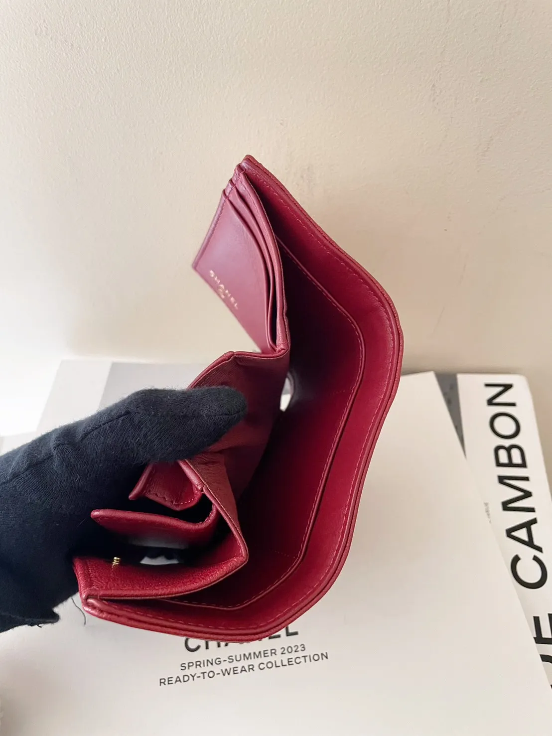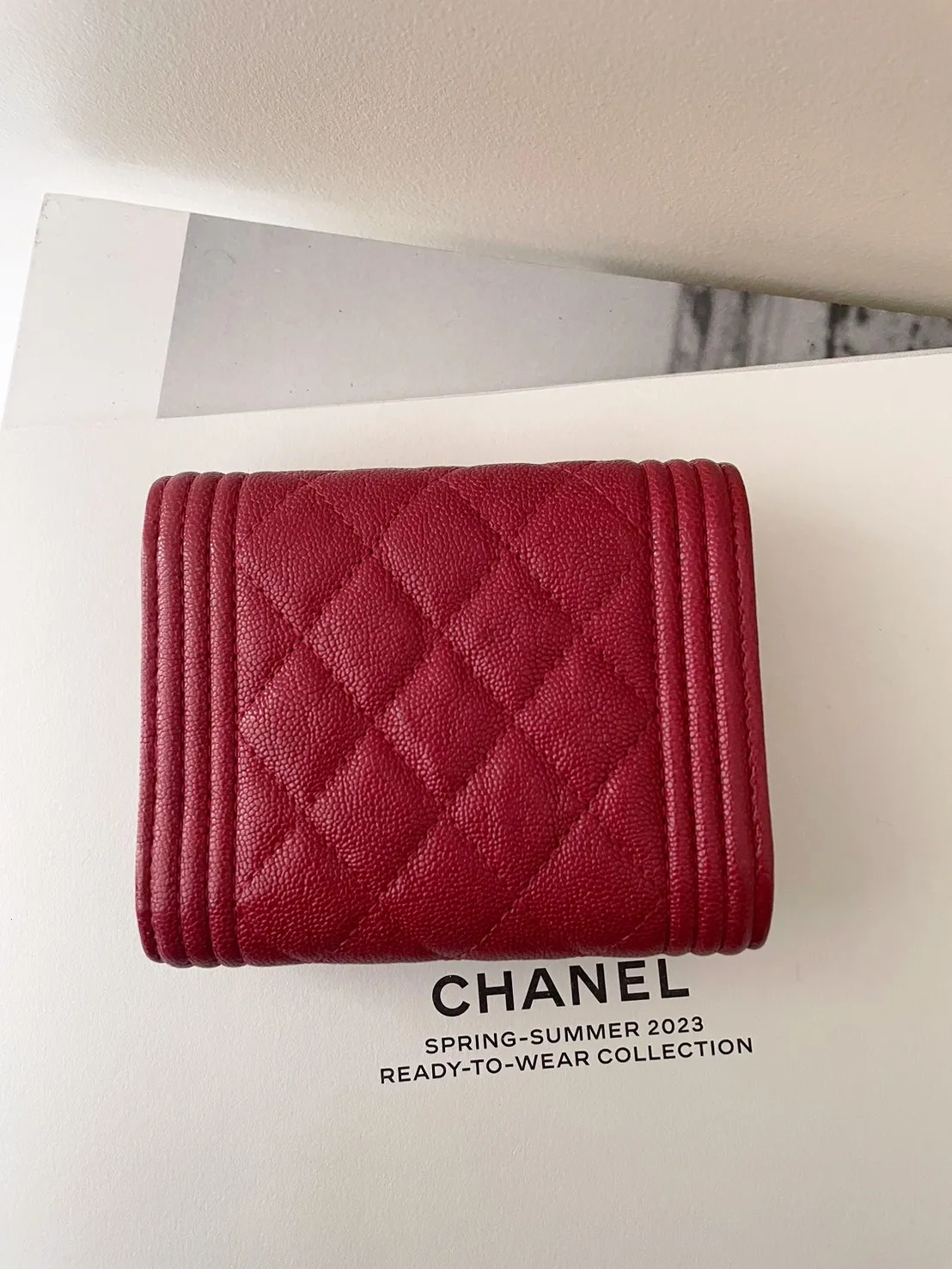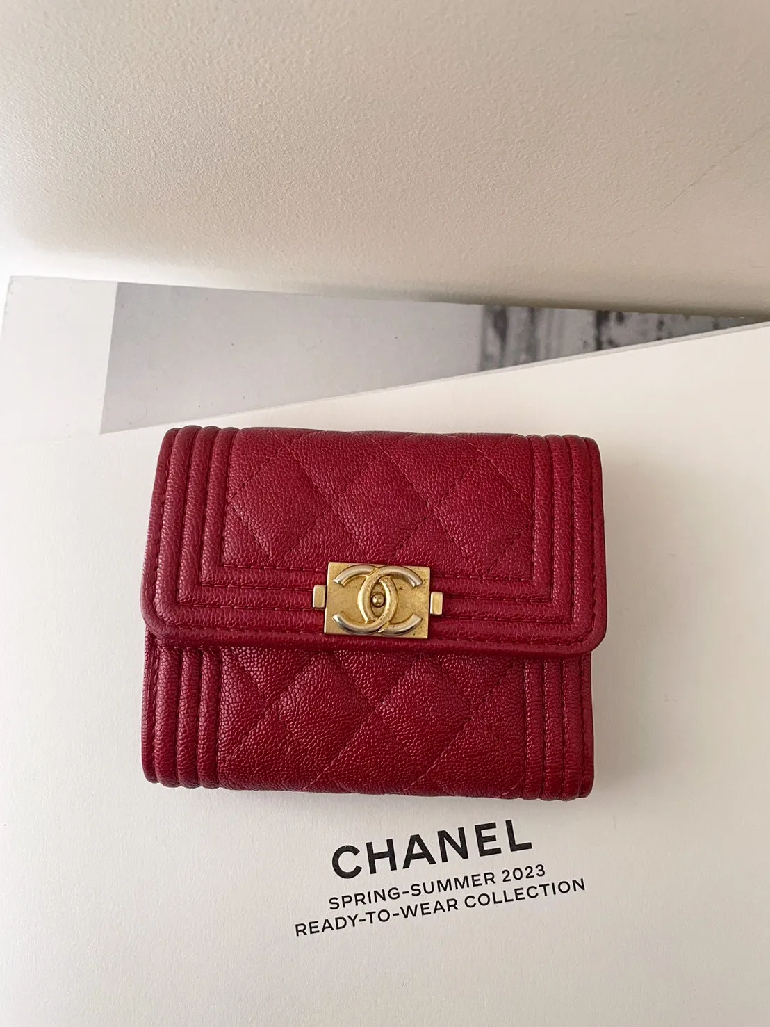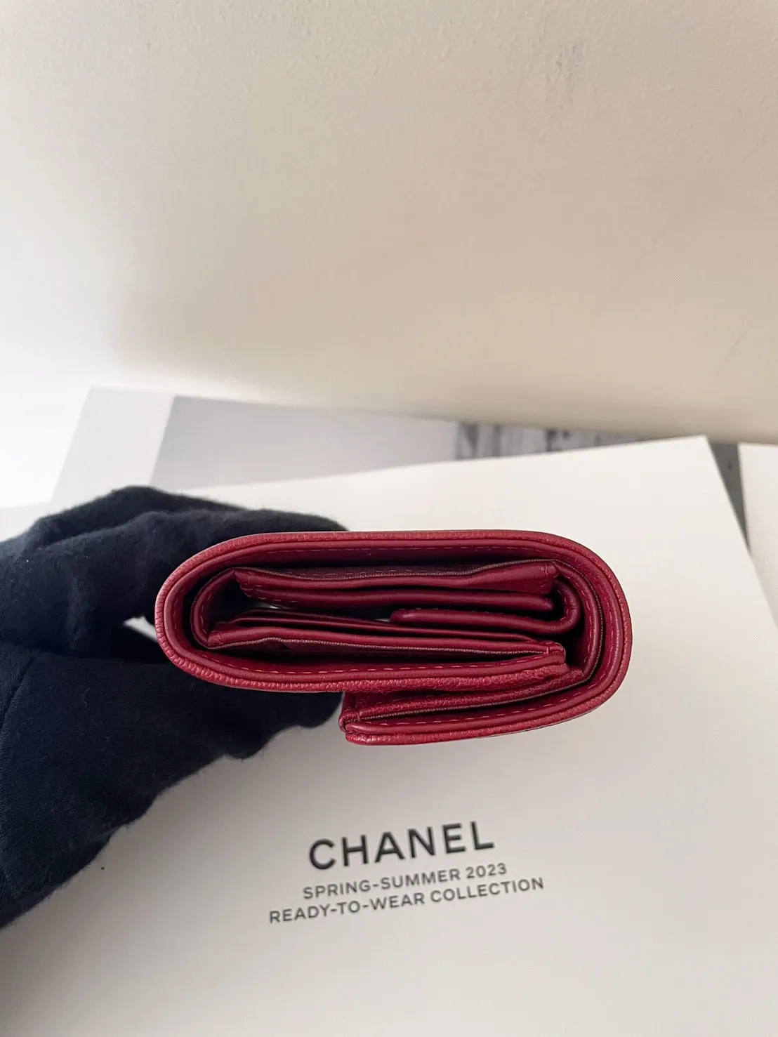 09標 Chanel BOY三折短夾 荔枝皮 紅色金扣 全新閒置