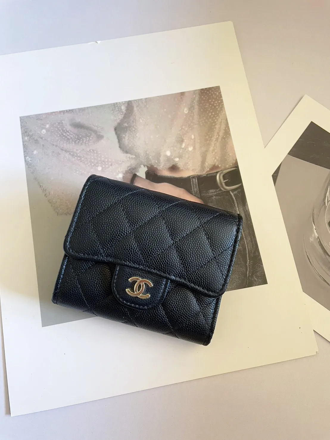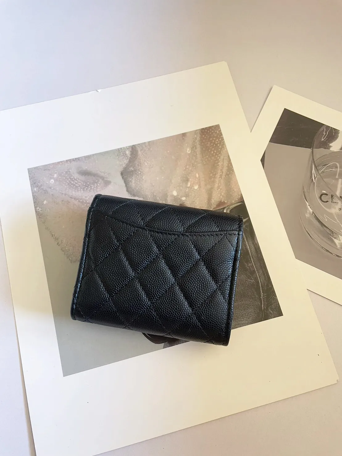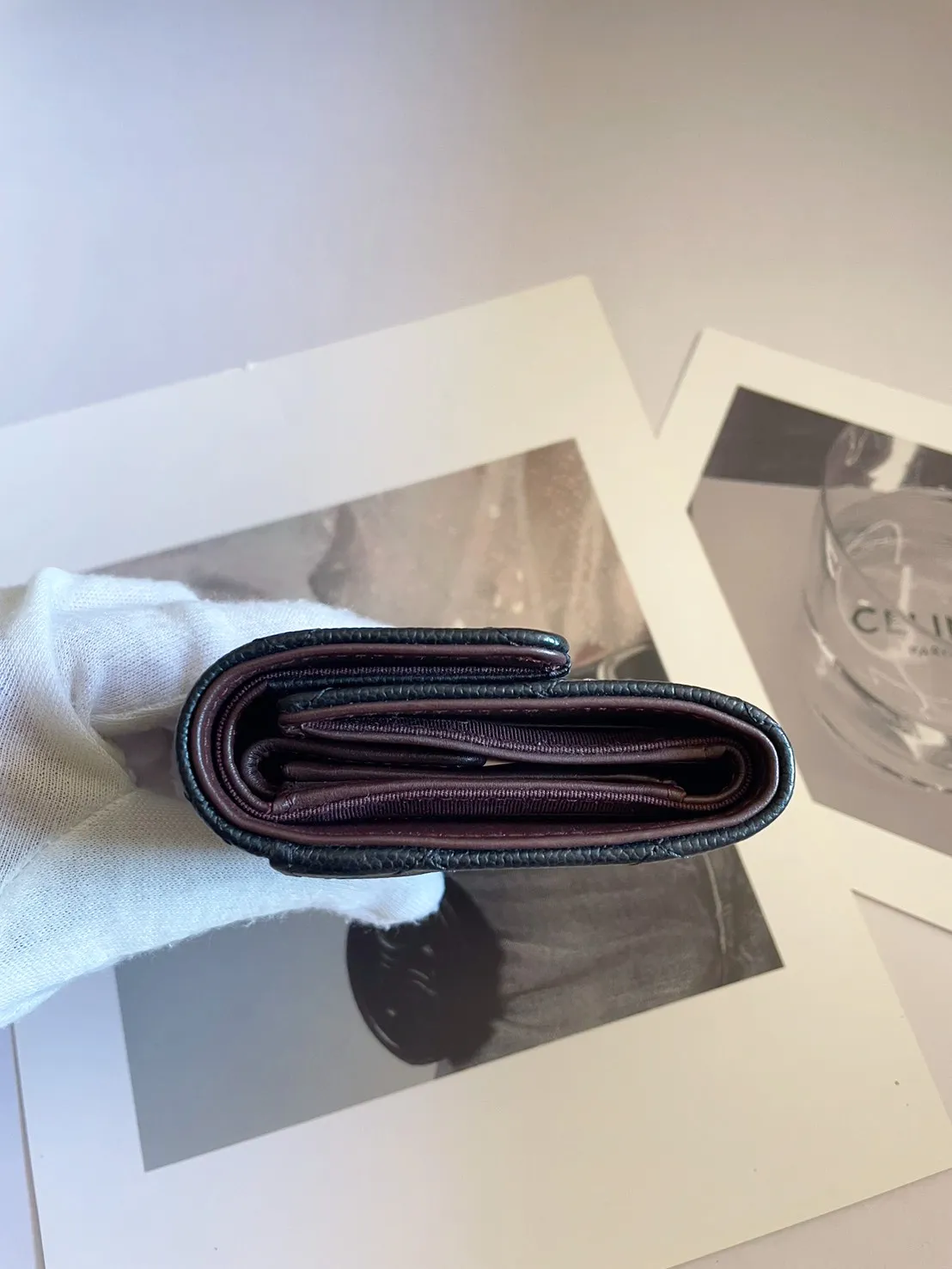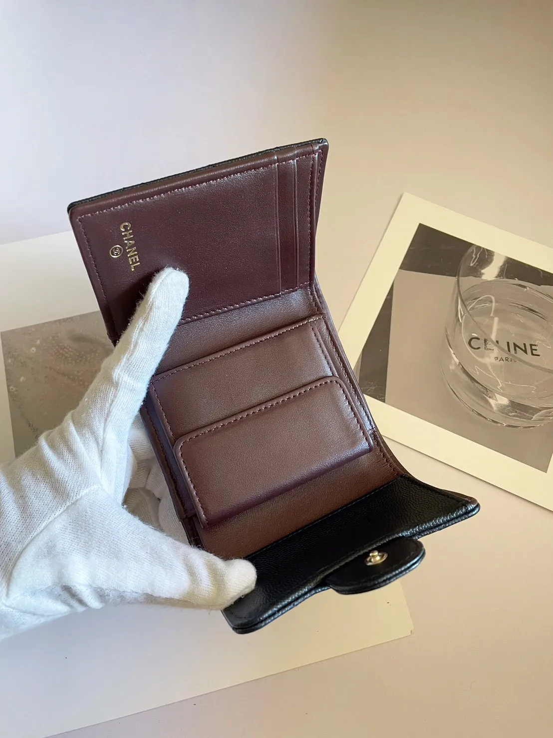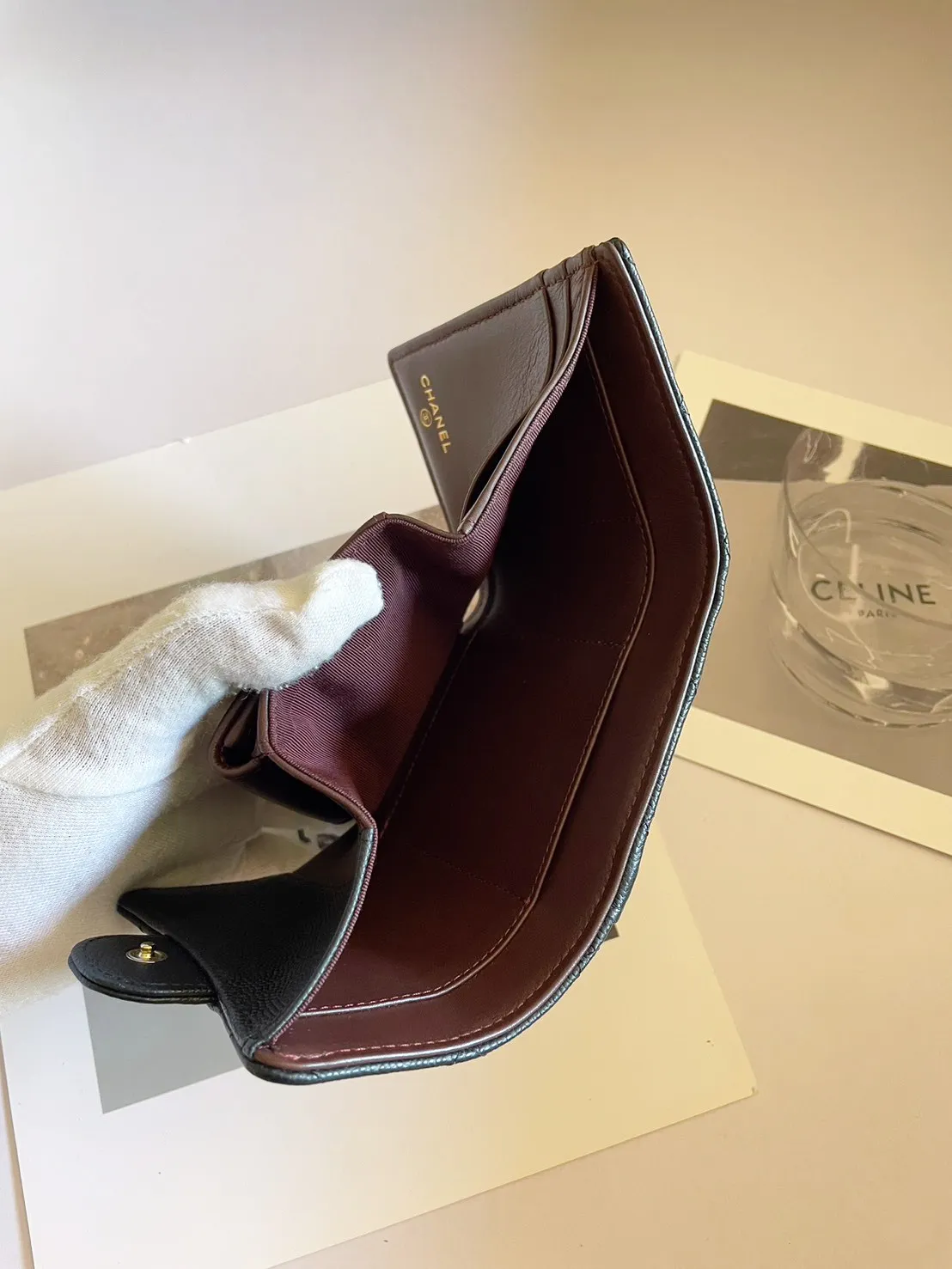 10標 Chanel 黑金荔枝牛三折短夾 28開 99成新