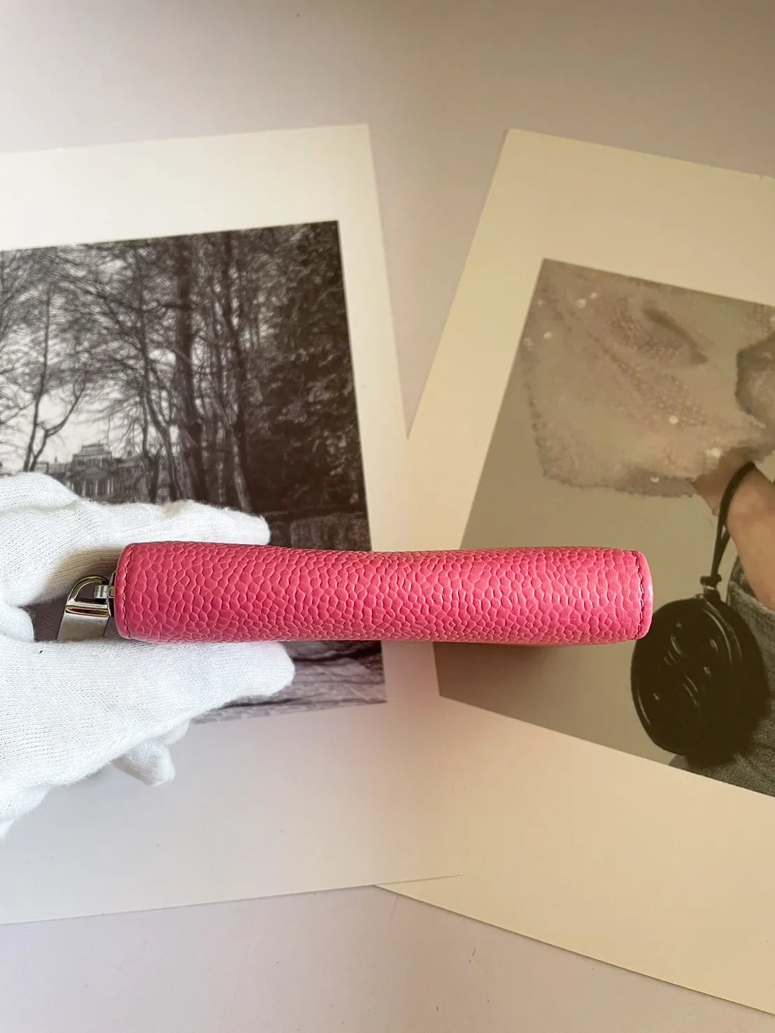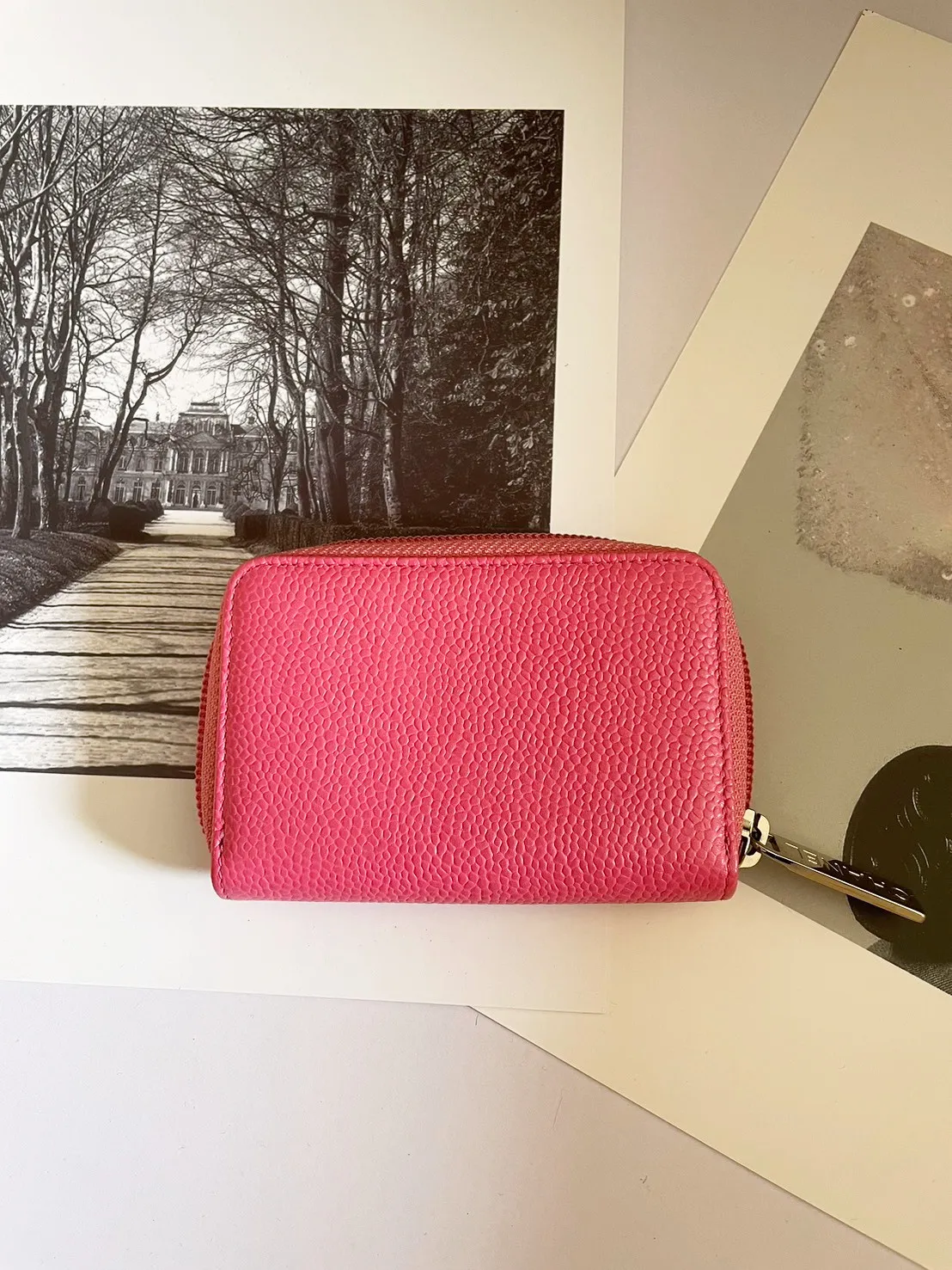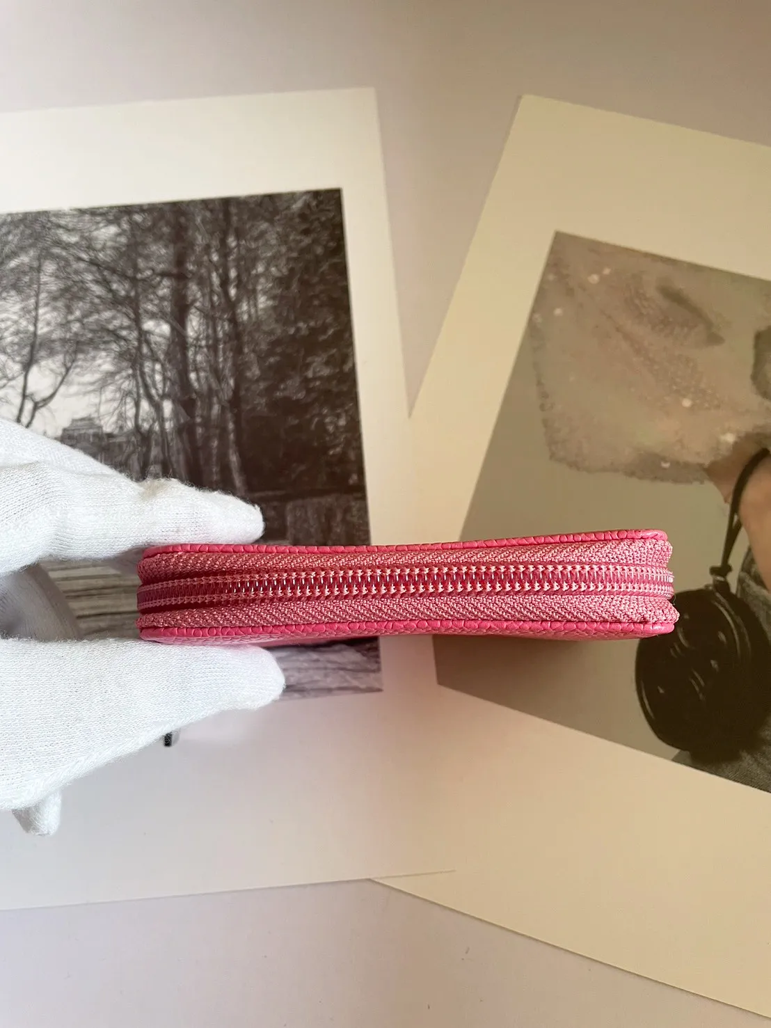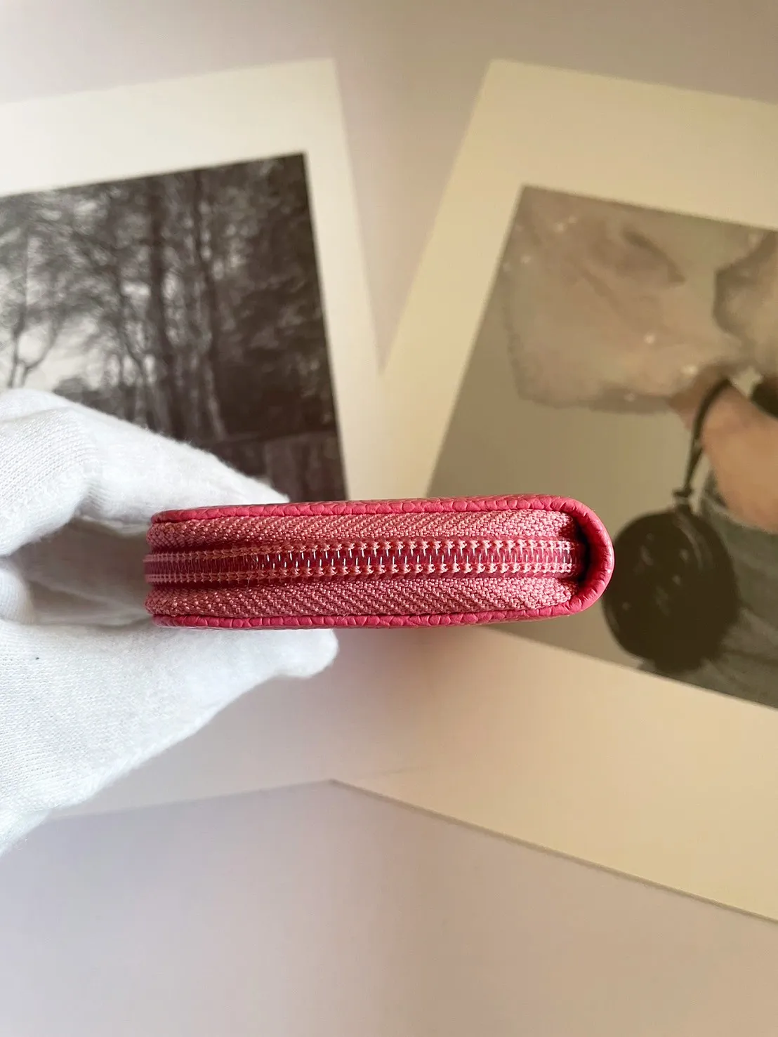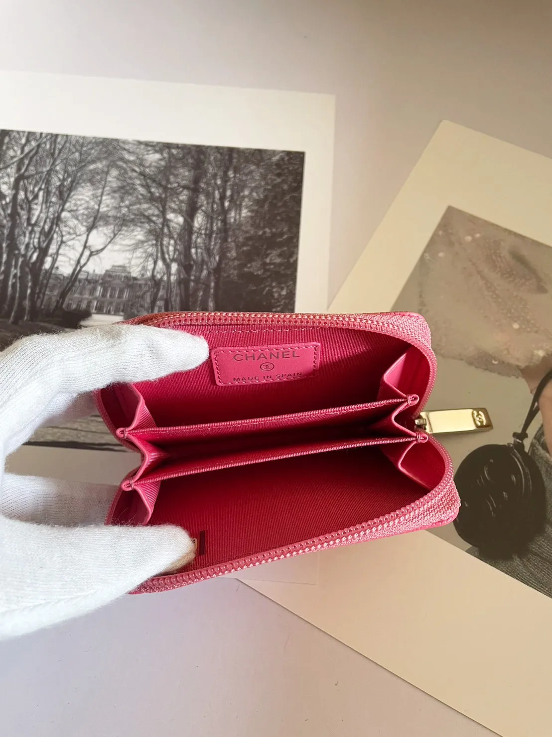 12標 Chanel 桃粉色荔枝皮銀扣拉鏈零錢包 22開 95成新
