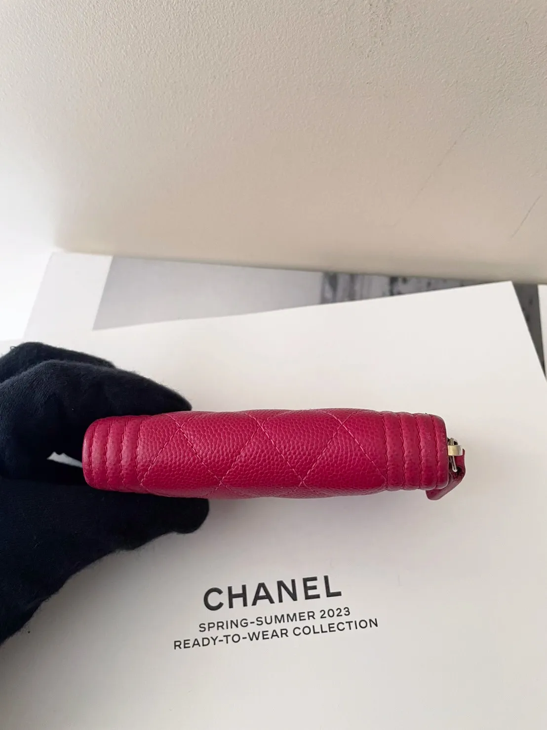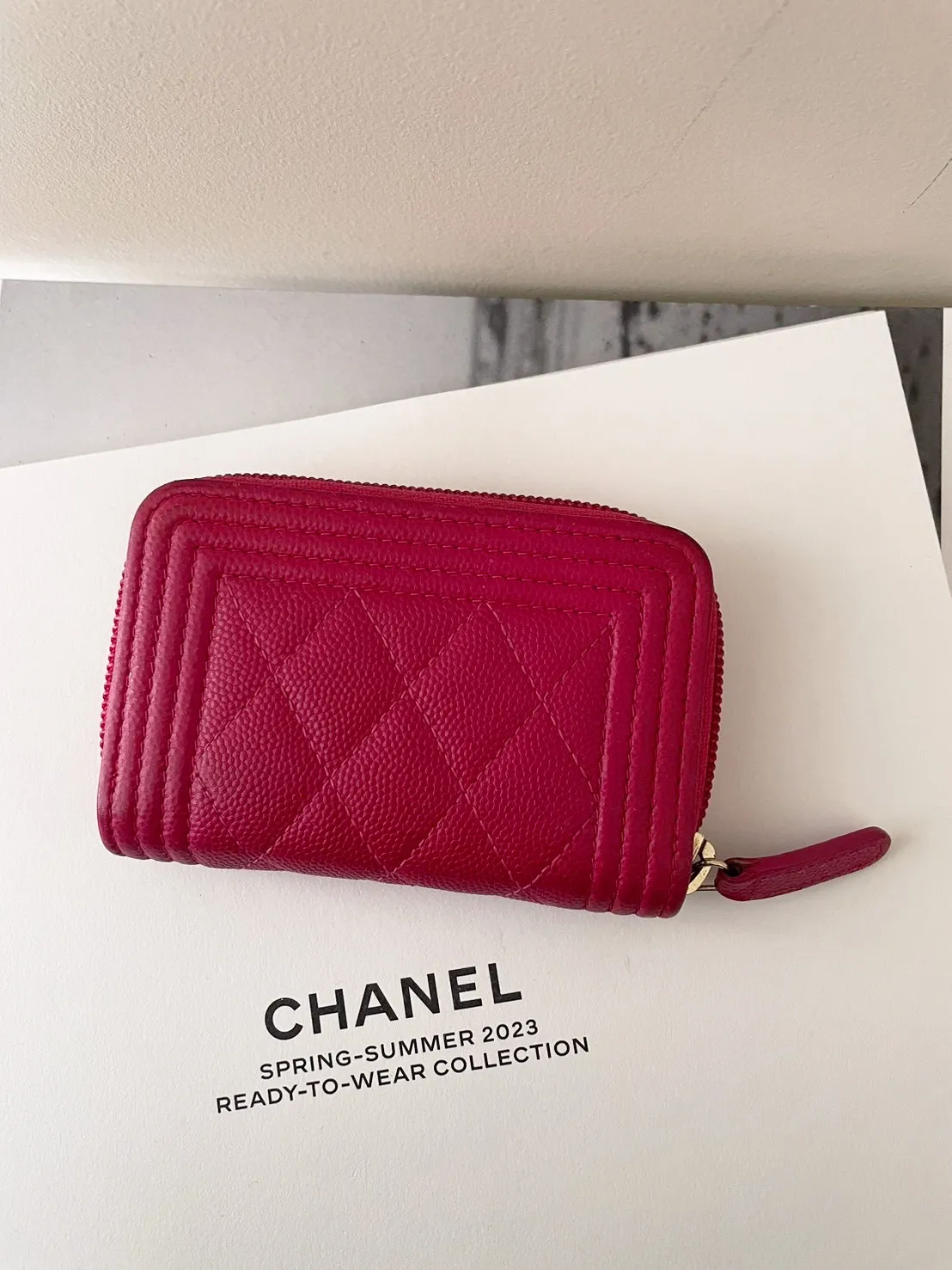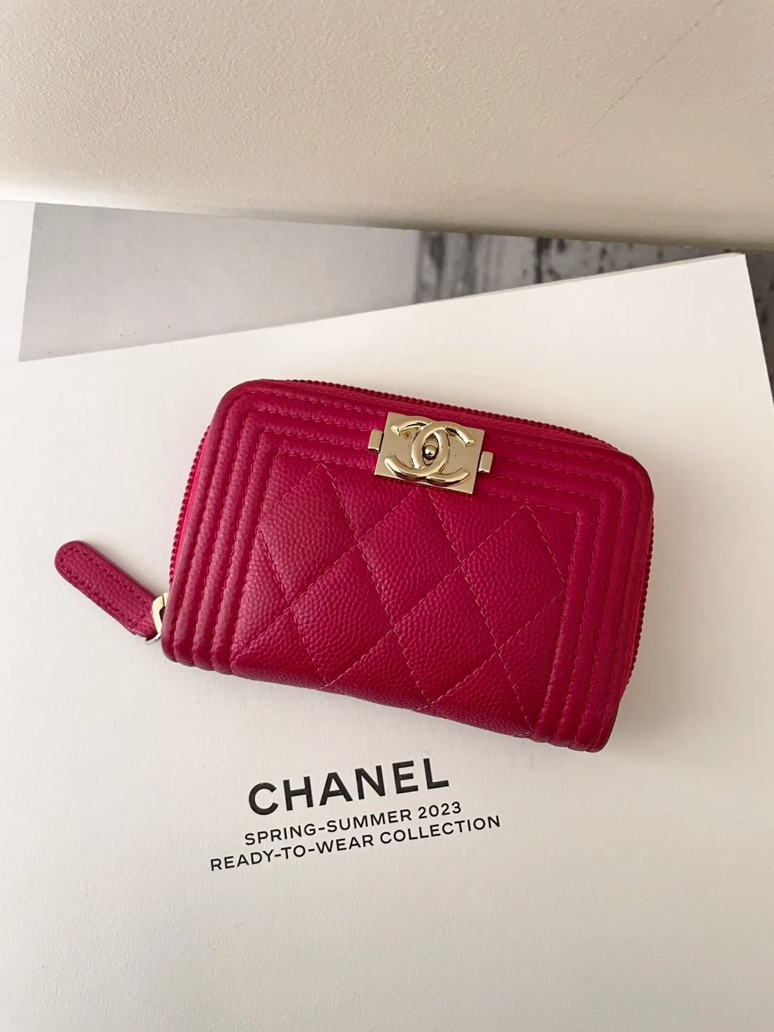 14標 Chanel BOY卡包 玫紅金扣 保卡/有盒 95成新