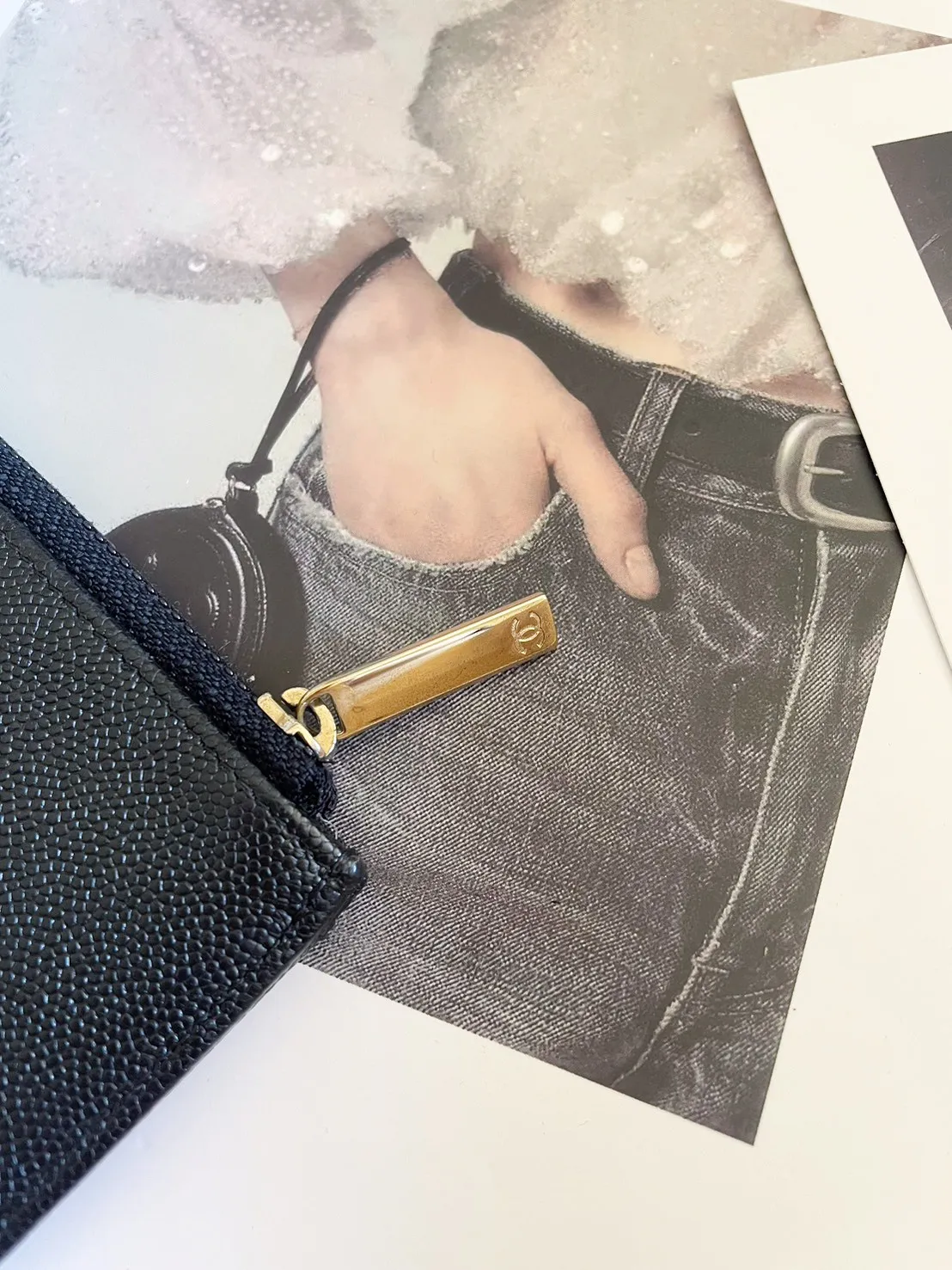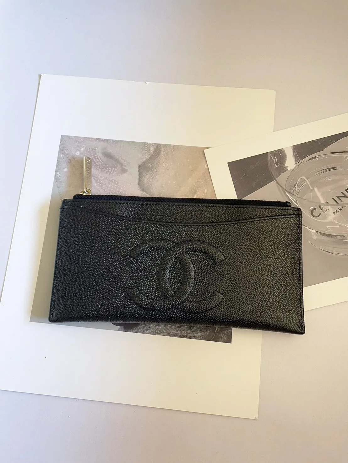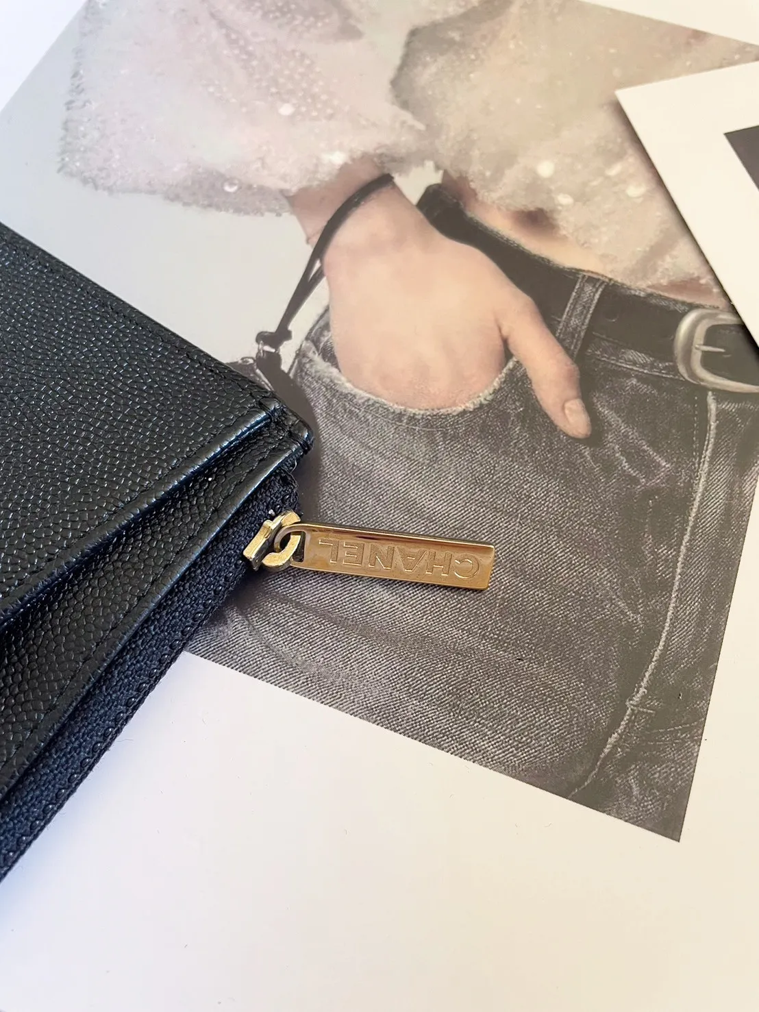 19標 Chanel 黑色牛皮拉鍊長夾 26開 全配 99成新