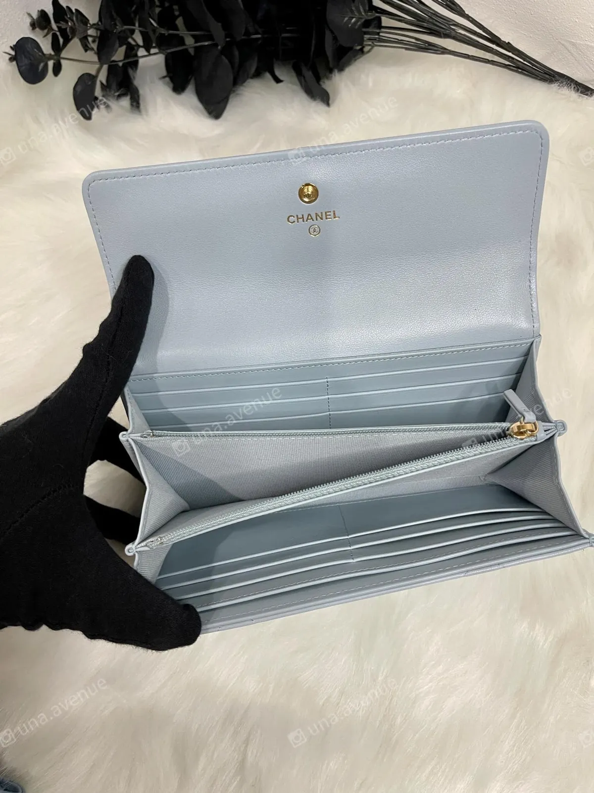 一見鍾情的皮夾 羊皮皮質柔軟又不嬌弱 這個藍真的深得 配上復古雙C大LOGO 真的太好看了!! 不喜歡短款三折的就一定要入手這長款 穩重又大氣 喜歡~~~~~ 所有商品照以實品、專櫃照為主,穿搭照為參考用。 下單前注意事項:1.購買前詳閱「關於我們」2.此賣場為「預購」下單前請line官方客服,勿直接下單。3.訂單成立後不接受任何理由退換貨。4.對商品尺寸、款式有疑慮多多善用「官方line」詢問。❣ 賣場所有商品皆為正貨 請安心購買