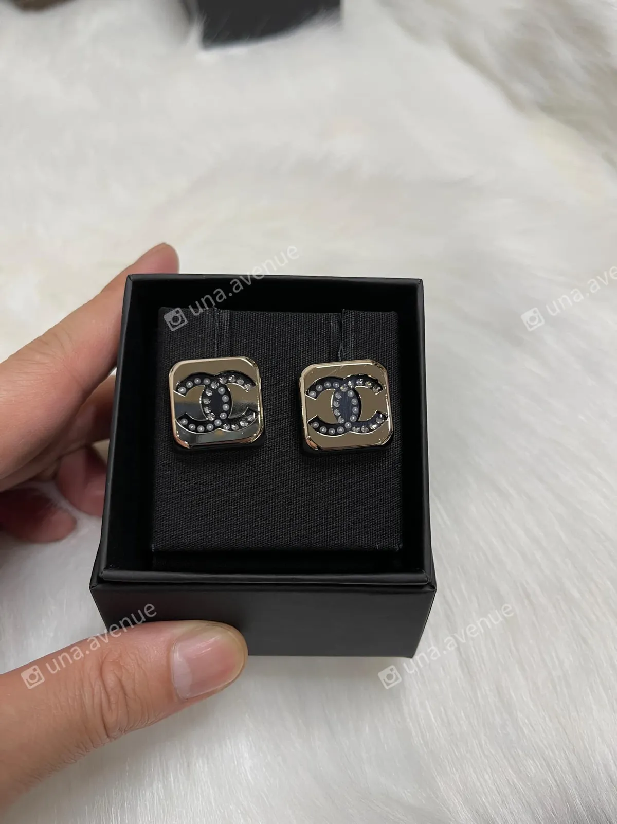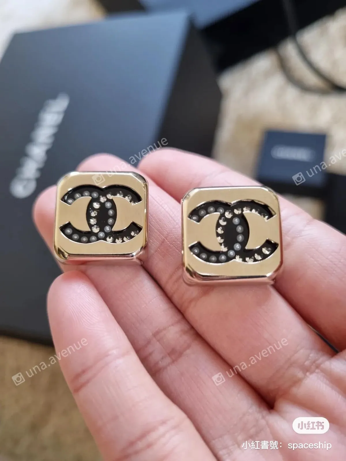 黑金色方塊真的好有個性 細節也做得很棒 一半珍珠一半鑽拼起的雙C 金屬質感也很好 實物美爆了 在光線下閃耀著光芒 所有商品照以實品、專櫃照為主,穿搭照為參考用。 下單前注意事項:1.購買前詳閱「關於我們」2.此賣場為「預購」下單前請line官方客服,勿直接下單。3.訂單成立後不接受任何理由退換貨。4.對商品尺寸、款式有疑慮多多善用「官方line」詢問。❣ 賣場所有商品皆為正貨 請安心購買