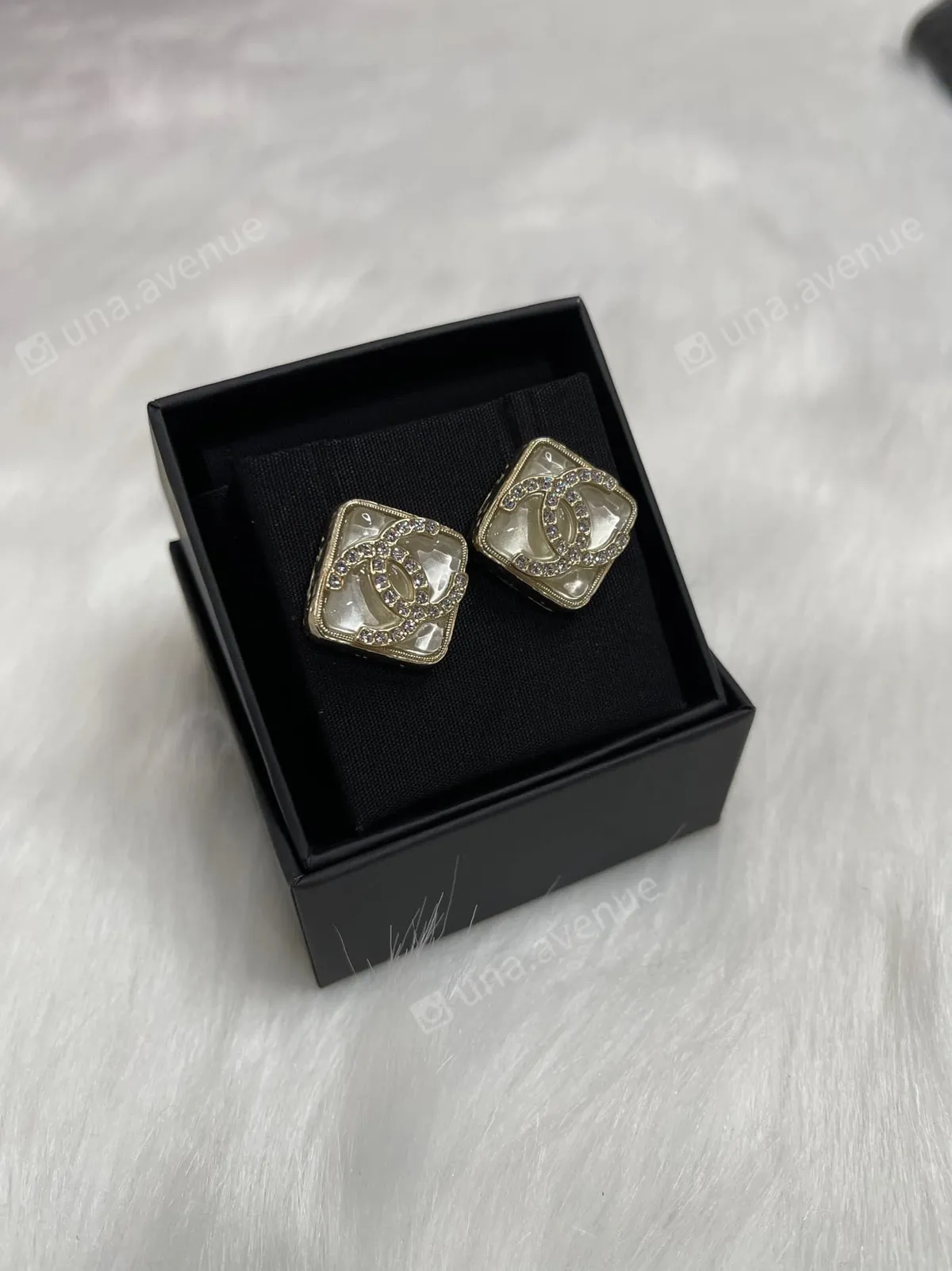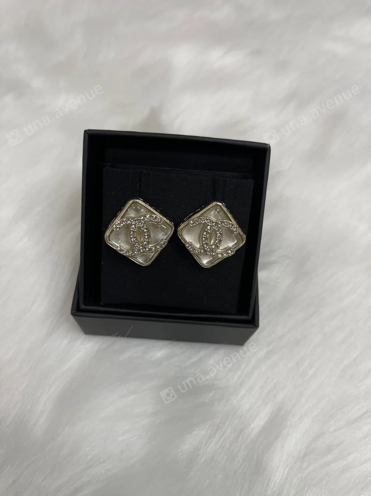 【可可愛愛的方糖耳環】 淺金配琉璃 雙C logo水鑽bling bling的 真的又閃又亮 耳環周邊有圈金穗邊 側面有厚度的不平整設計 有手工打磨痕跡 超級惹人愛! 所有商品照以實品、專櫃照為主,穿搭照為參考用。 下單前注意事項:1.購買前詳閱「關於我們」2.此賣場為「預購」下單前請line官方客服,勿直接下單。3.訂單成立後不接受任何理由退換貨。4.對商品尺寸、款式有疑慮多多善用「官方line」詢問。❣ 賣場所有商品皆為正貨 請安心購買