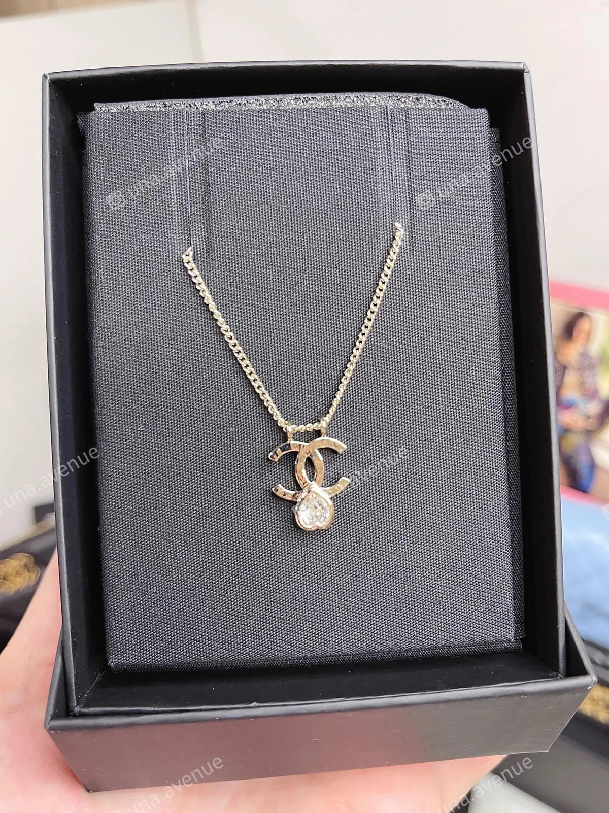 Chanel AB8346 倒愛心水鑽項鍊