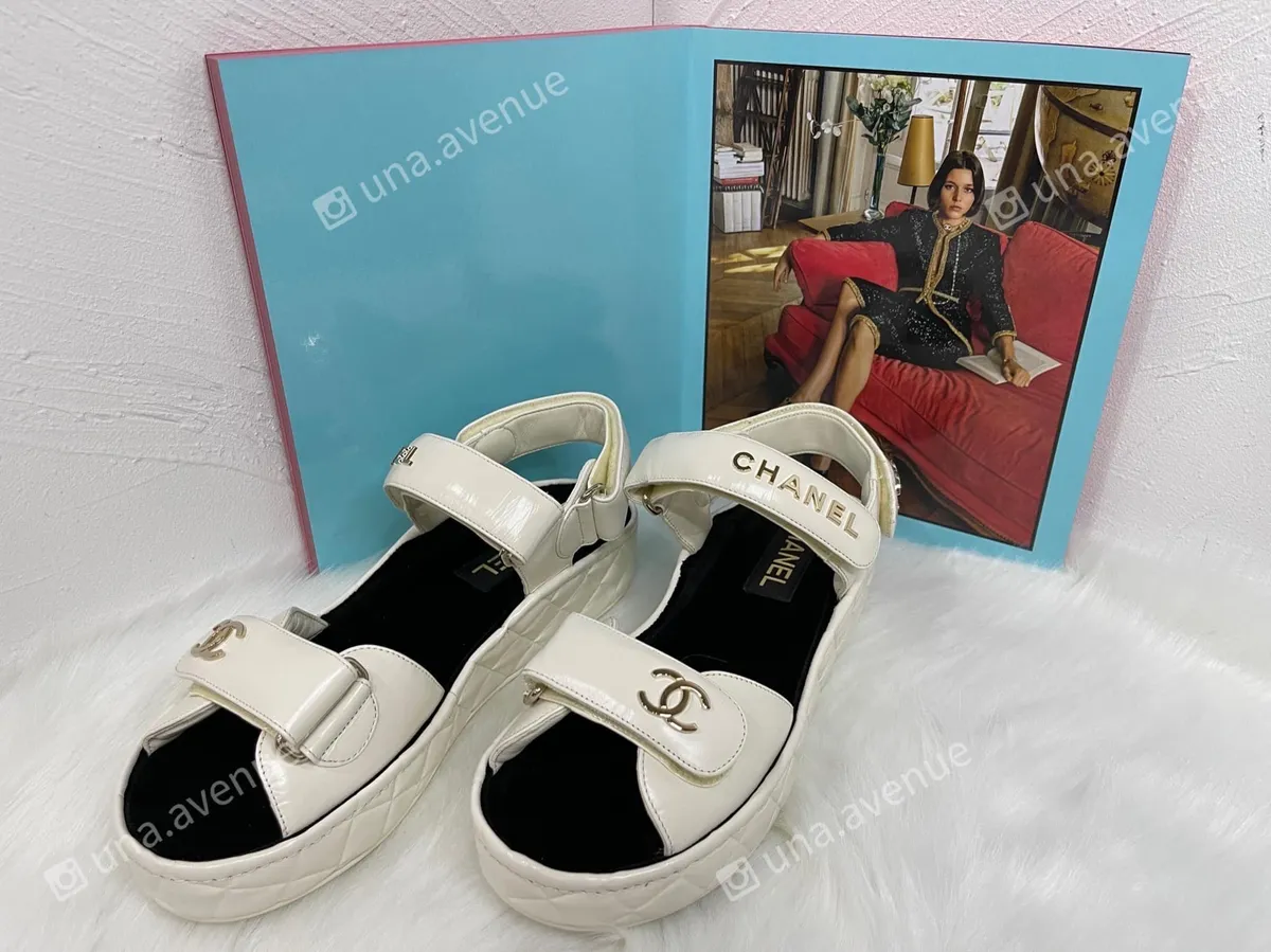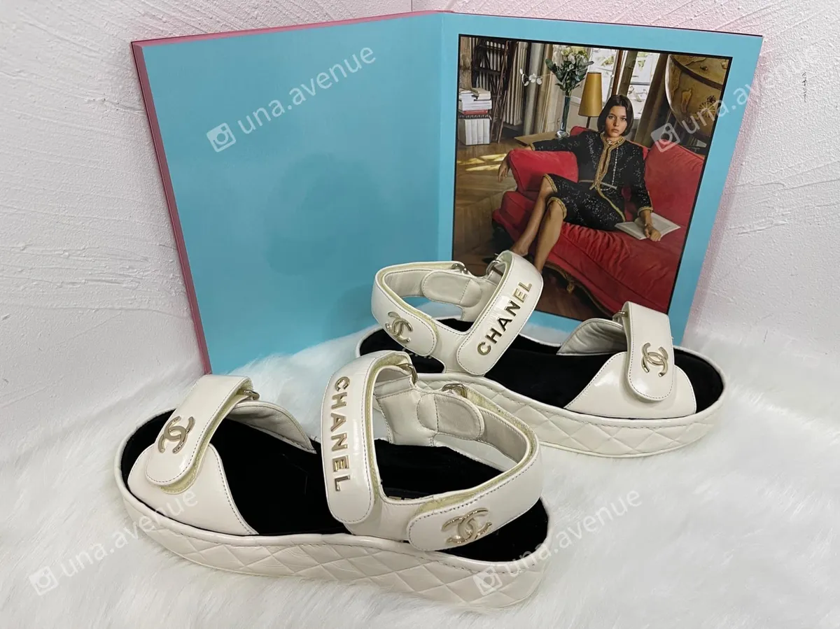 預購 Chanel 字母魔鬼氈涼鞋 白