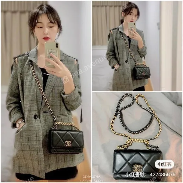 黑色|羊皮|金銀雙色鏈條|菱格紋