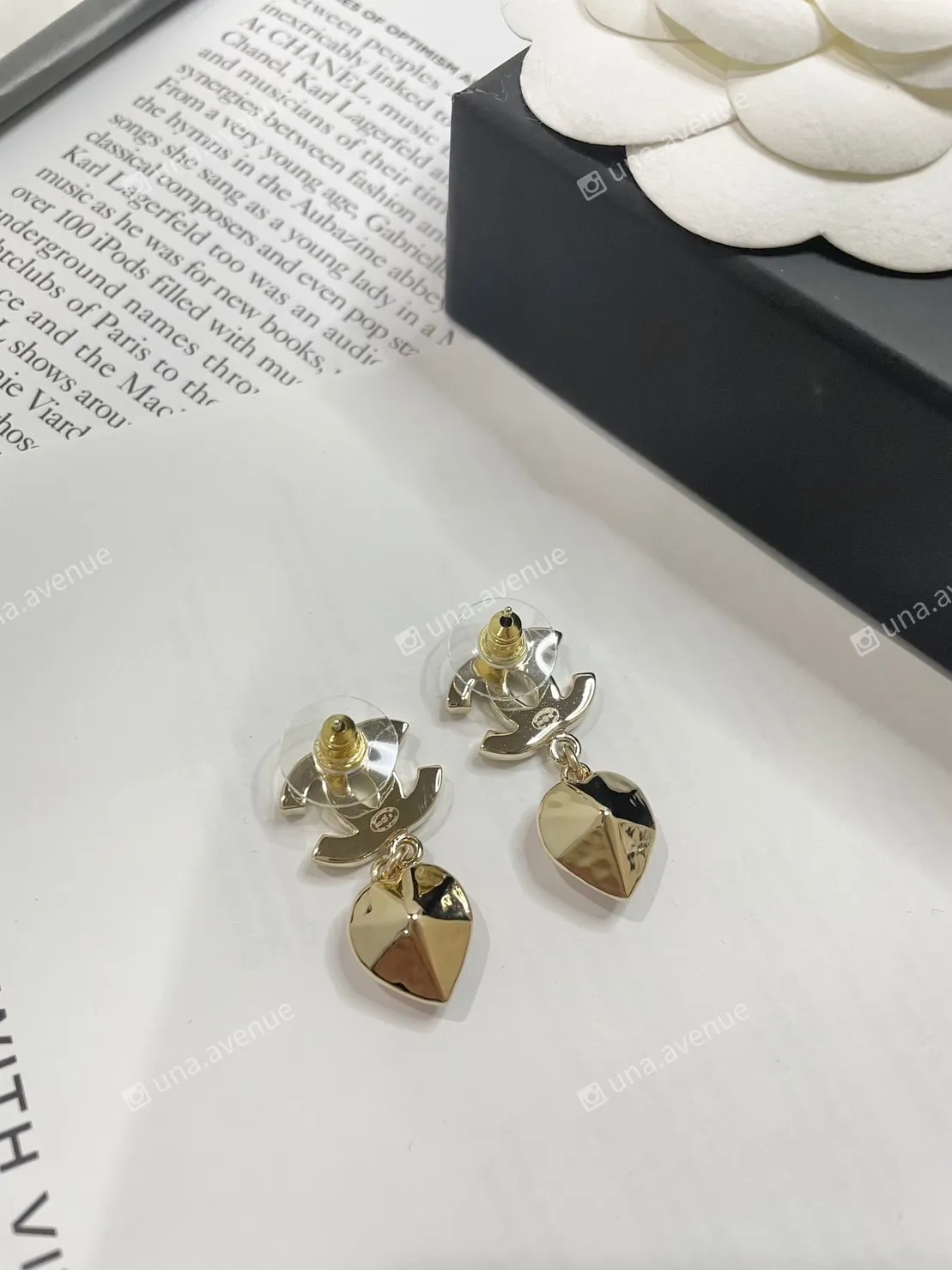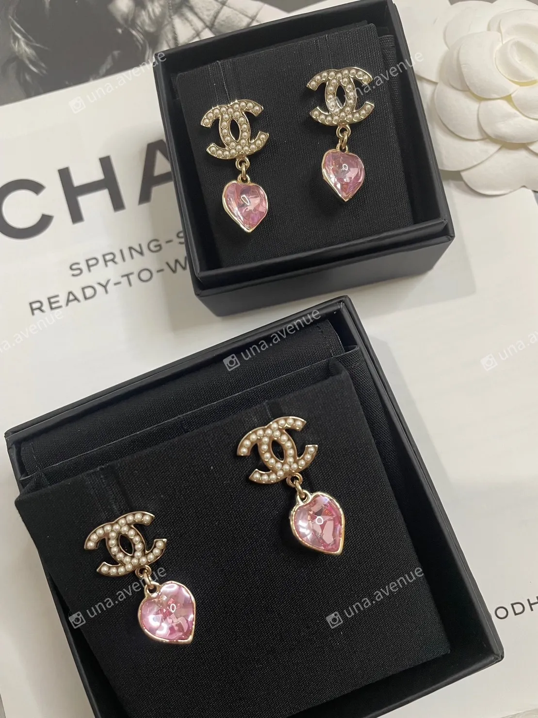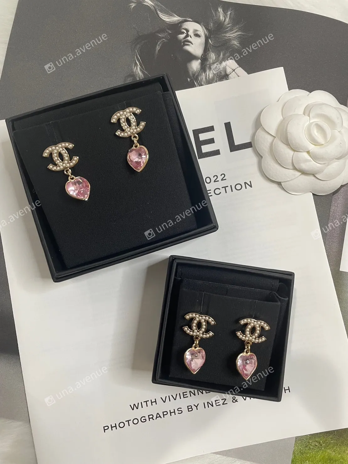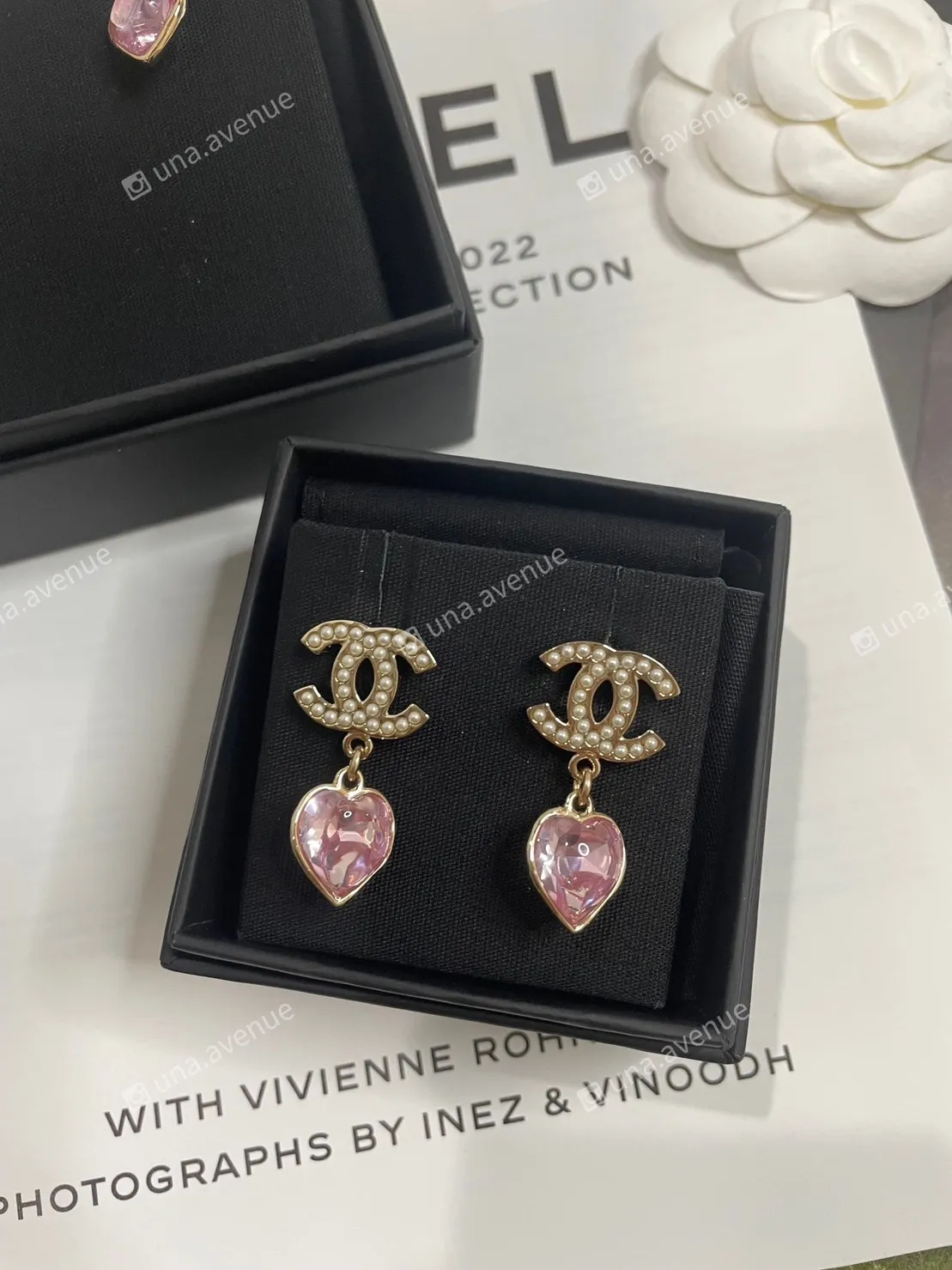 CHANEL AB9100 雙C珍珠垂墜愛心耳環