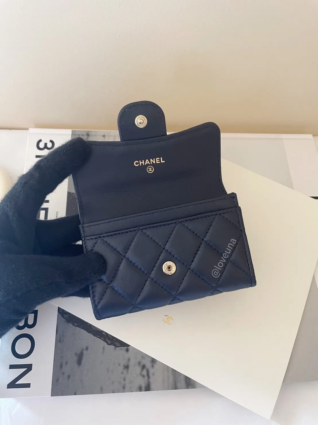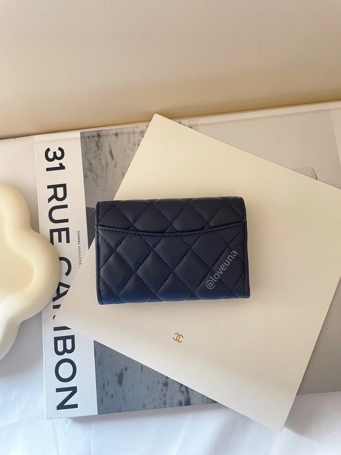 很美的深藍色✧午夜藍不撞色有特色又美 ♡゛配上香檳金釦⸜🙌🏻⸝✨羊皮手感實在是很有質感.ᐟ.ᐟ內裏是單層卡槽背面也有一格放幾張卡少量現金完全足夠👌🏻 -下單前注意事項:1.購買前詳閱「關於我們」2.此賣場為「預購」下單前請line官方客服,勿直接下單。3.訂單成立後不接受任何理由退換貨。4.對商品尺寸、款式有疑慮多多善用「官方line」詢問。❣ 賣場所有商品皆為正貨 請安心購買