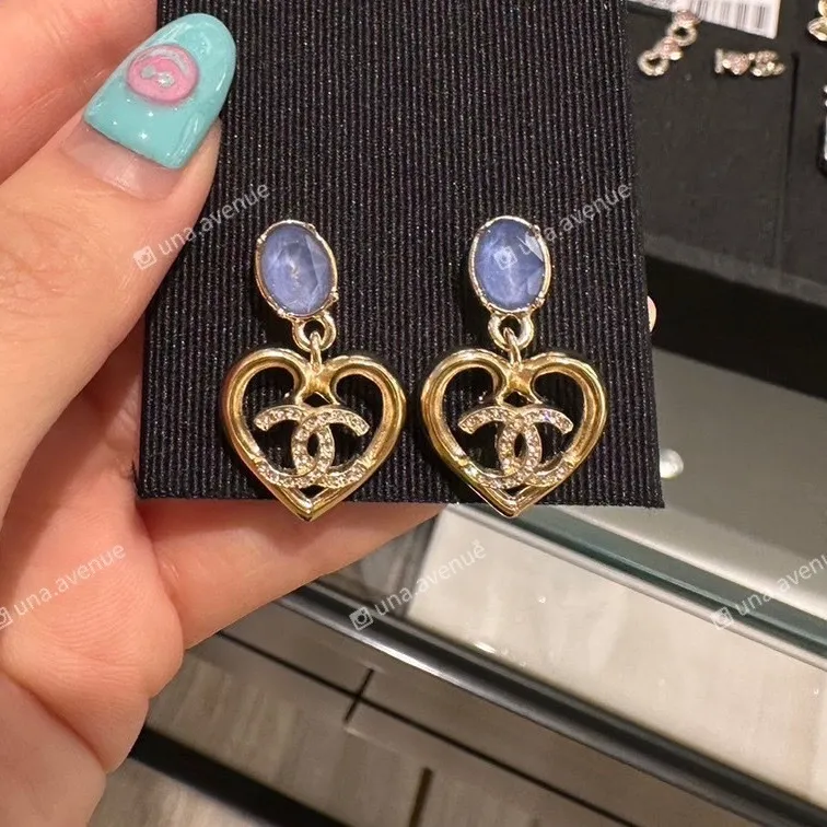 CHANEL 23C 藍寶石鑽石愛心雙C耳環