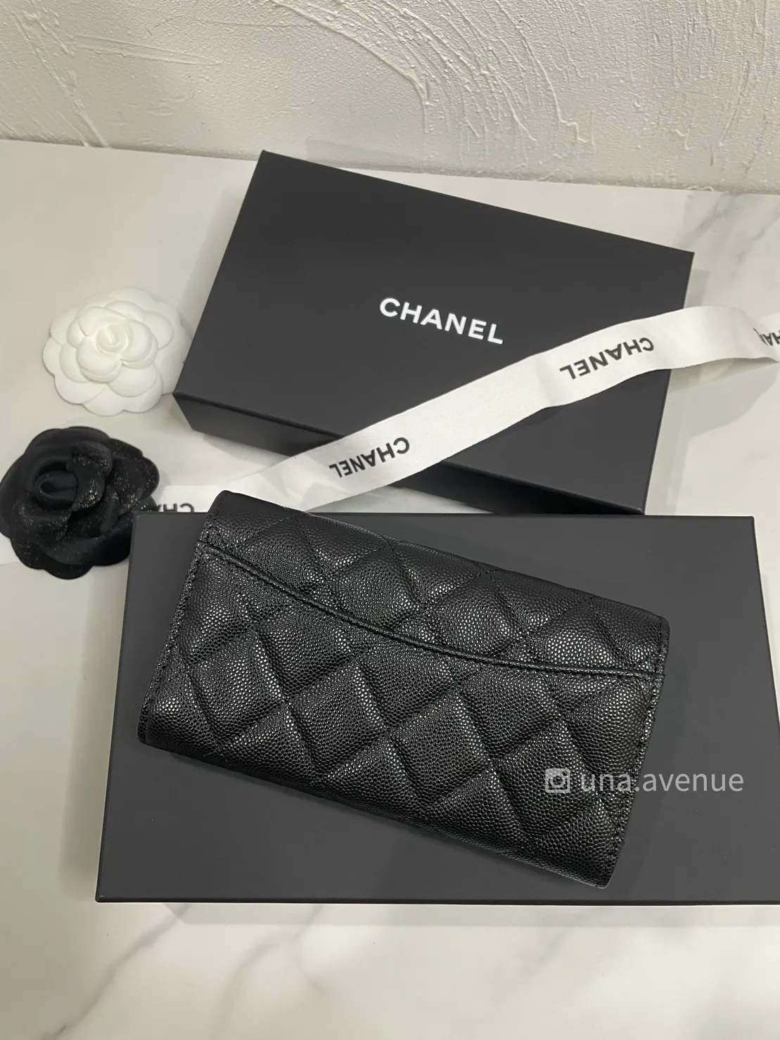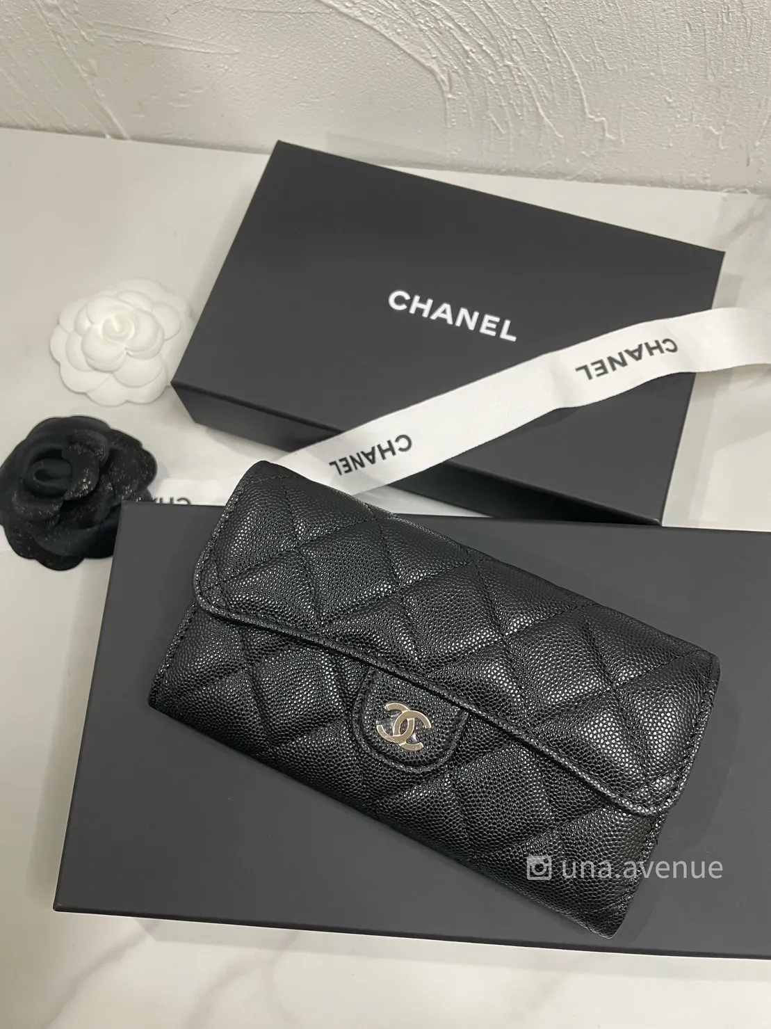 CHANEL AP1000 荔枝皮銀扣菱格紋中夾