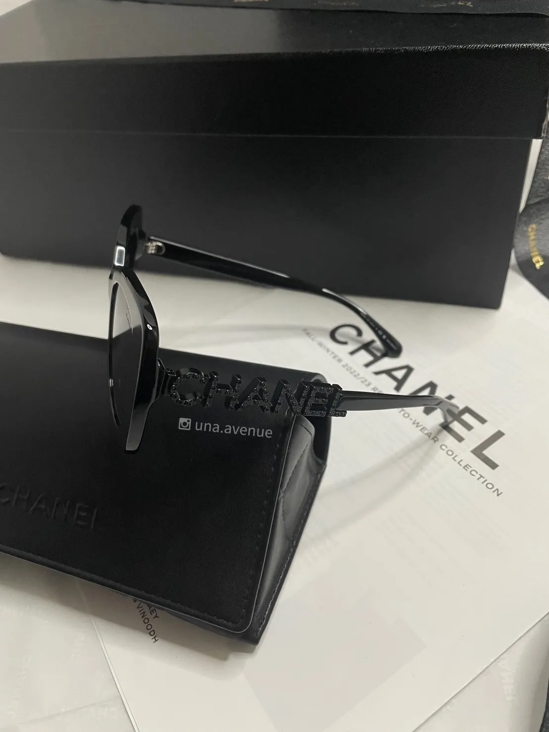 CHANEL 字邊墨鏡 黑