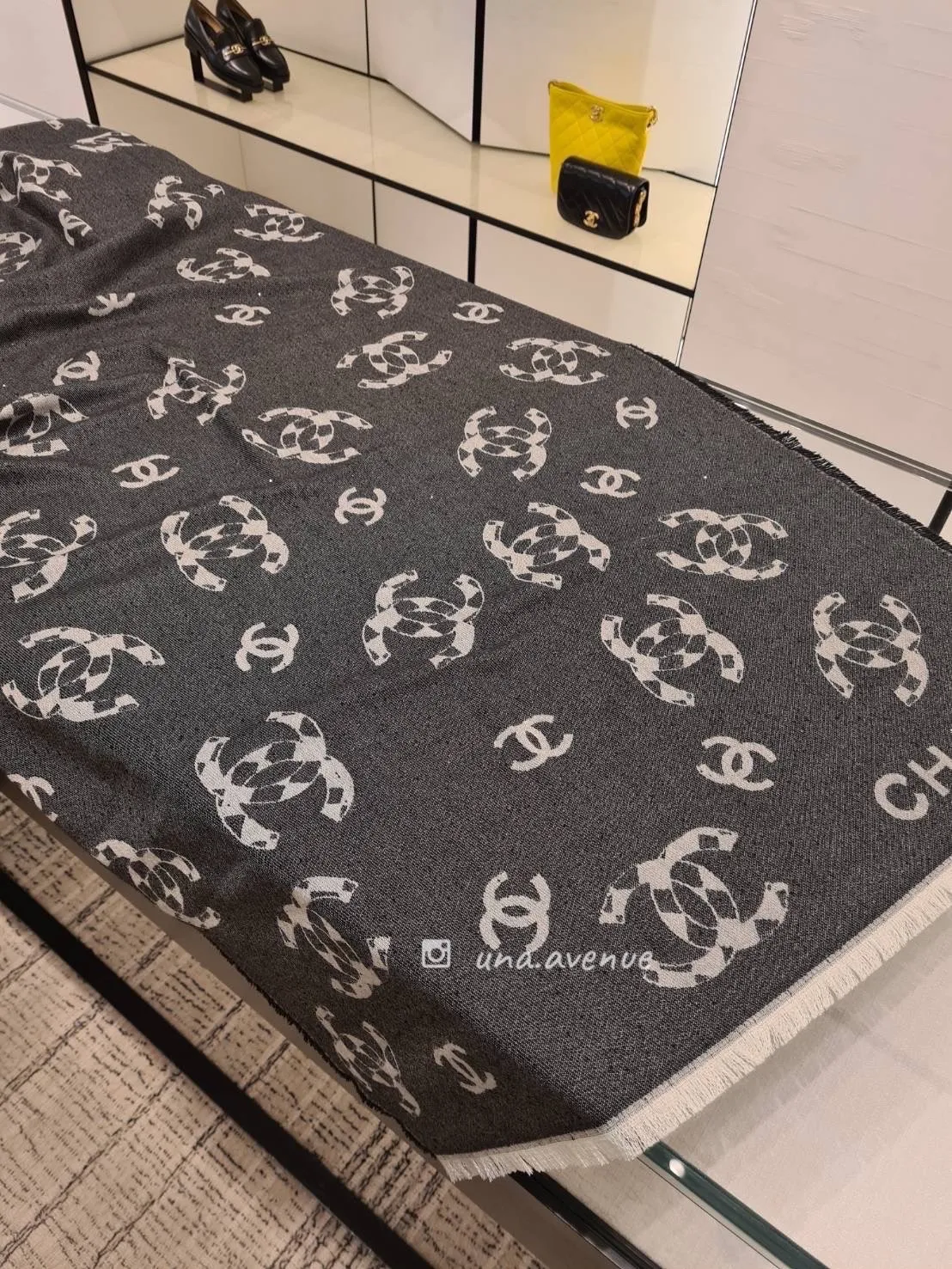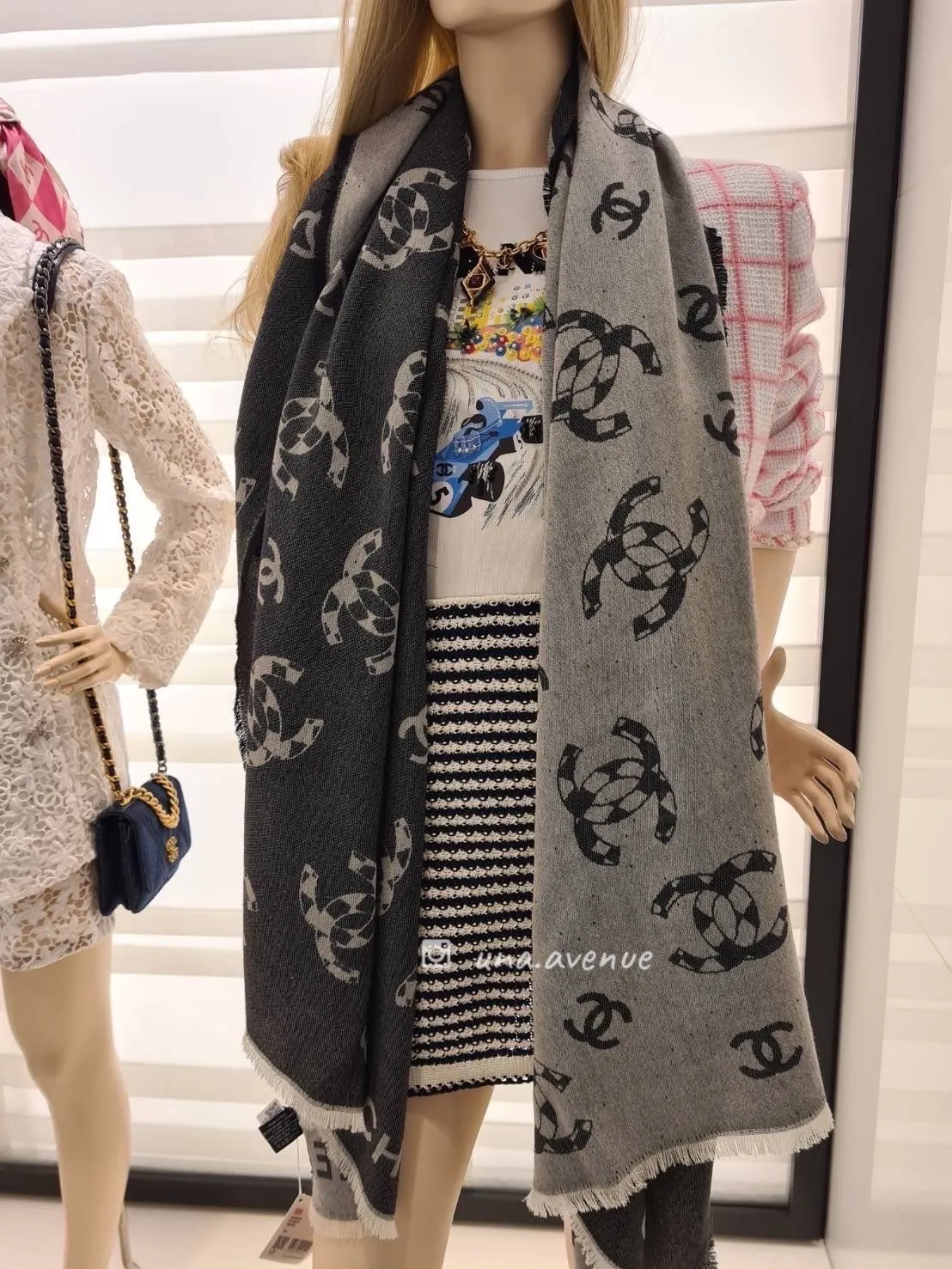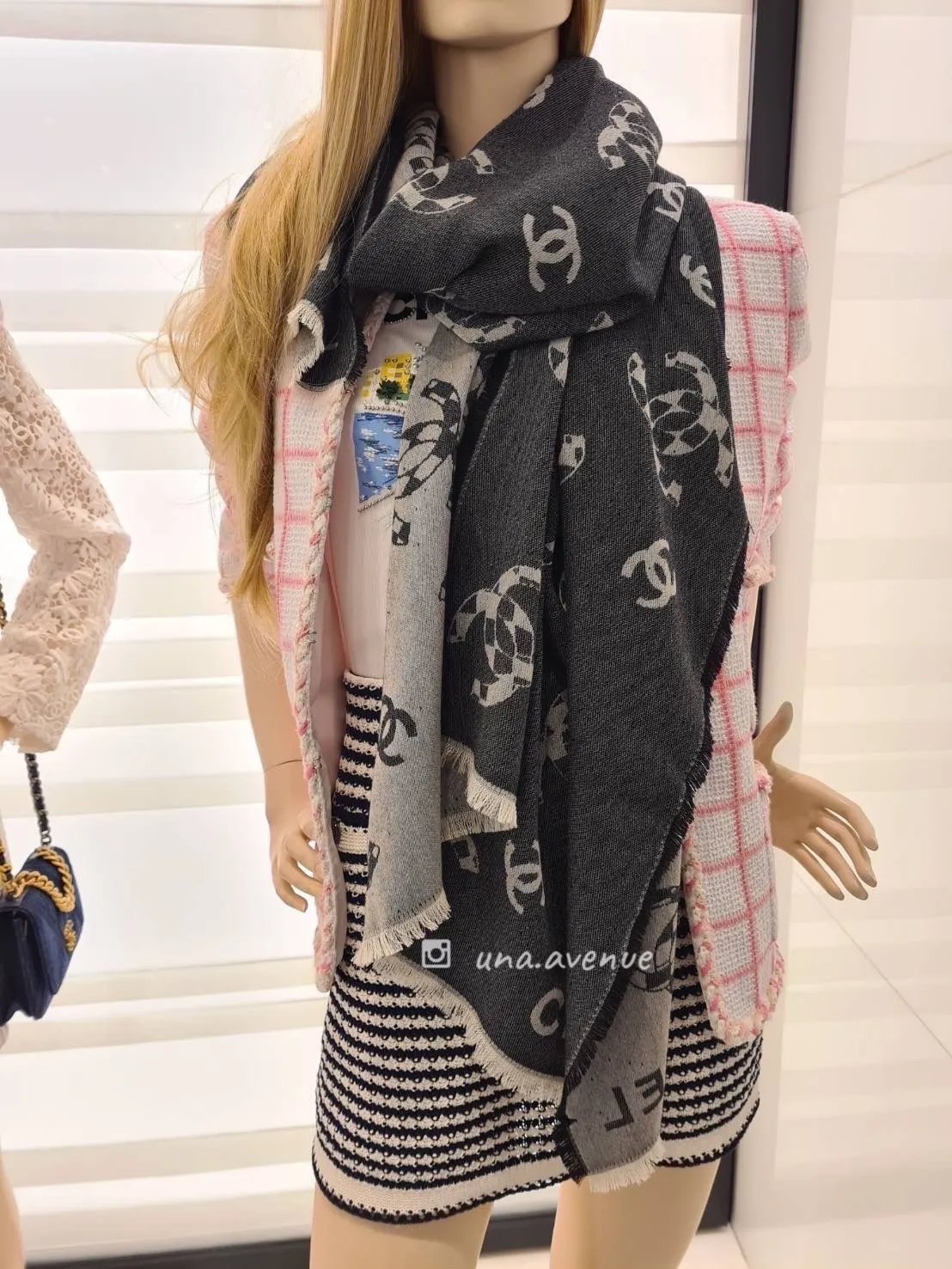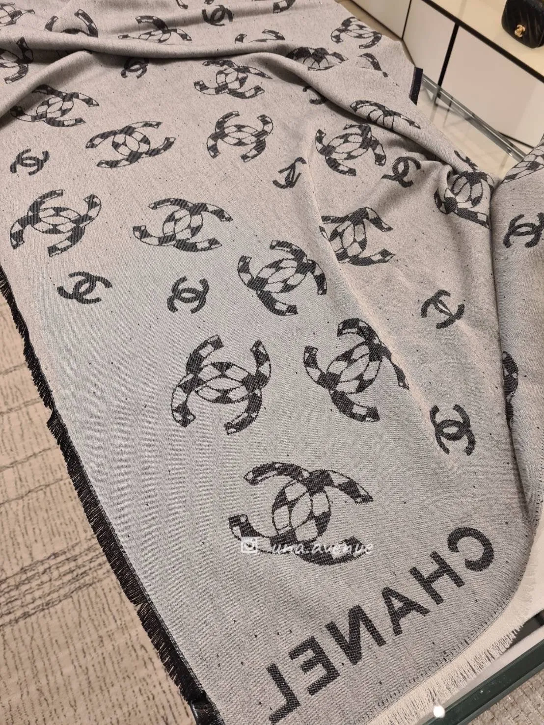 CHANEL AA8834黑白菱格CC圍巾