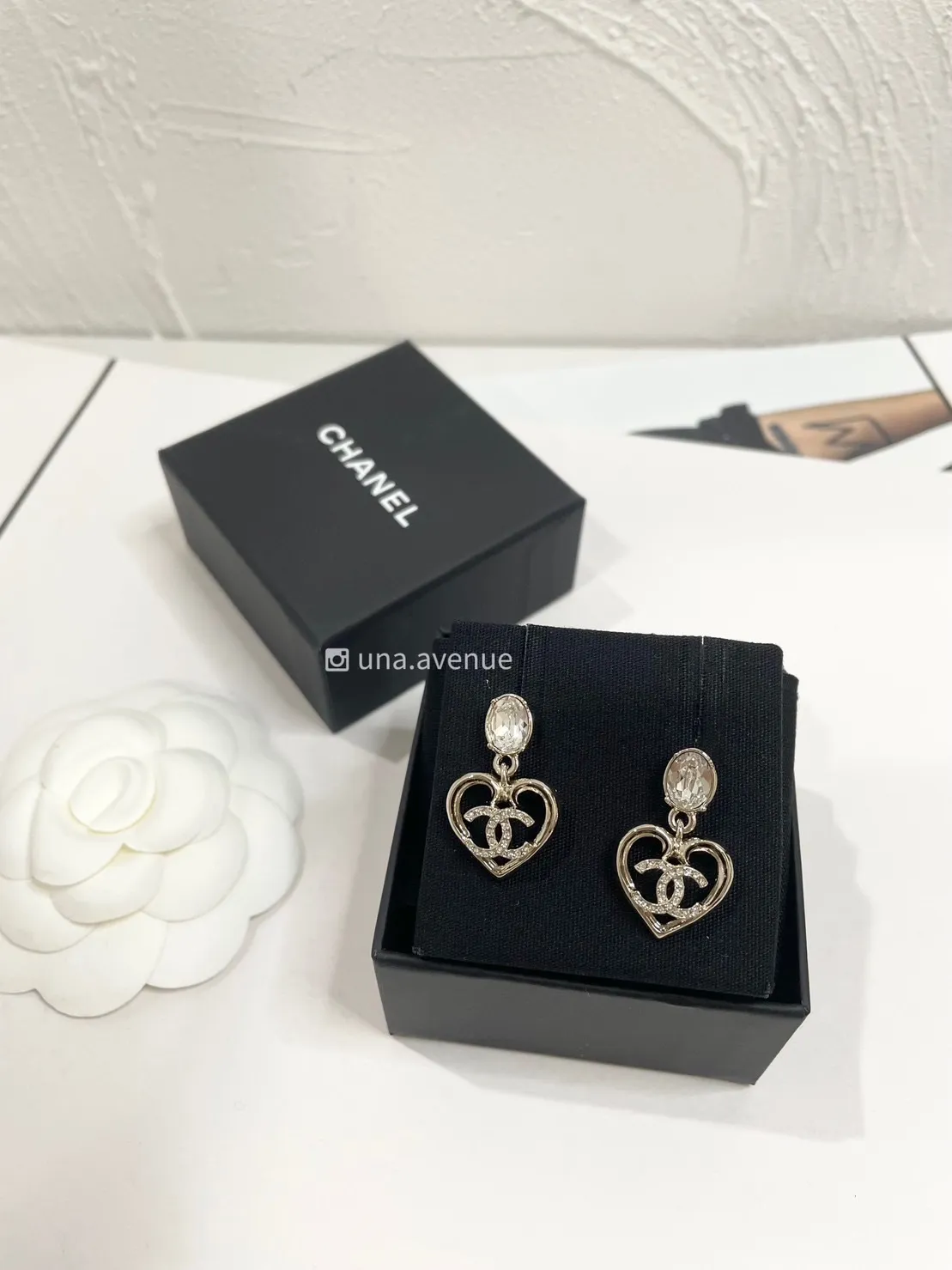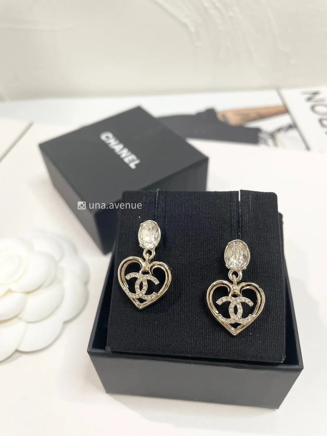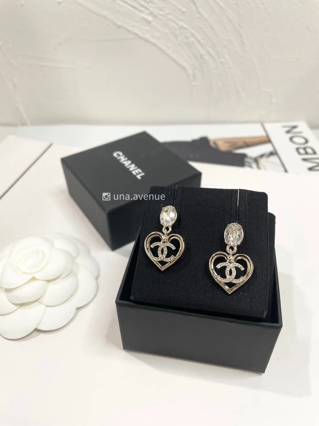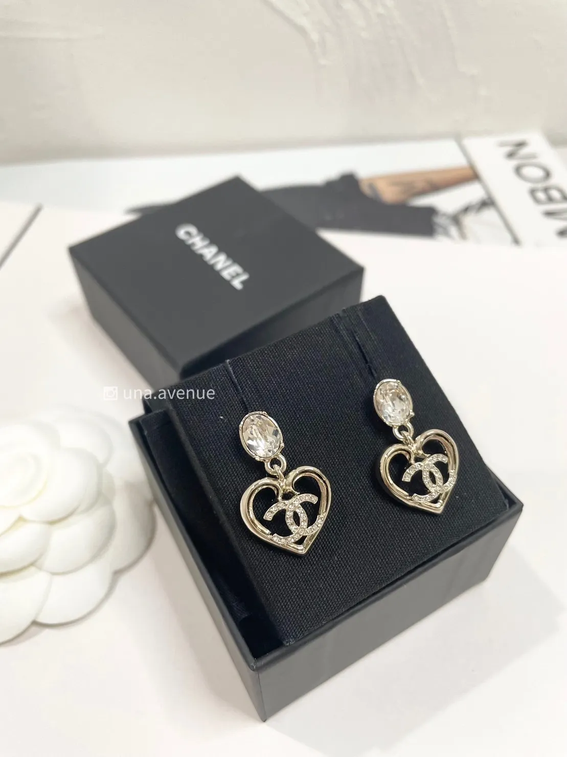 CHANEL ABA102鑽石愛心雙C耳環