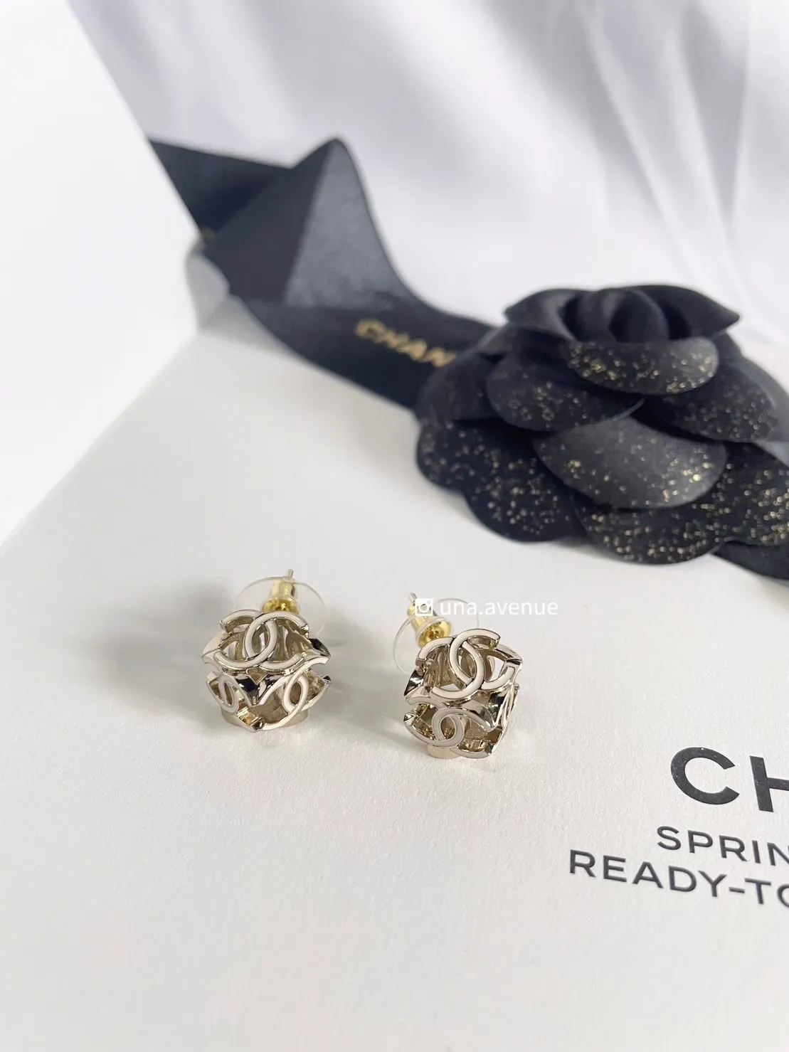 CHANEL AB9512 22K白骰子雙C耳環