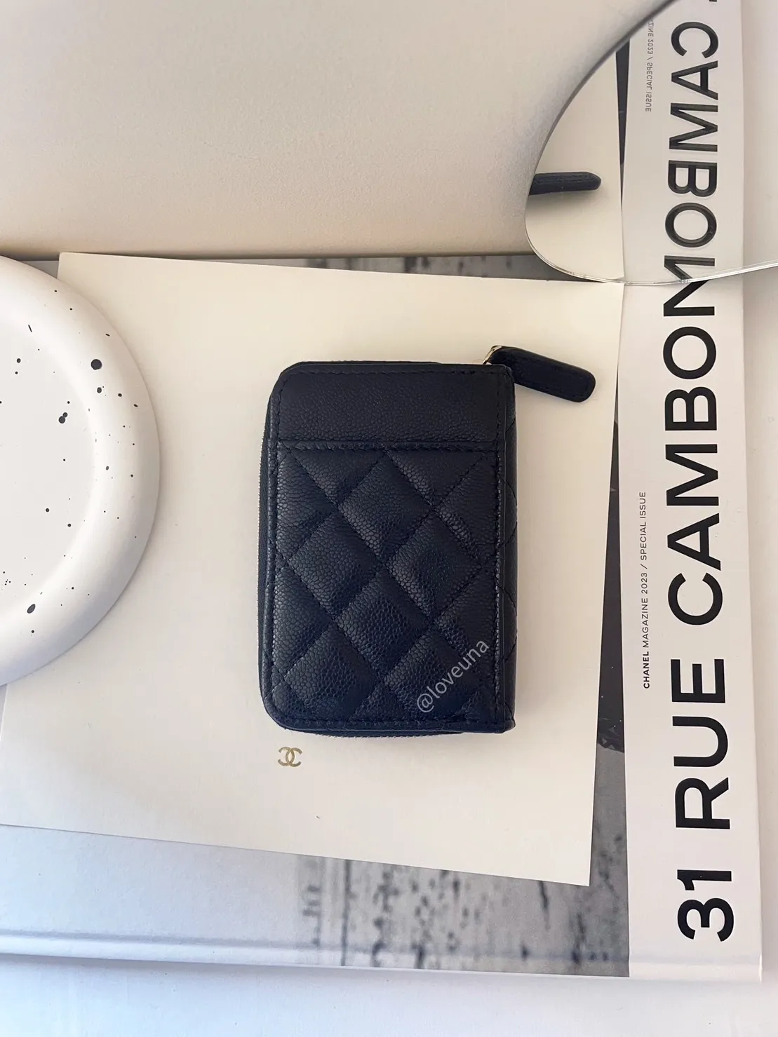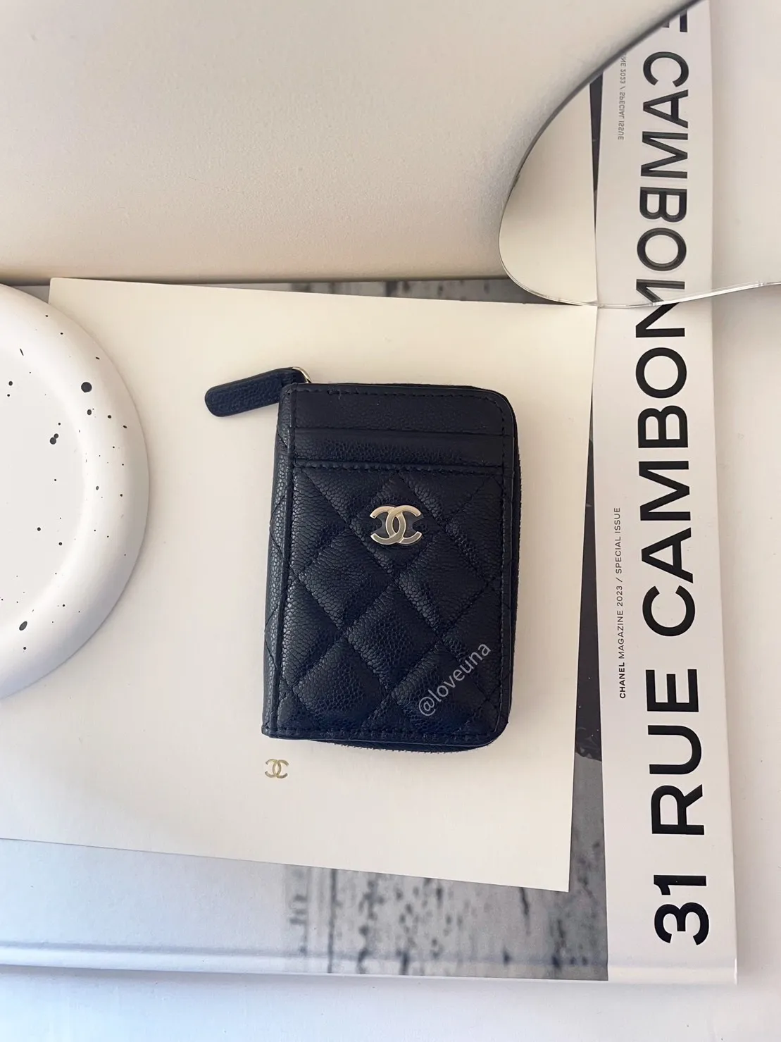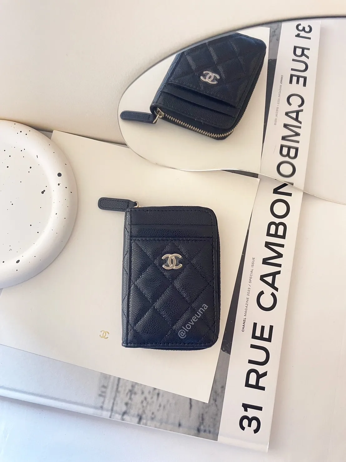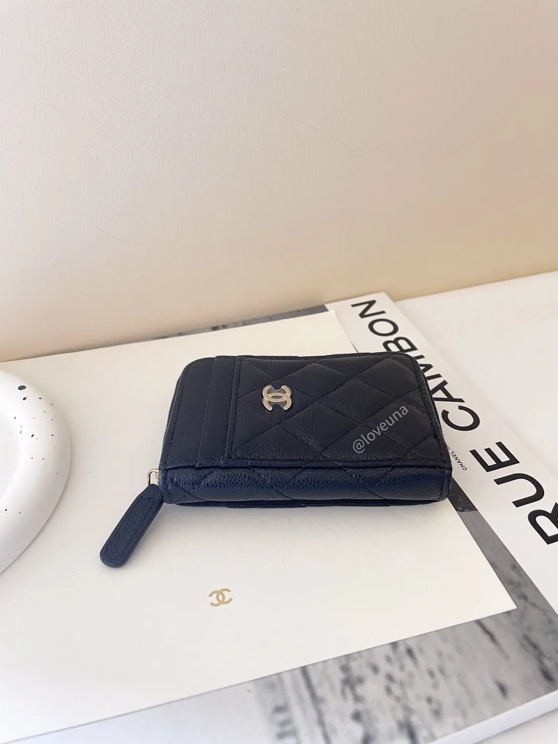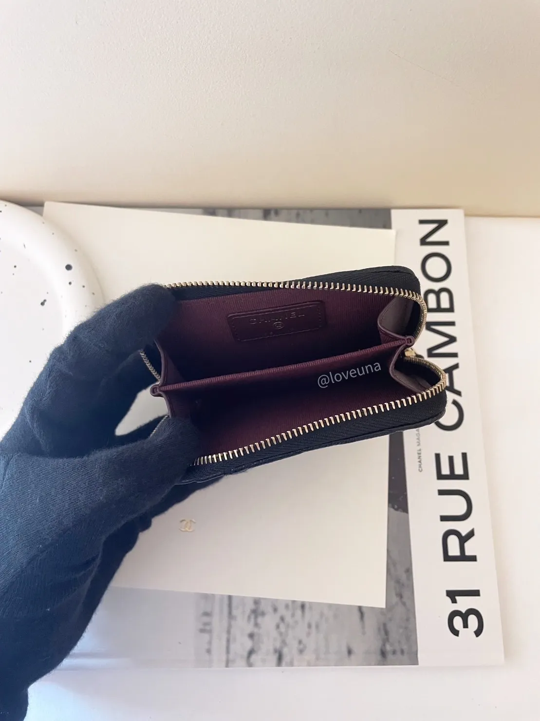 CHANEL AP1650 黑金拉鍊零錢卡包