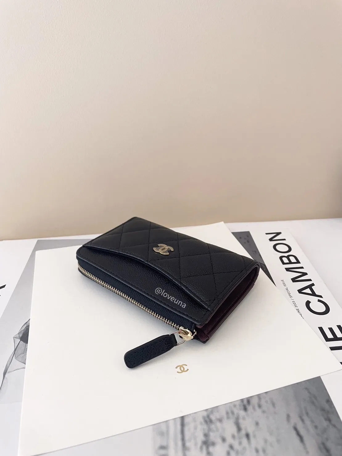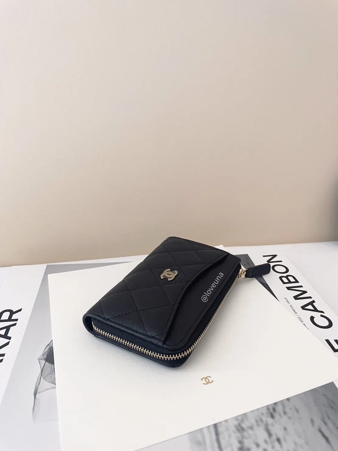 CHANEL AP3179 黑金牛拉鍊卡包