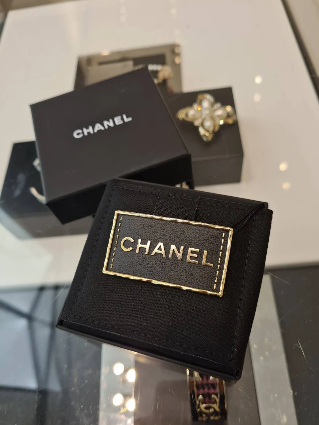CHANEL ABA771 黑皮牌胸針