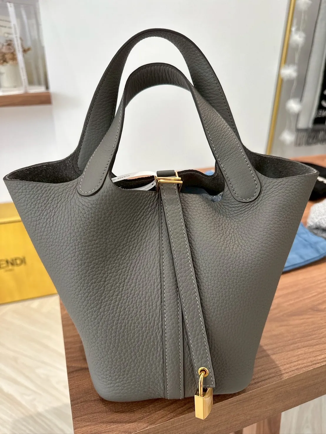 28標 Hermes 18菜籃子 積雨雲灰 金扣 全新