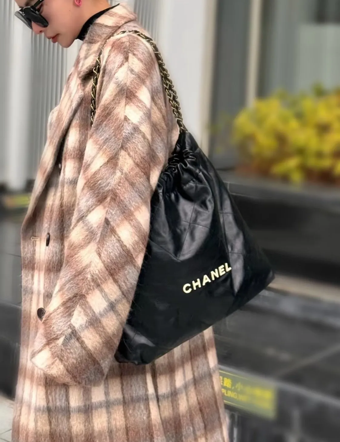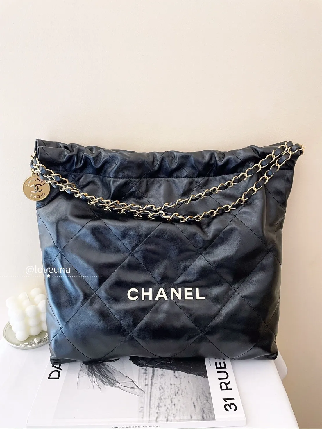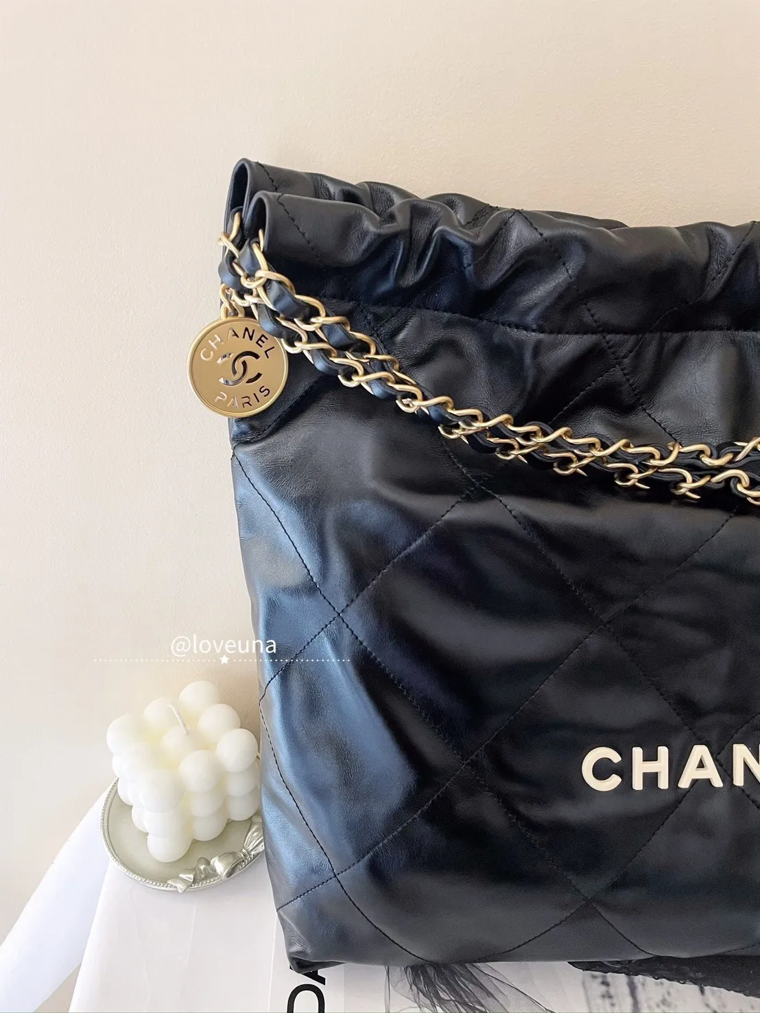 30標 Chanel 22包中號 黑金白字 晶片款 有購證 全新閒置