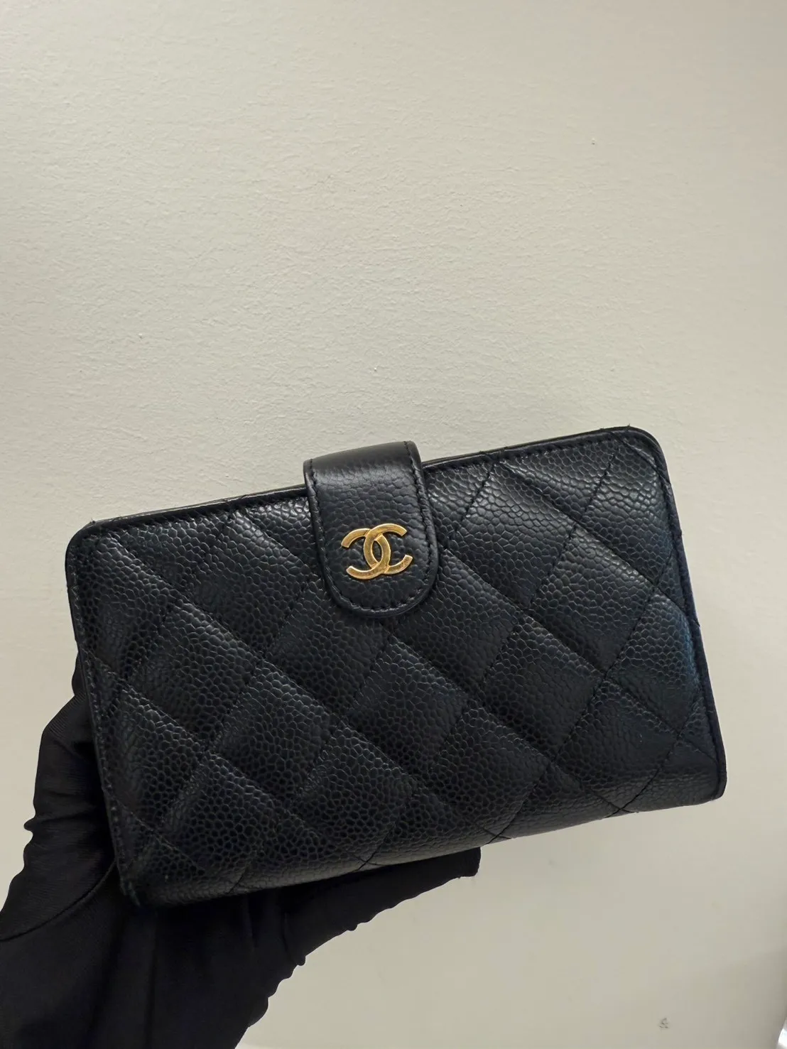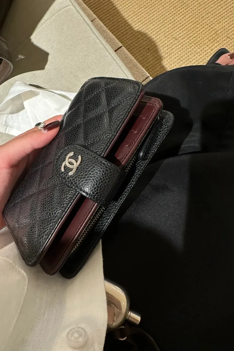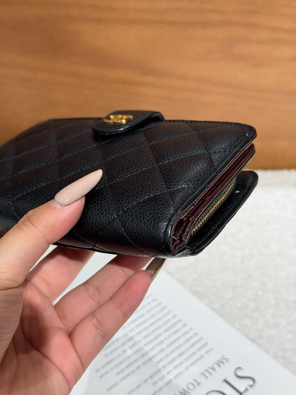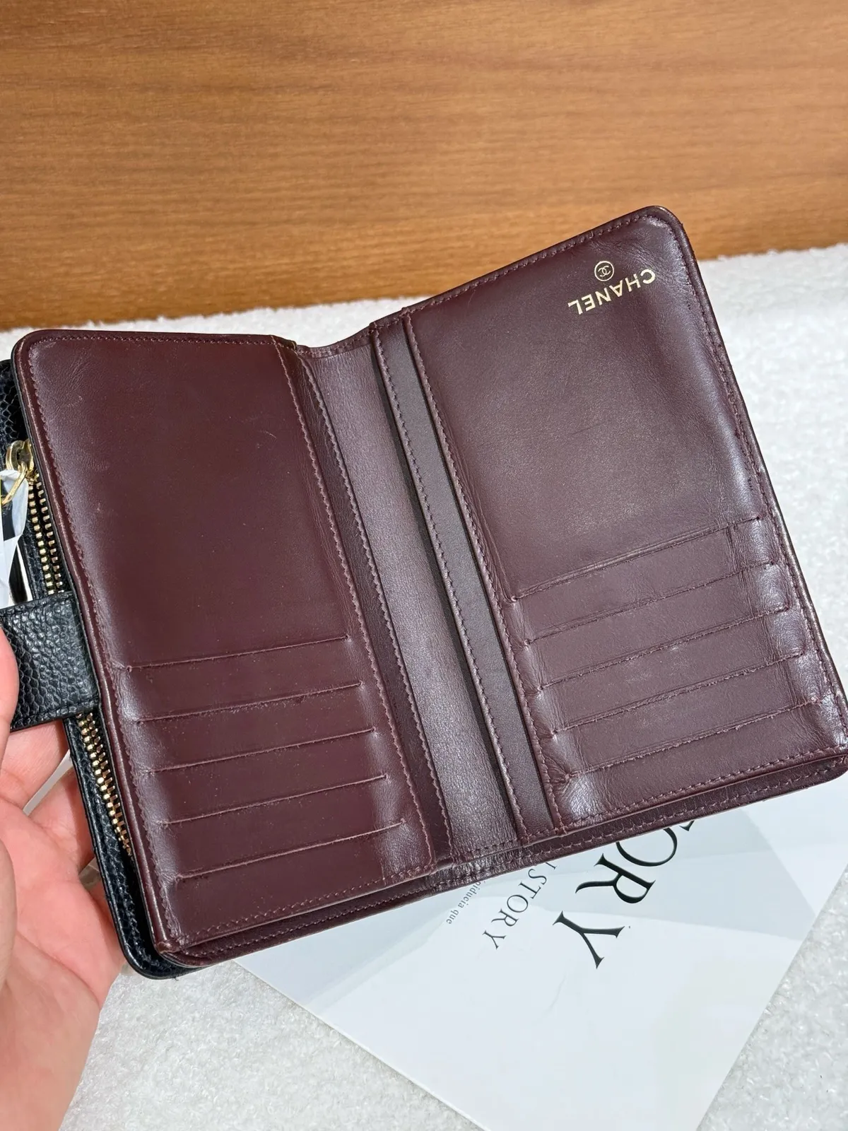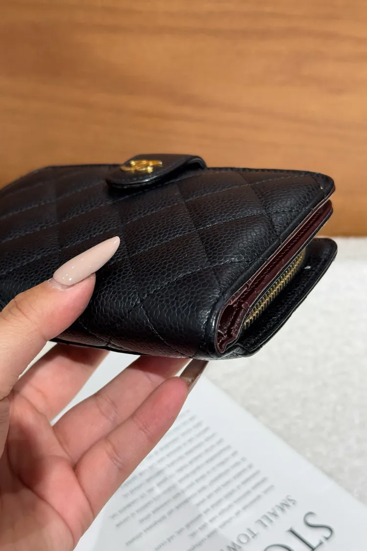 31 Chanel中長款荔枝皮金扣對折錢包 19開 9成新