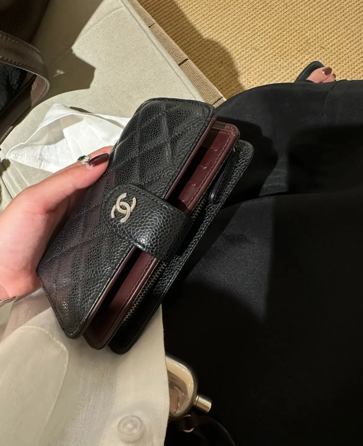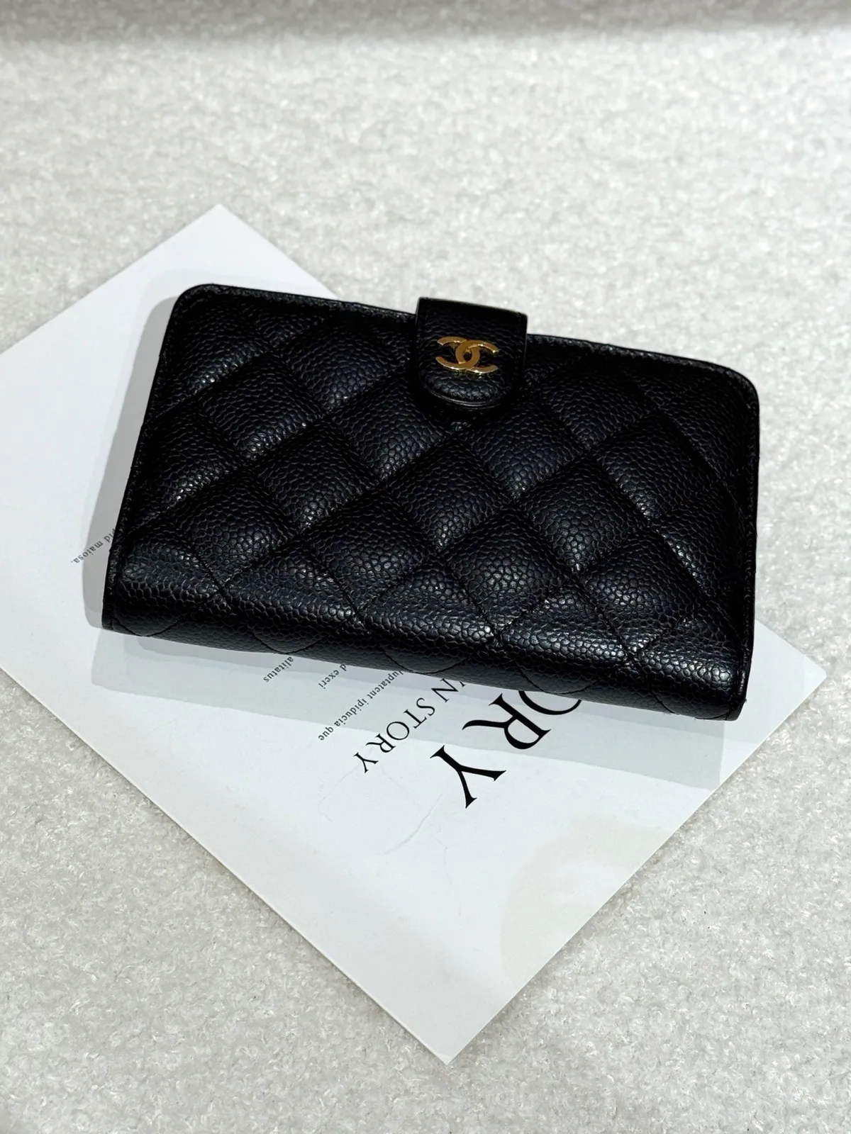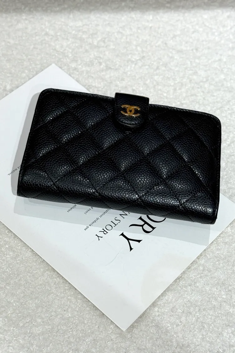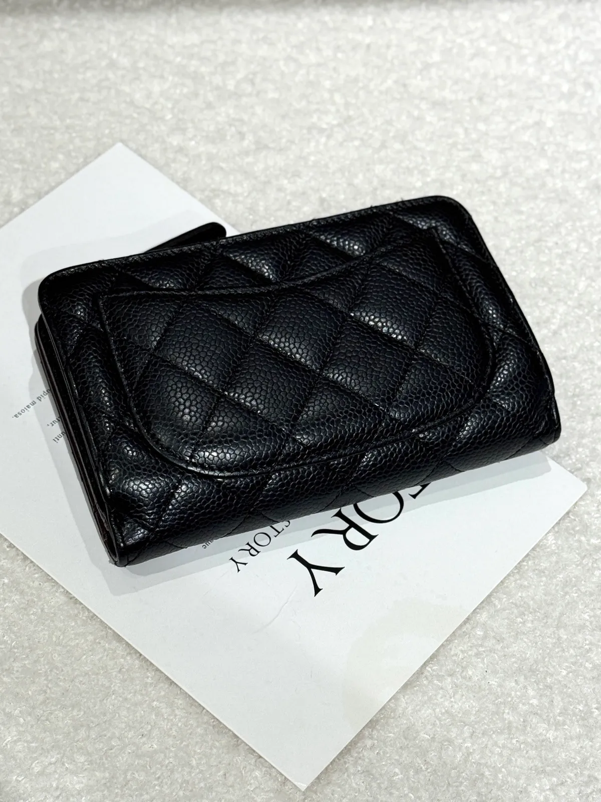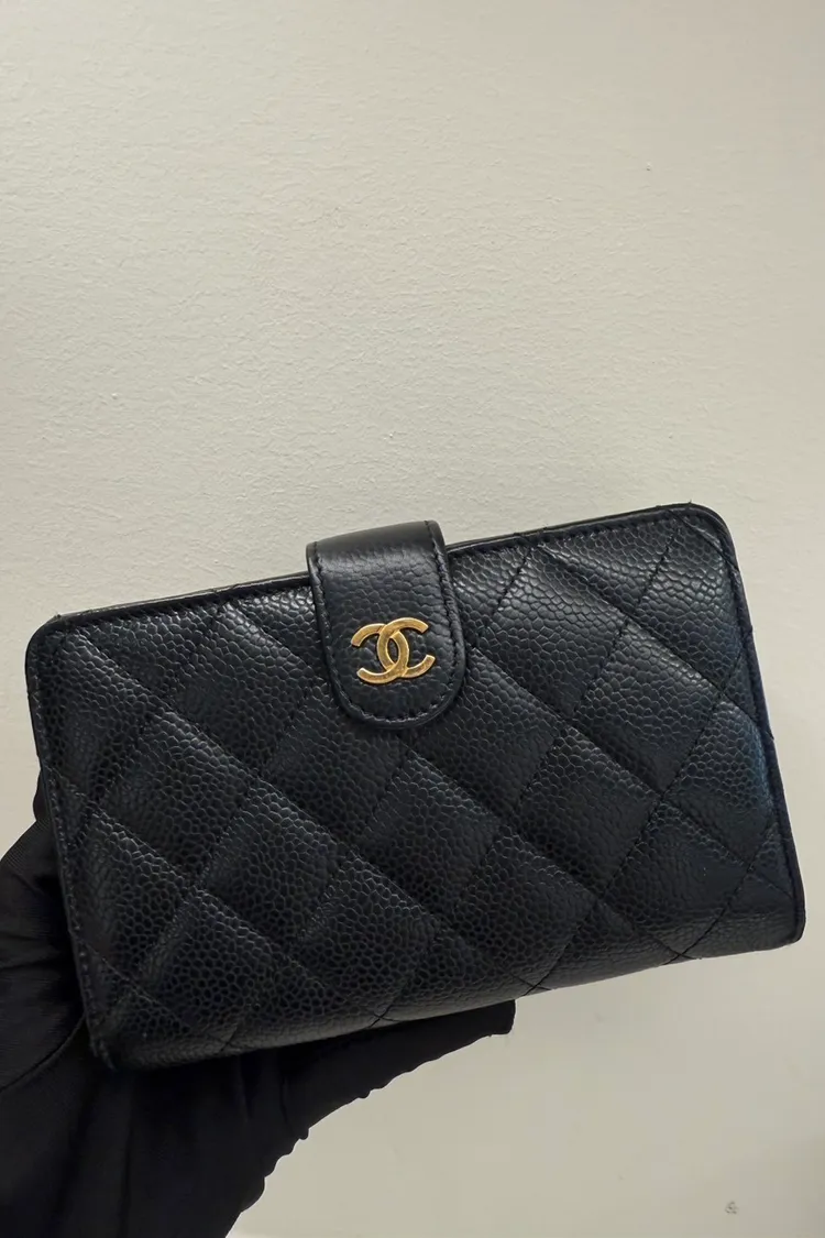 31 Chanel中長款荔枝皮金扣對折錢包 19開 9成新