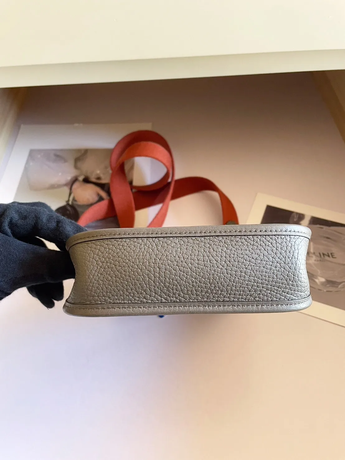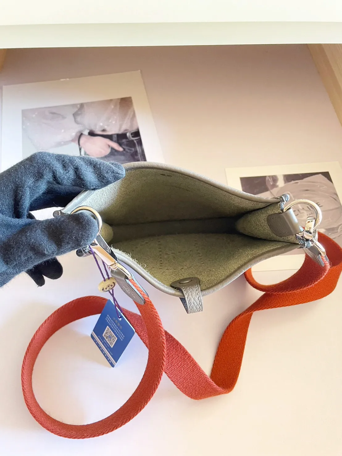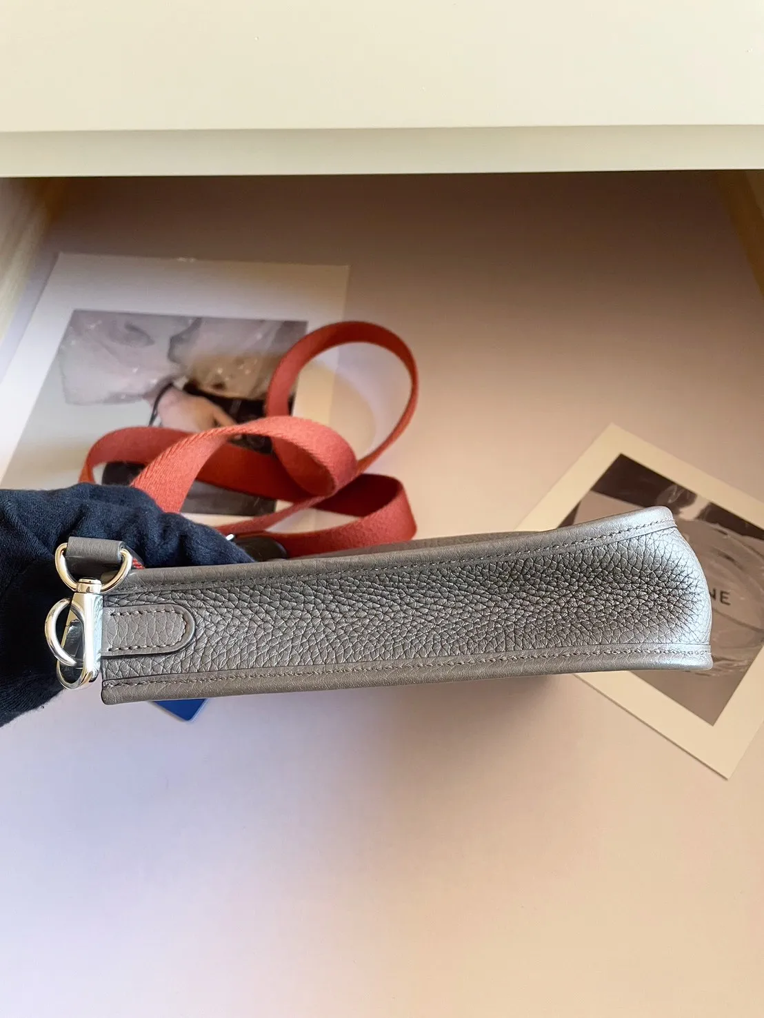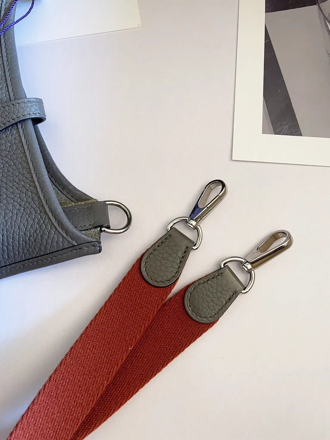 34標 Hermes mini evelyne錫器灰 橘肩背帶 X刻 有盒 95成新