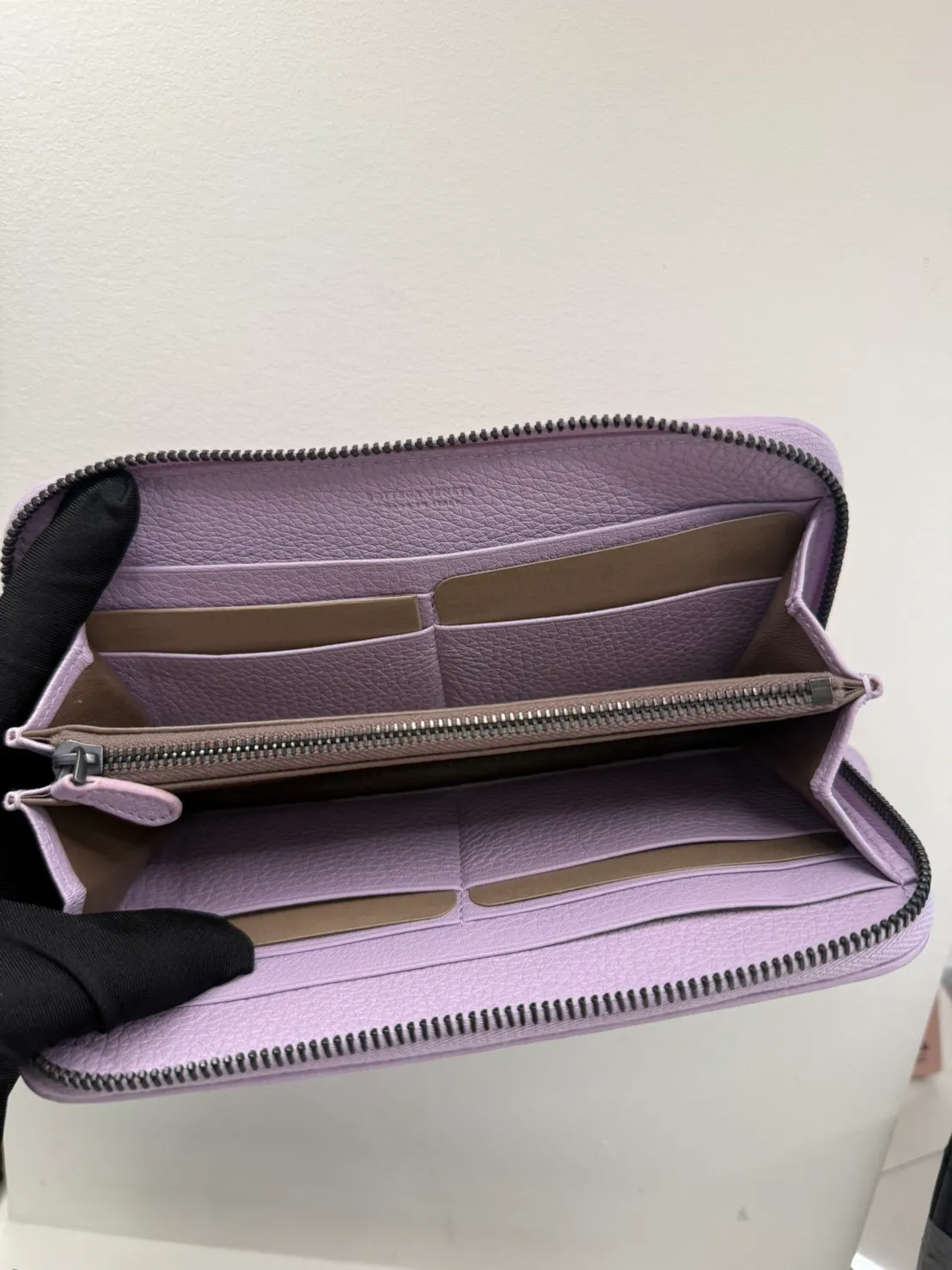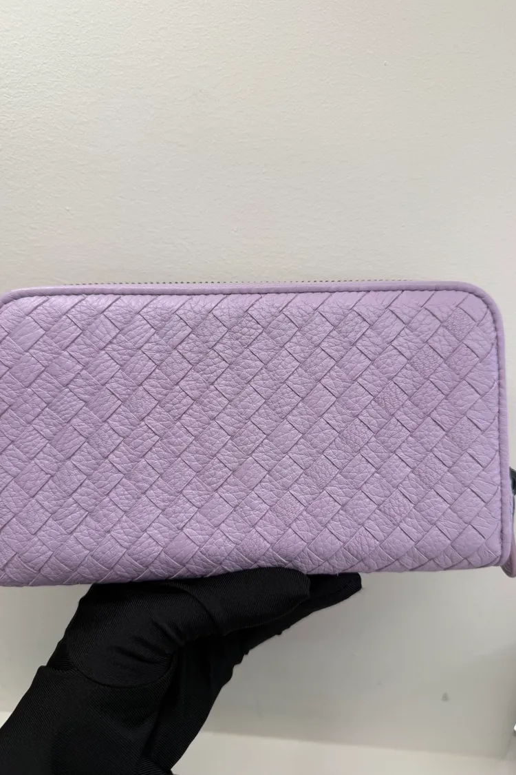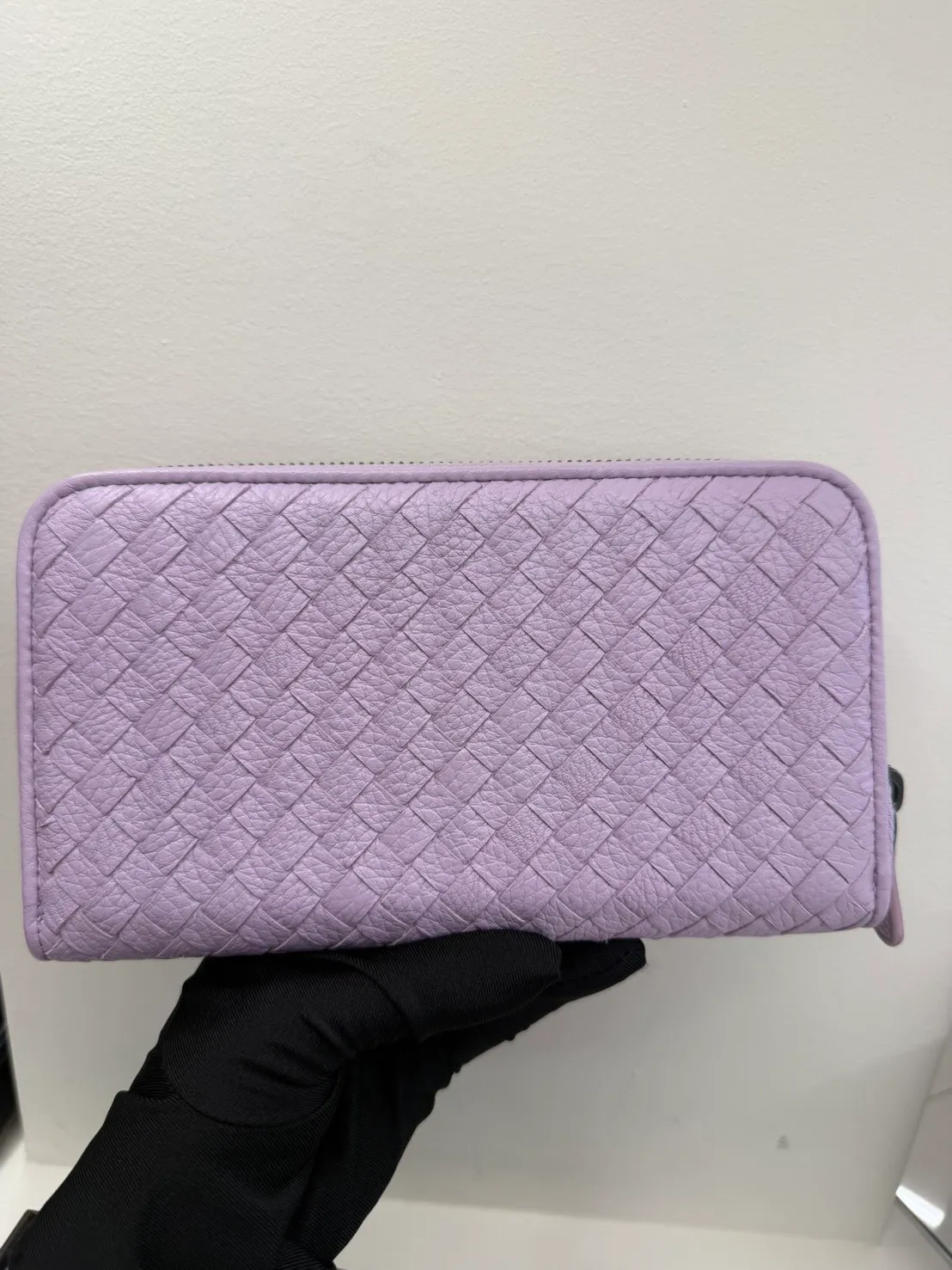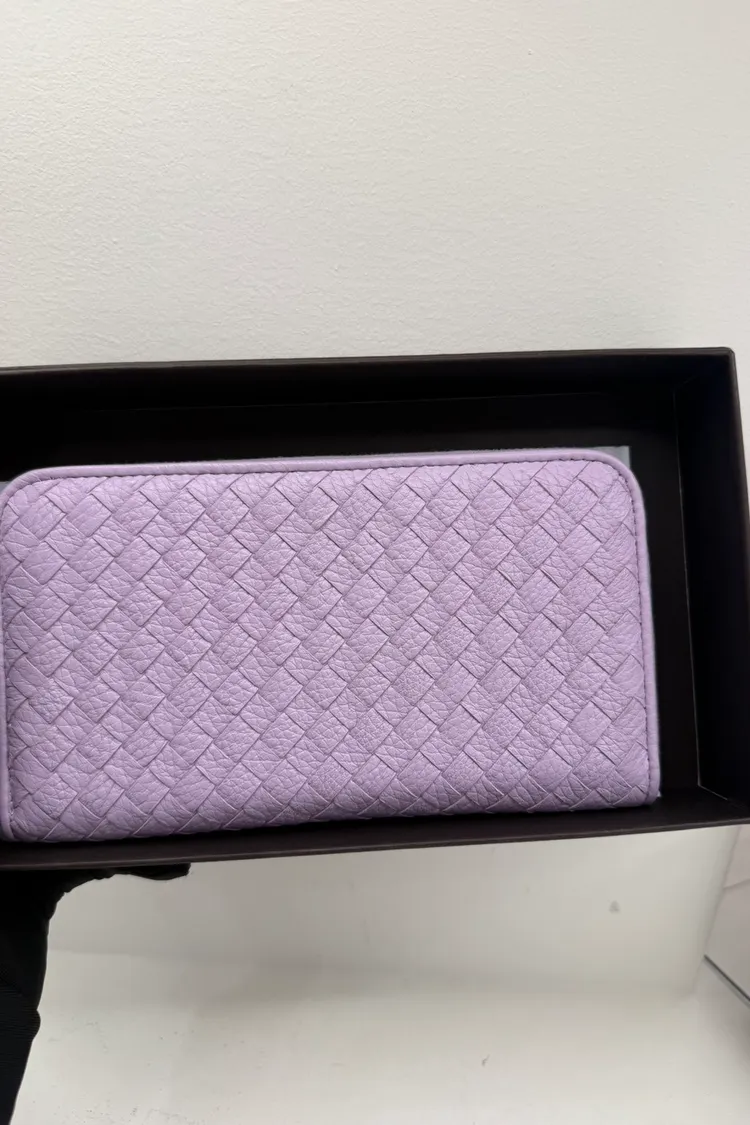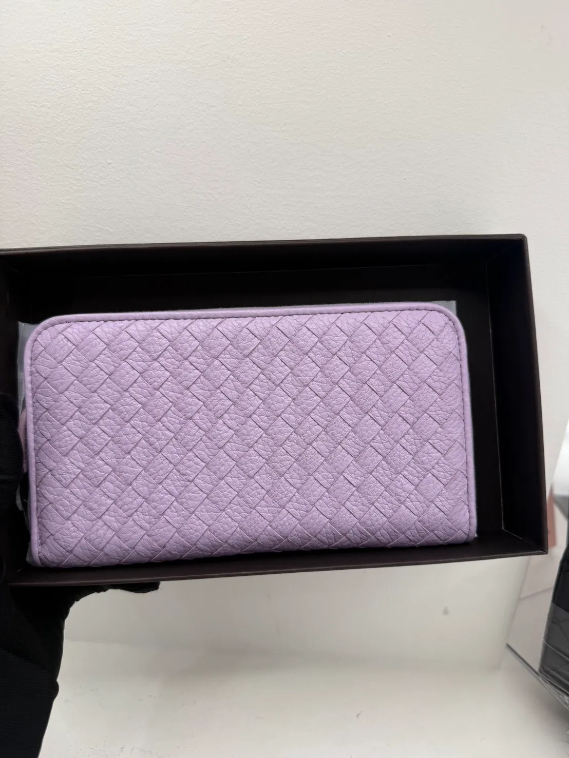37 BV粉紫色編織拉鍊長夾 有盒 全新