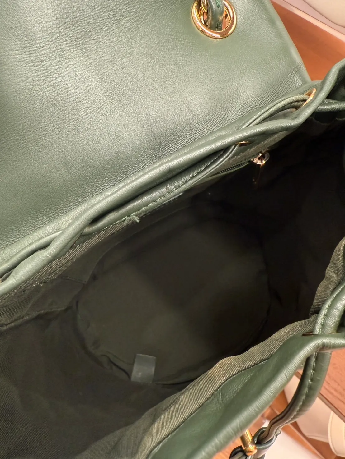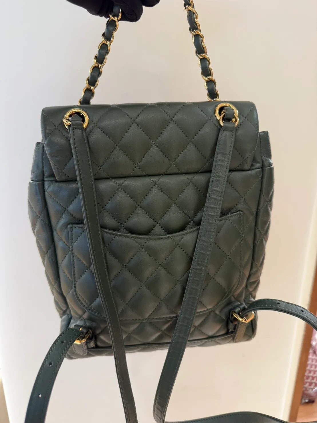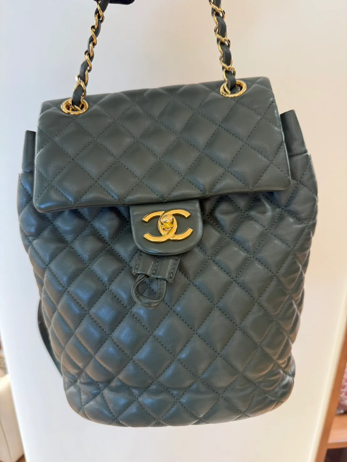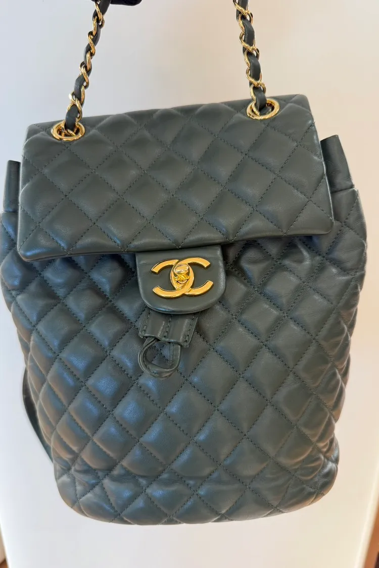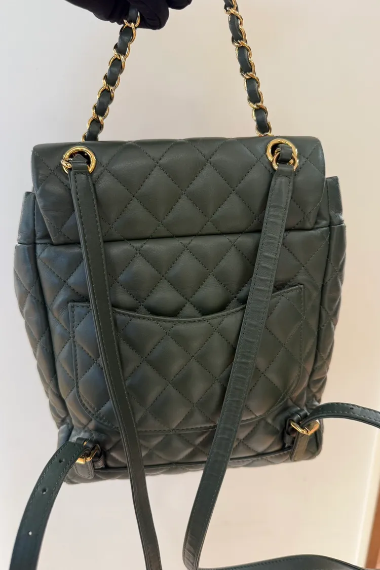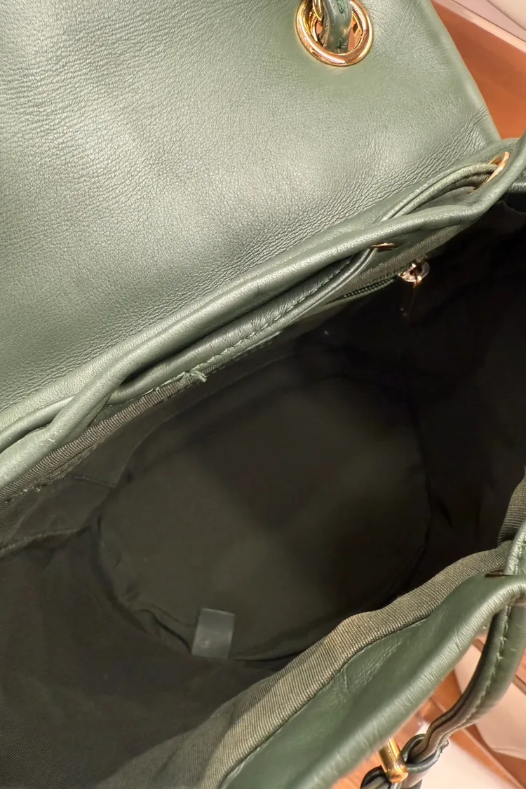 39 Chanel羊皮綠色金扣雙肩包 小號25x20cm 24開 95成新