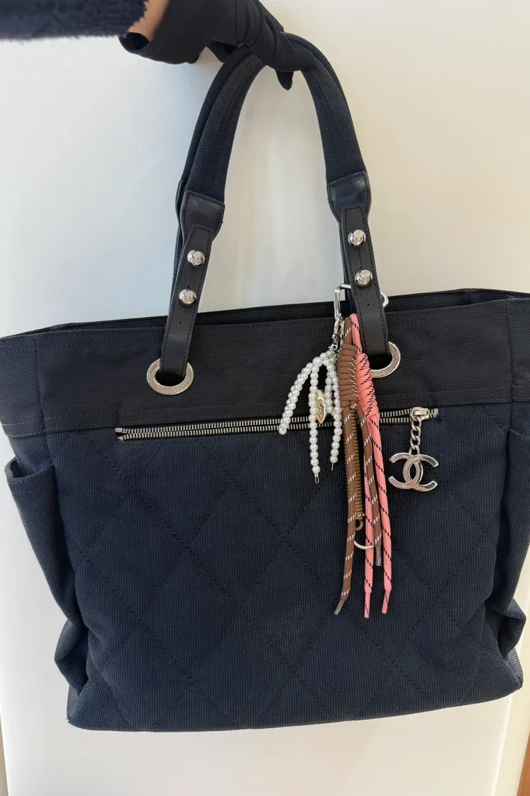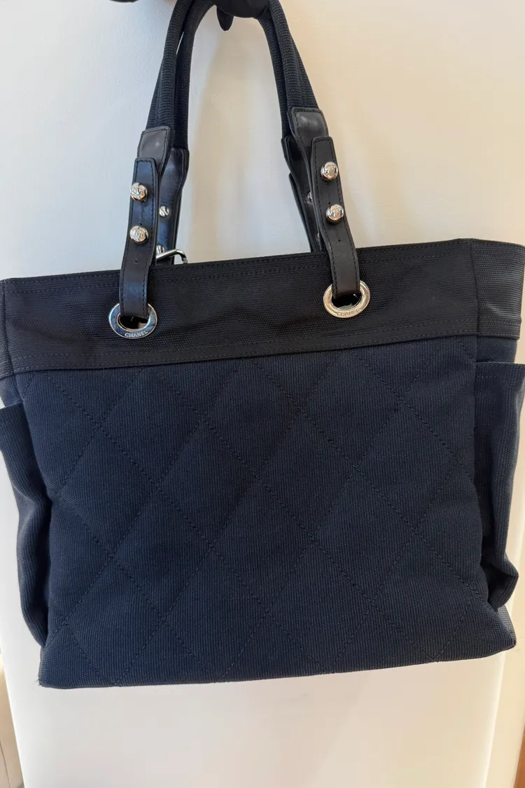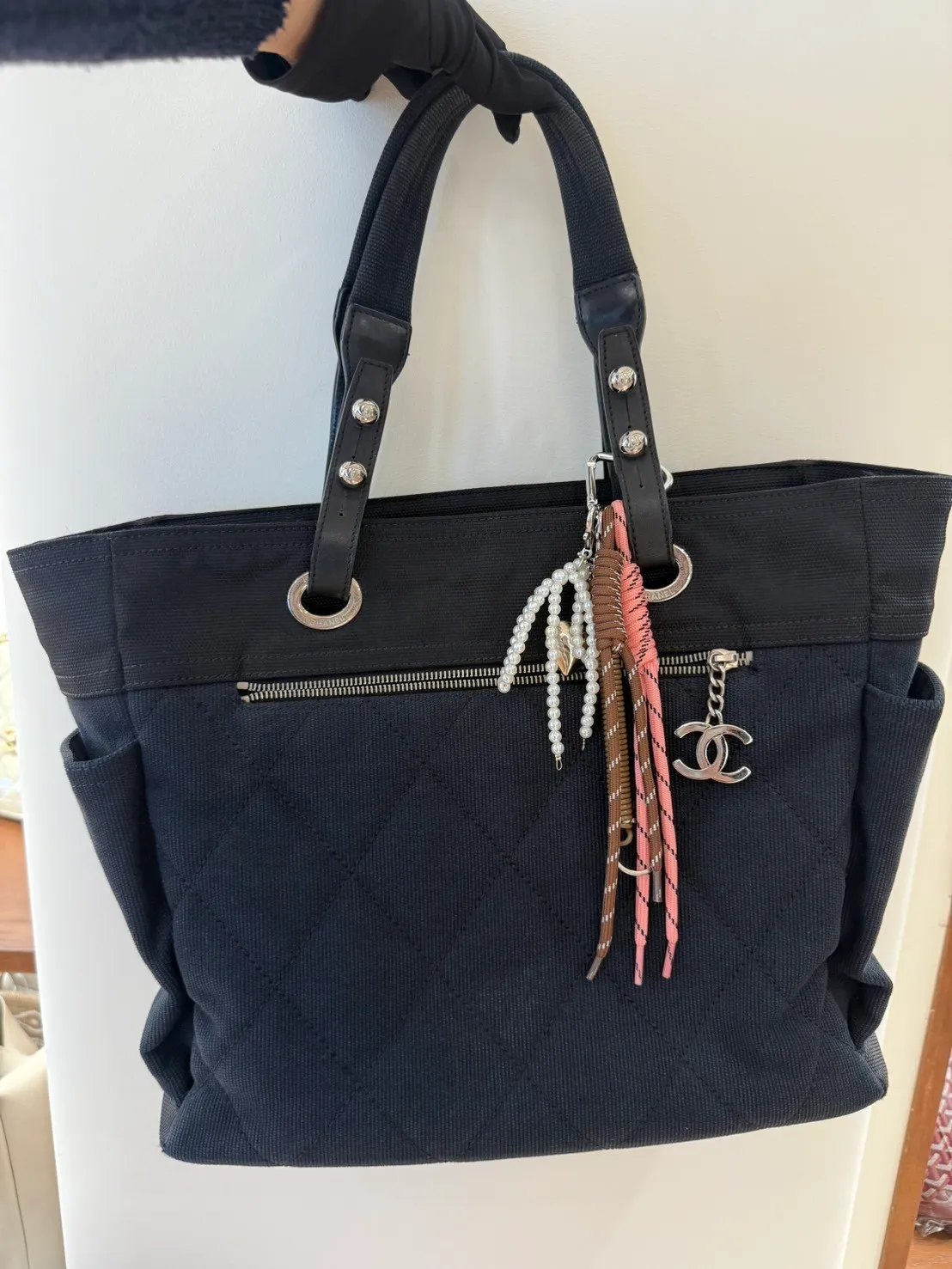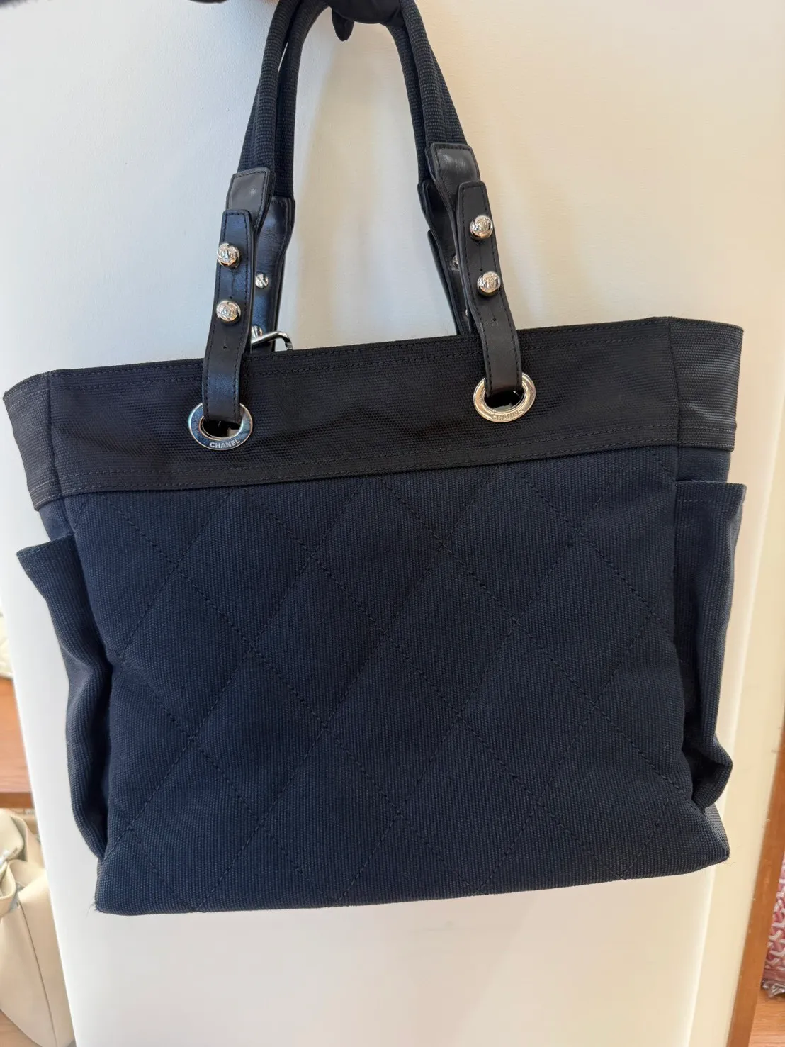 41 Chanel黑拚海軍藍帆布托特包 9成新