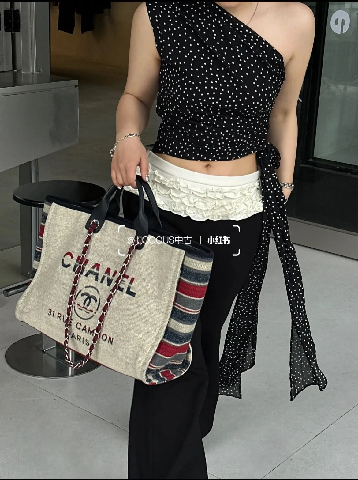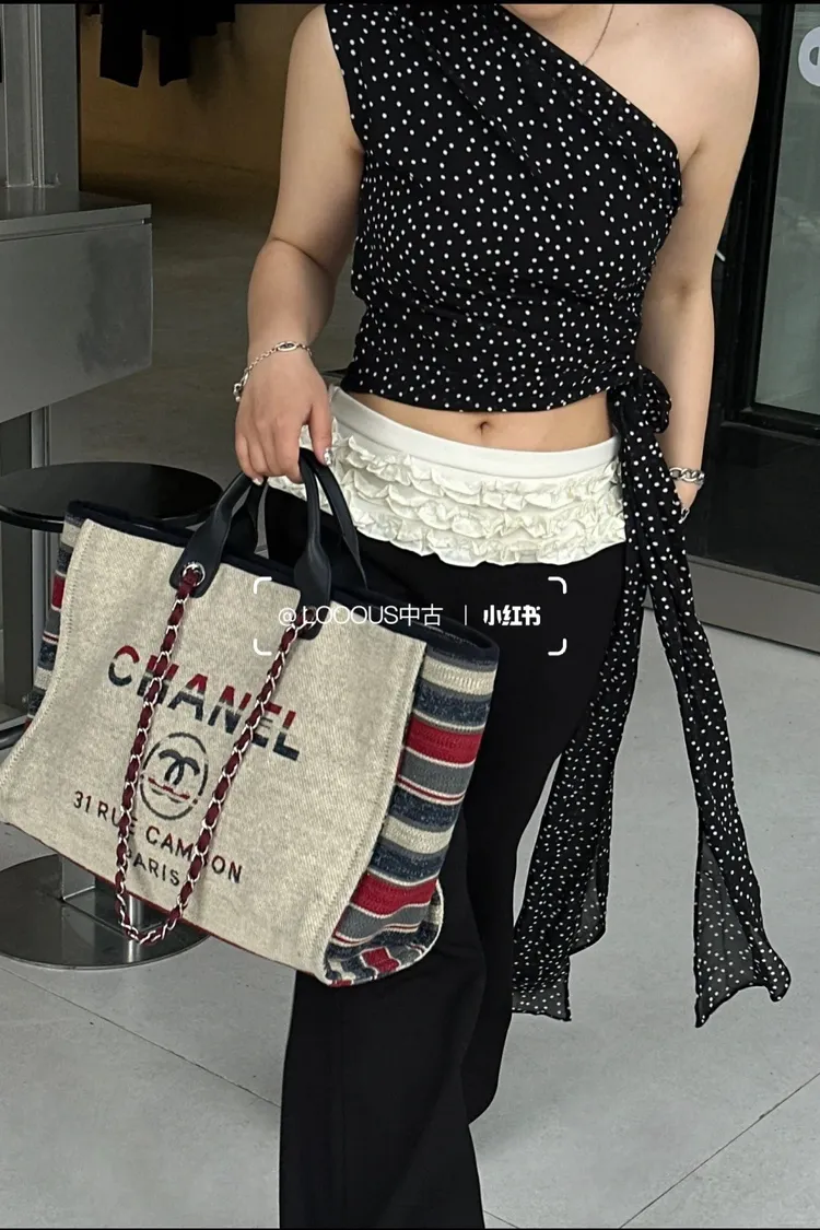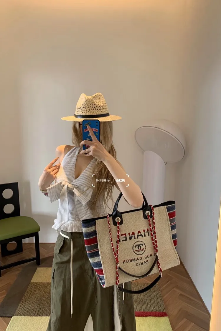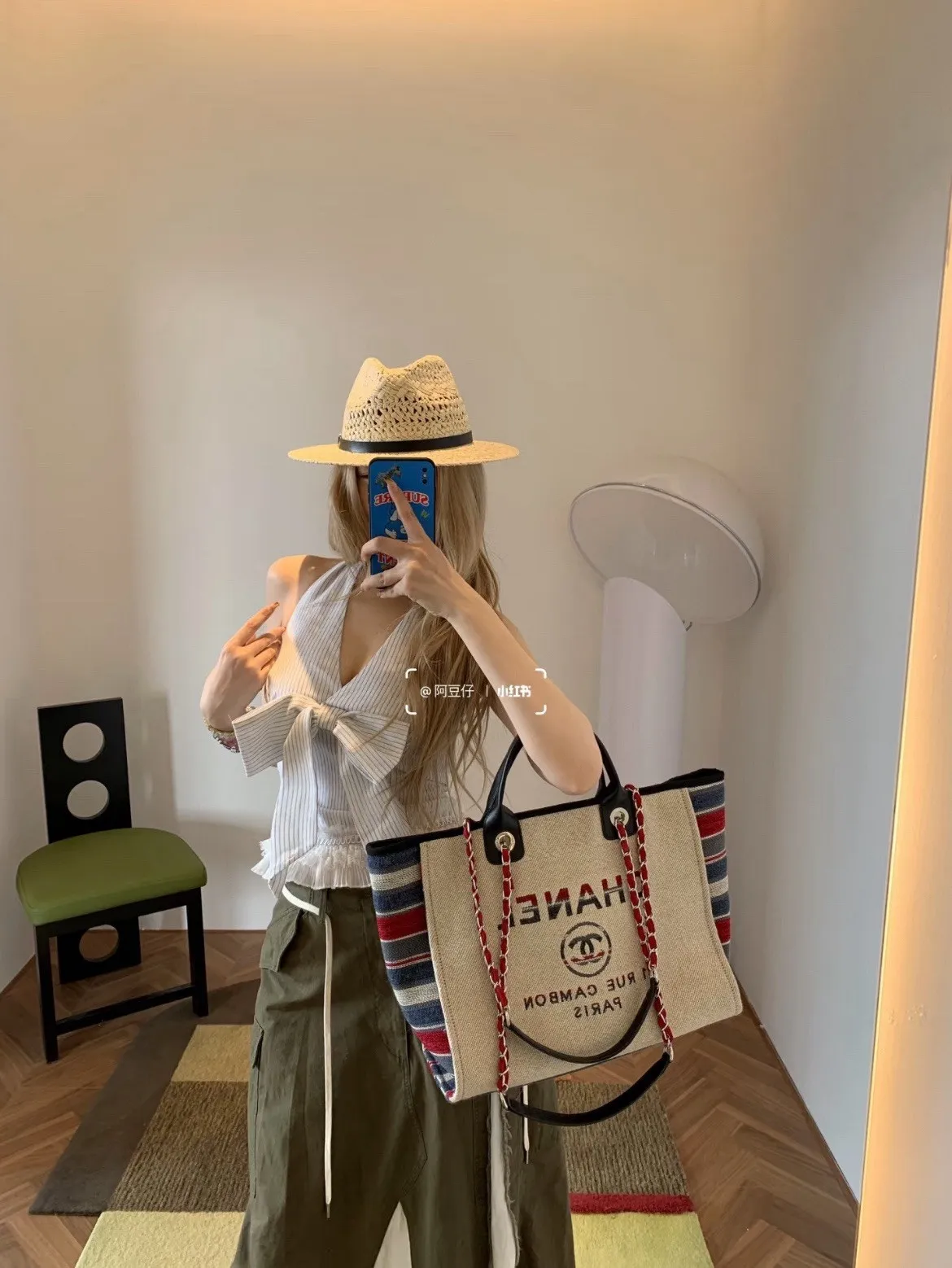 45 Chanel沙灘購物包 復古色 大號32x55cm 26開 95成新