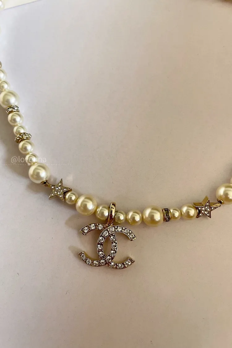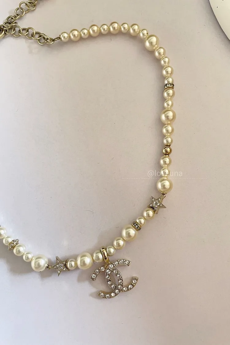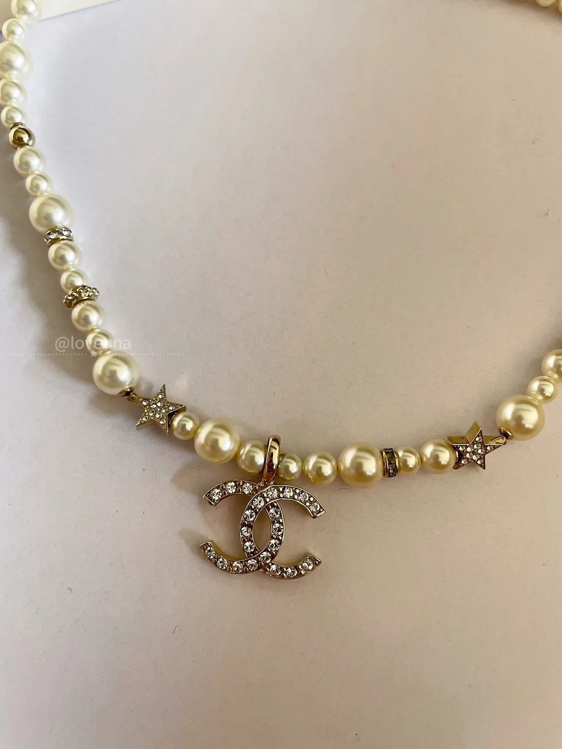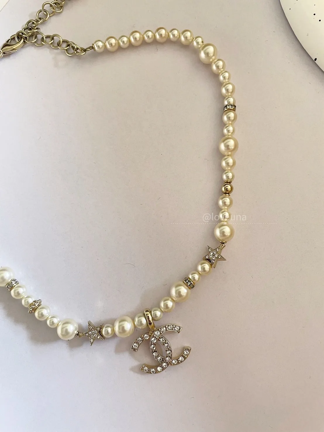 台灣現貨 Chanel珍珠星星滿鑽CC項鍊 95成新