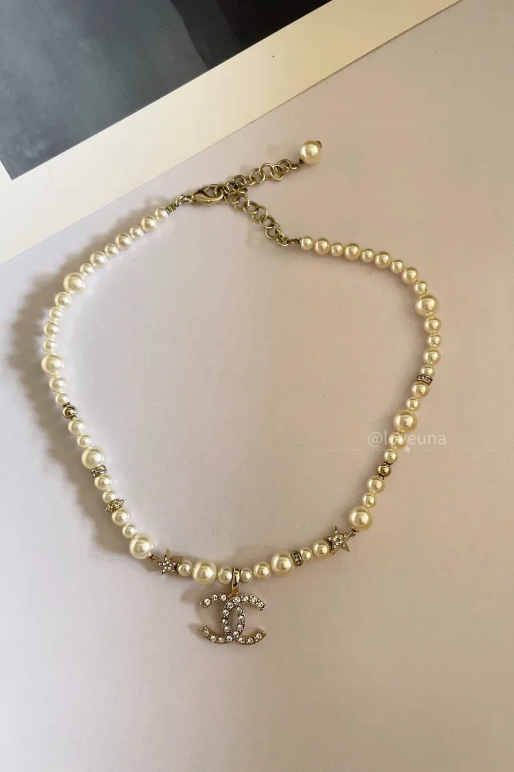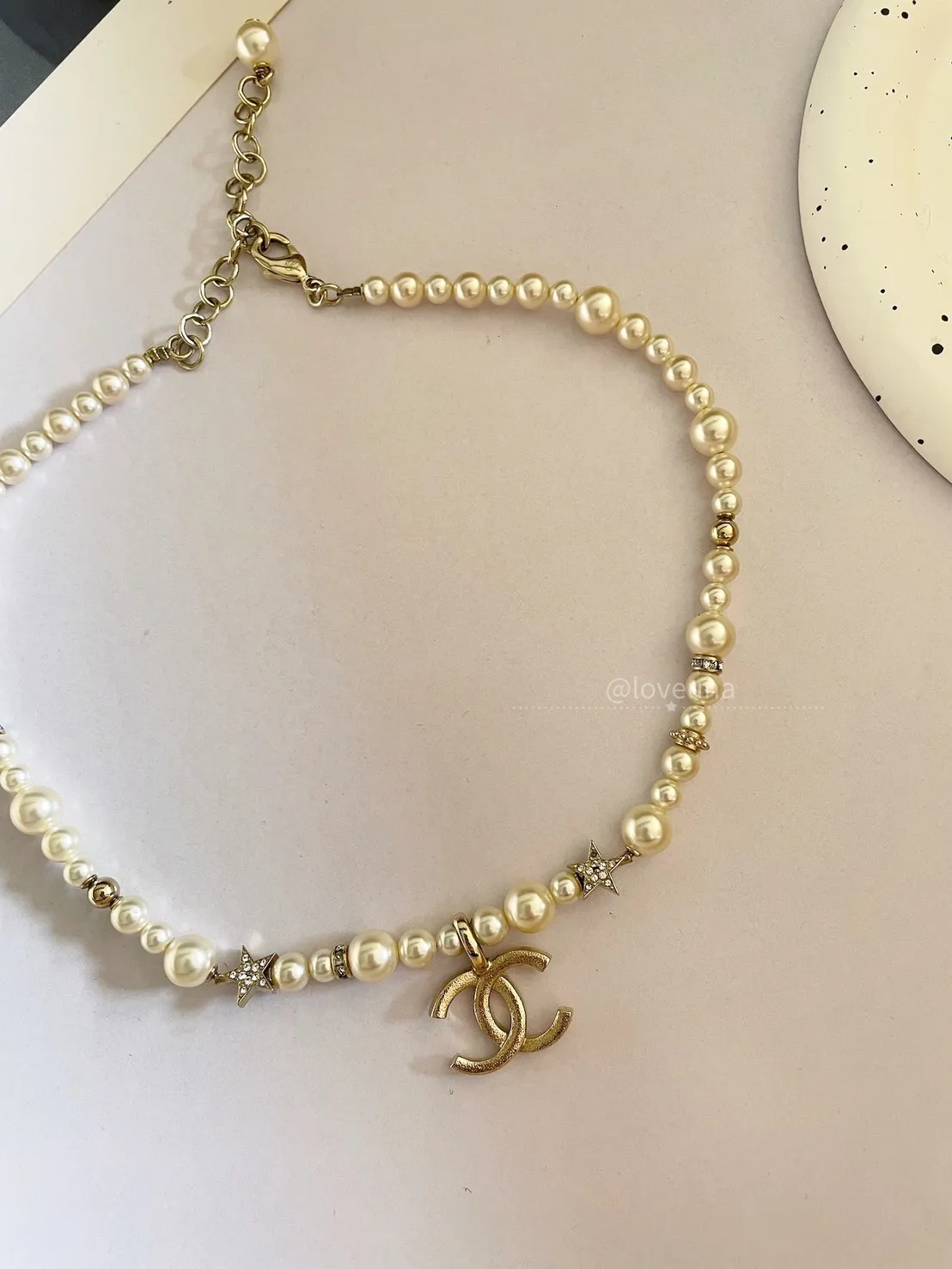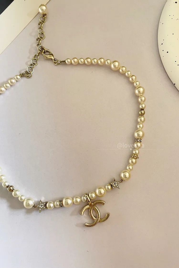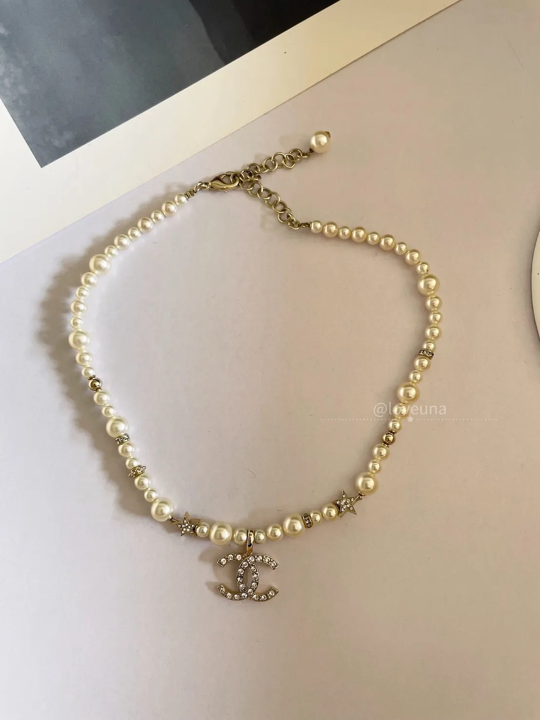 台灣現貨 Chanel珍珠星星滿鑽CC項鍊 95成新