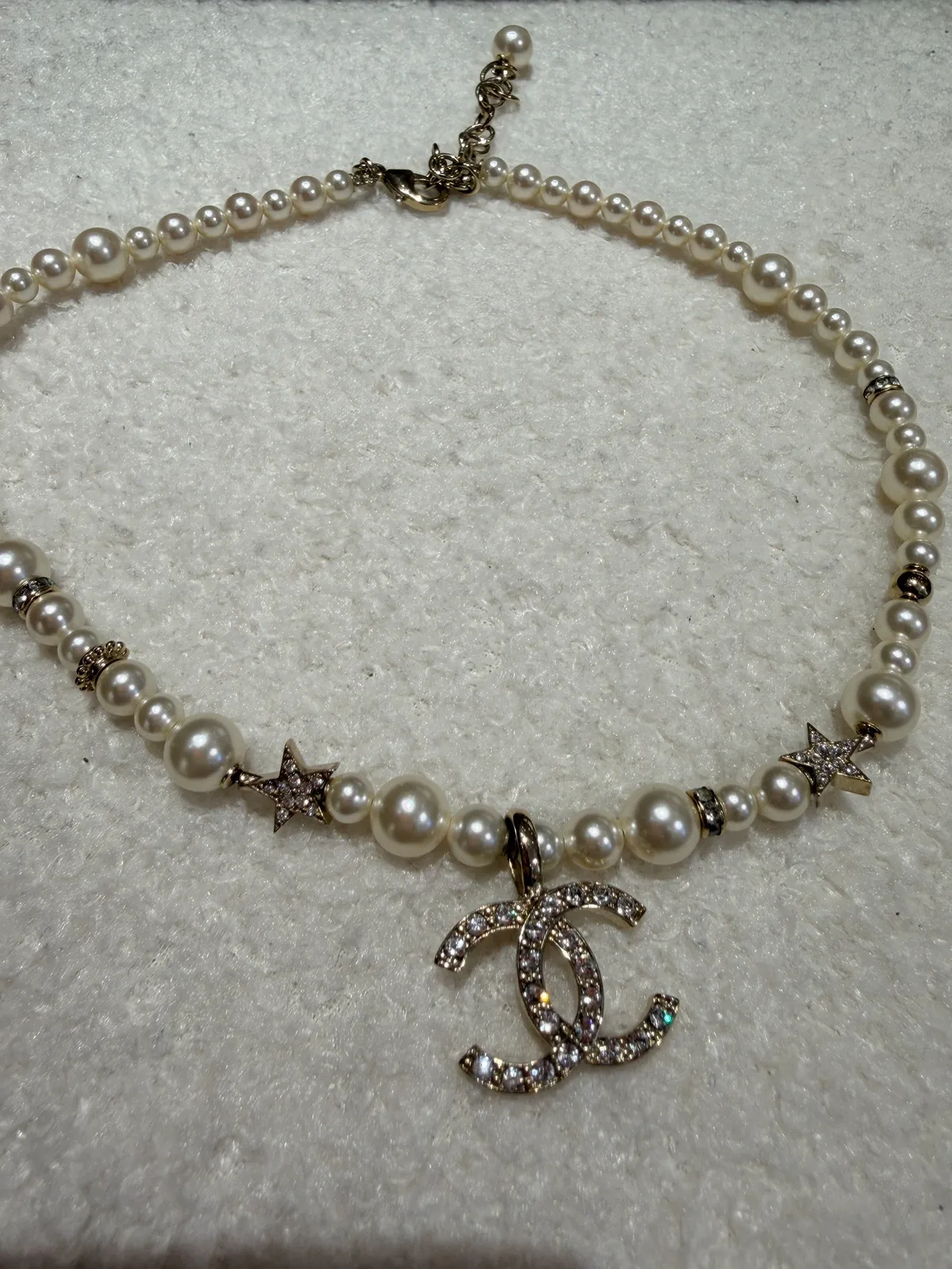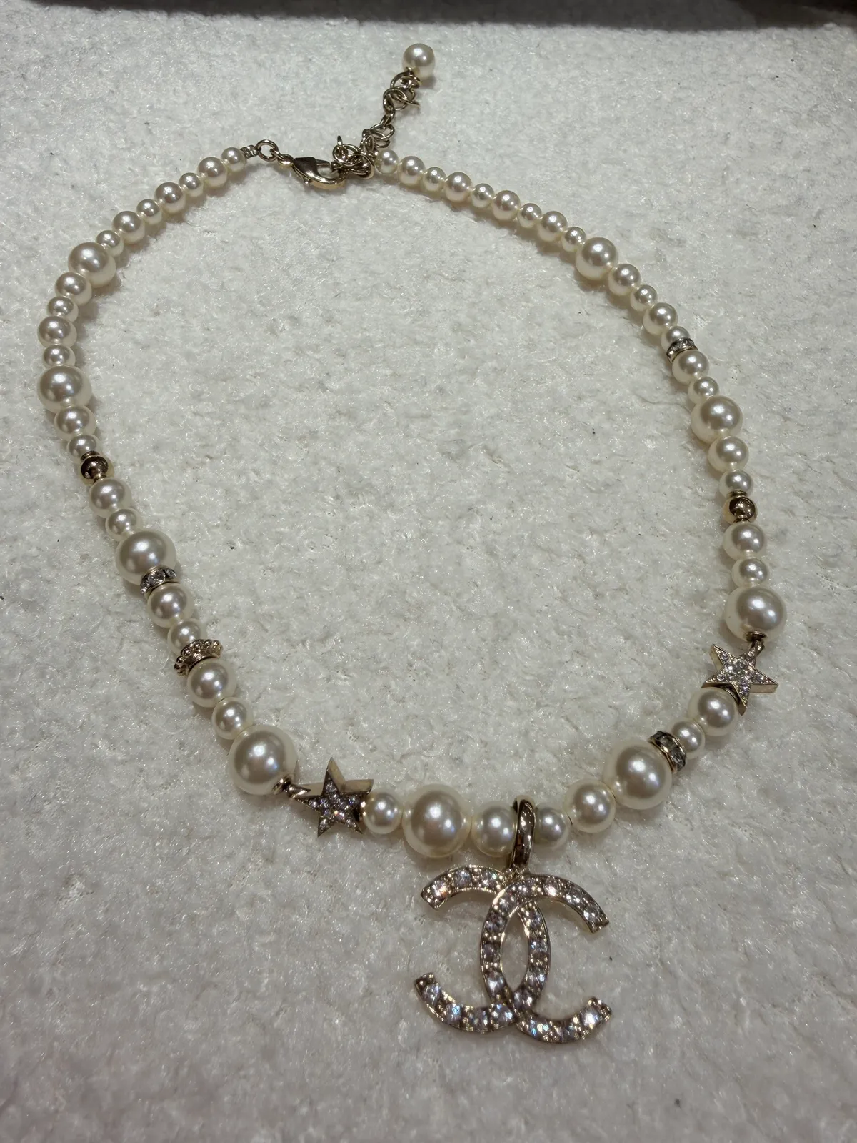 6 Chanel珍珠星星滿鑽CC頸鍊 95成新