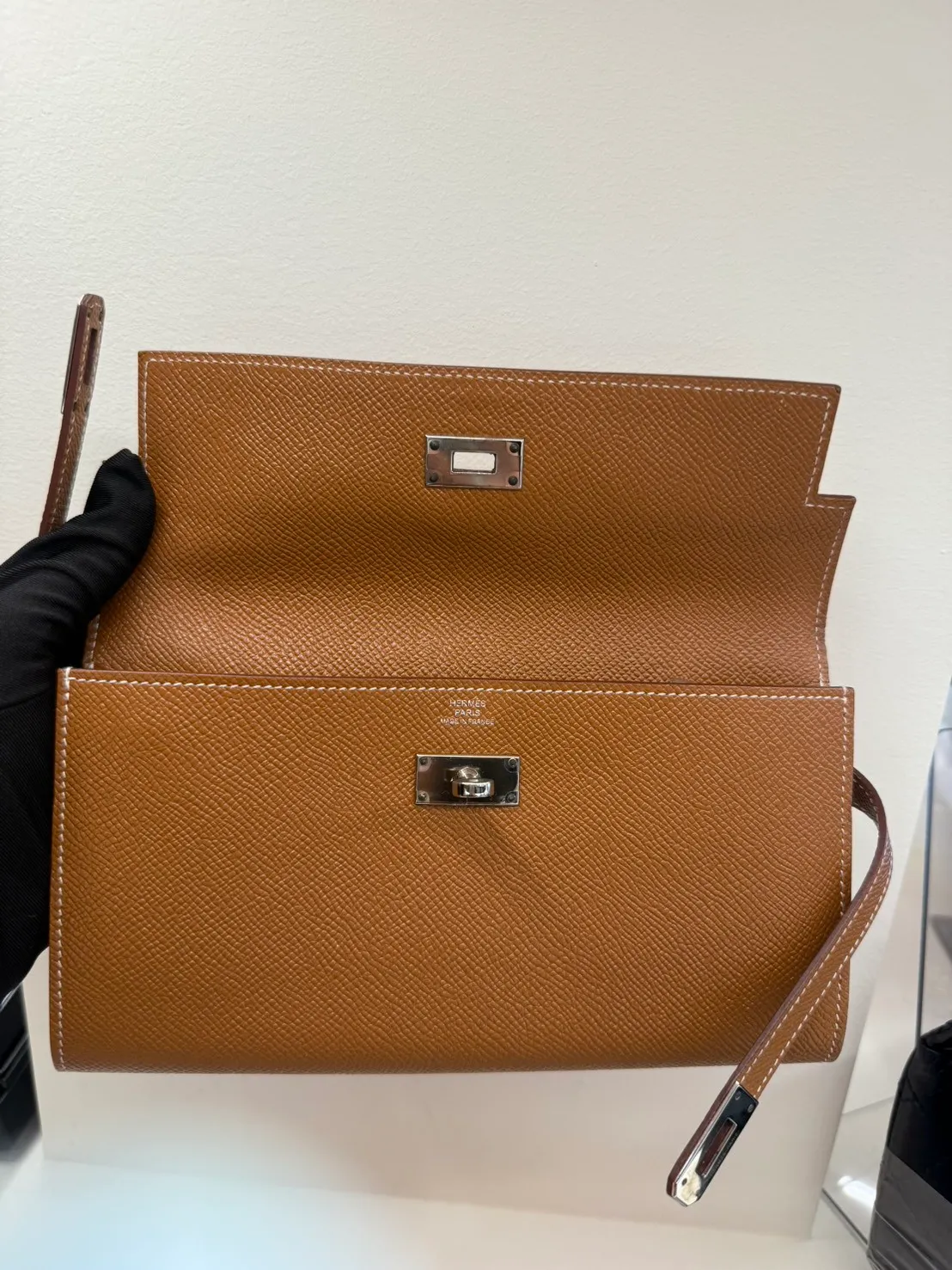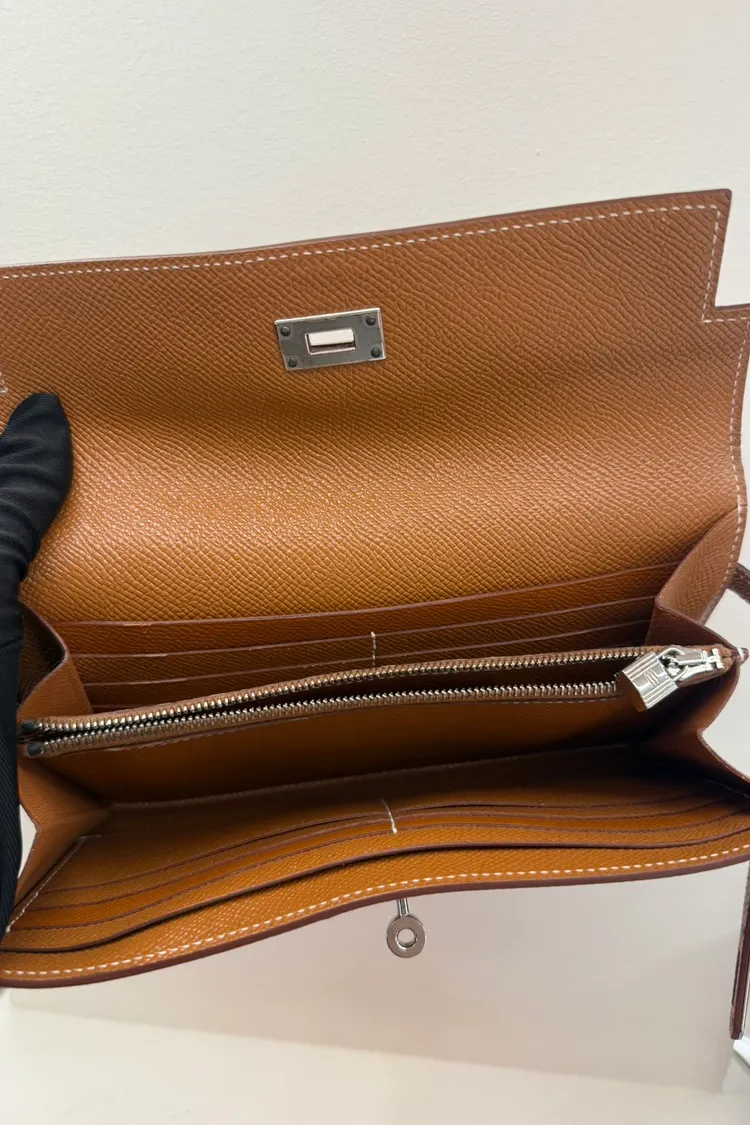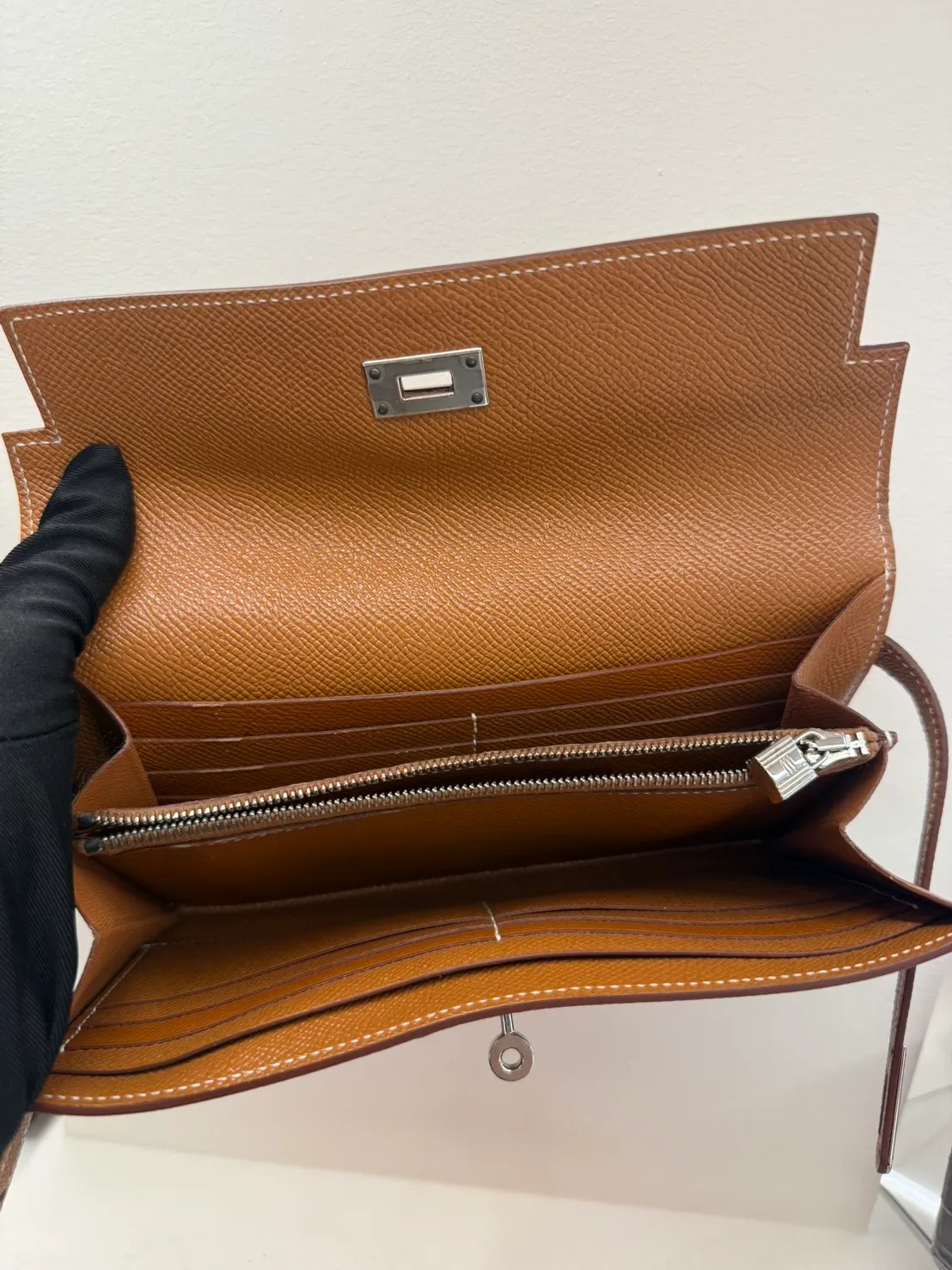 9 Hermes Kelly長夾 金棕x銀扣 C刻 98成新