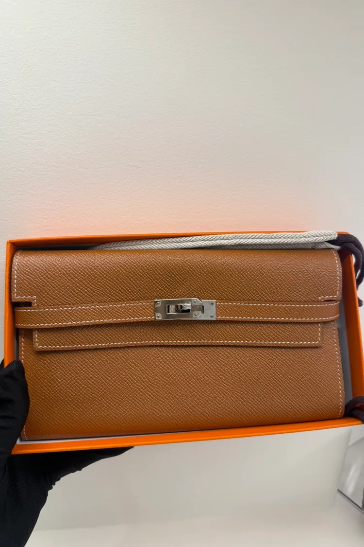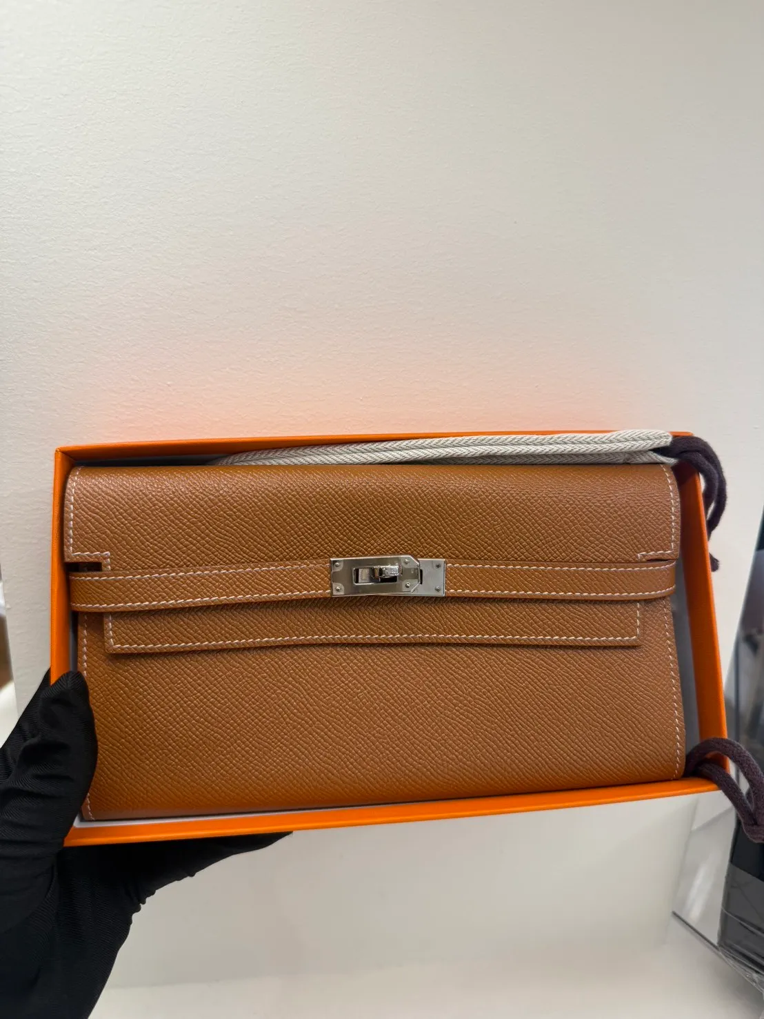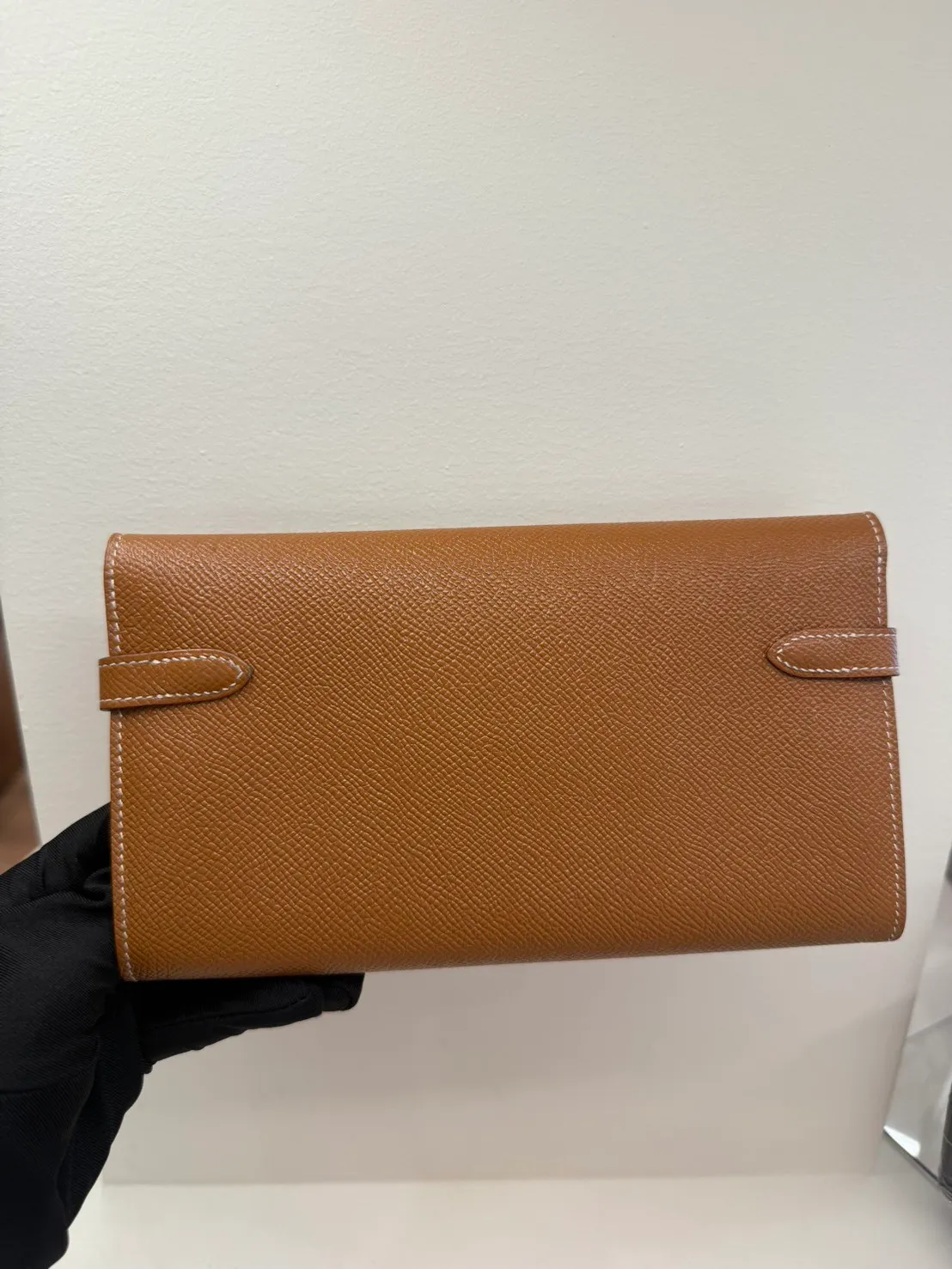 9 Hermes Kelly長夾 金棕x銀扣 C刻 98成新