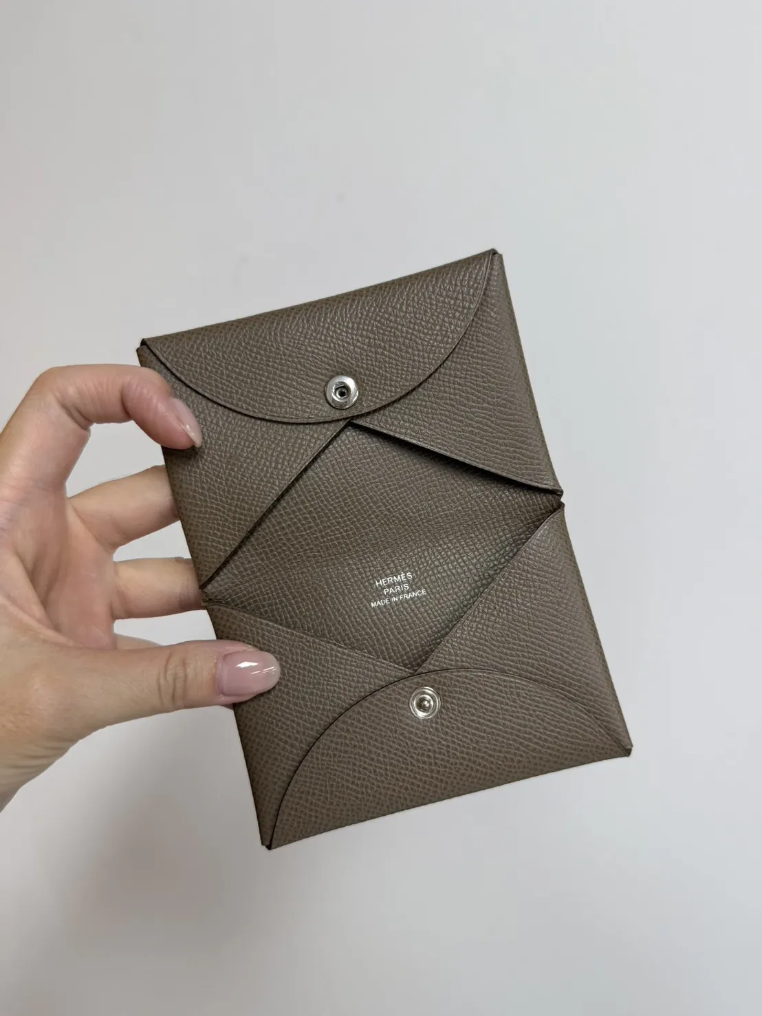 A08 Hermes雙層信封零錢包 大象灰 9成新 有盒