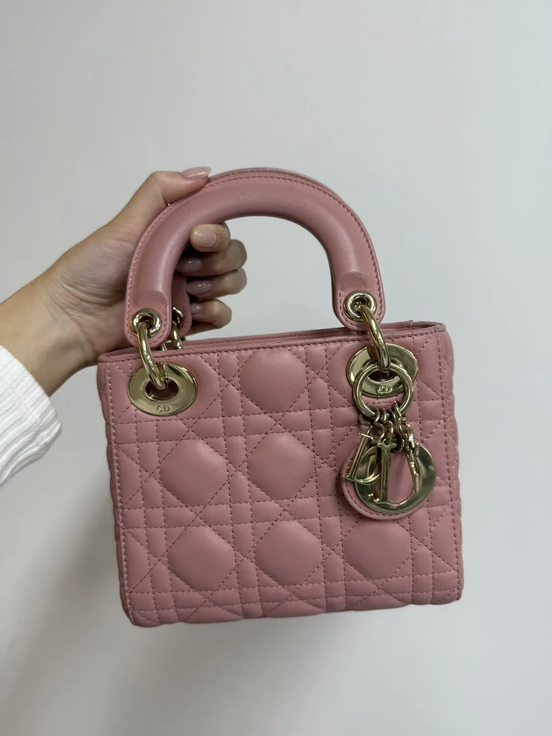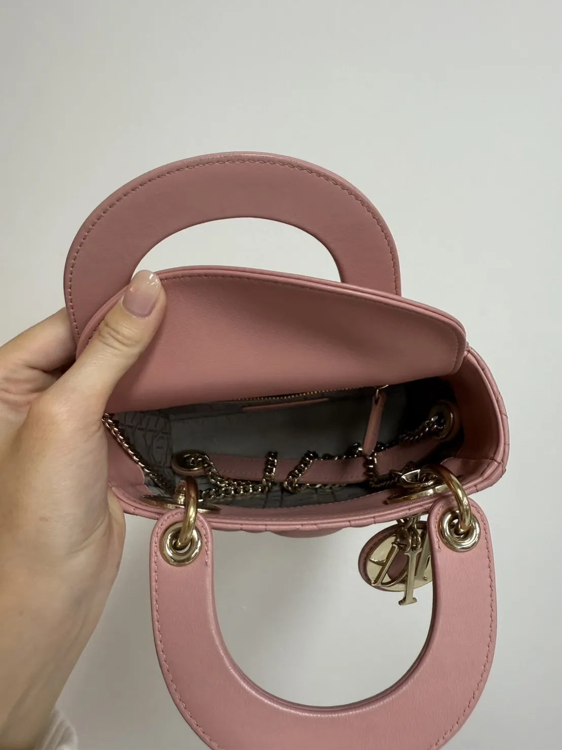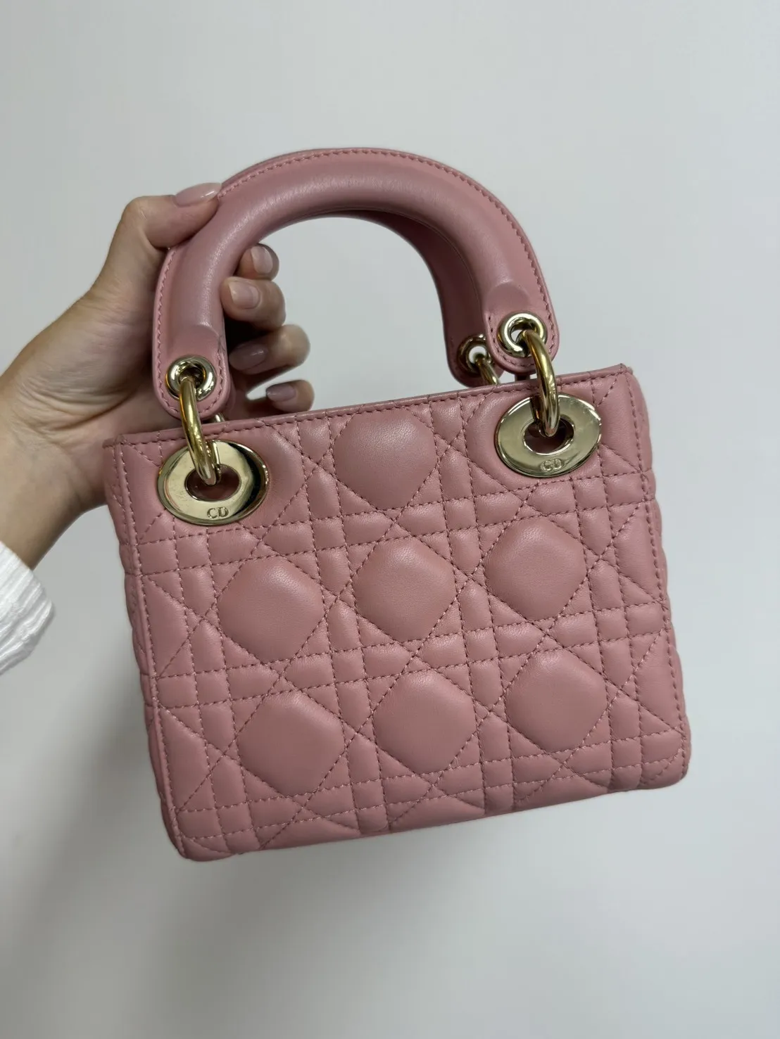A13 Dior mini黛妃包 乾燥玫瑰粉金扣 85成新