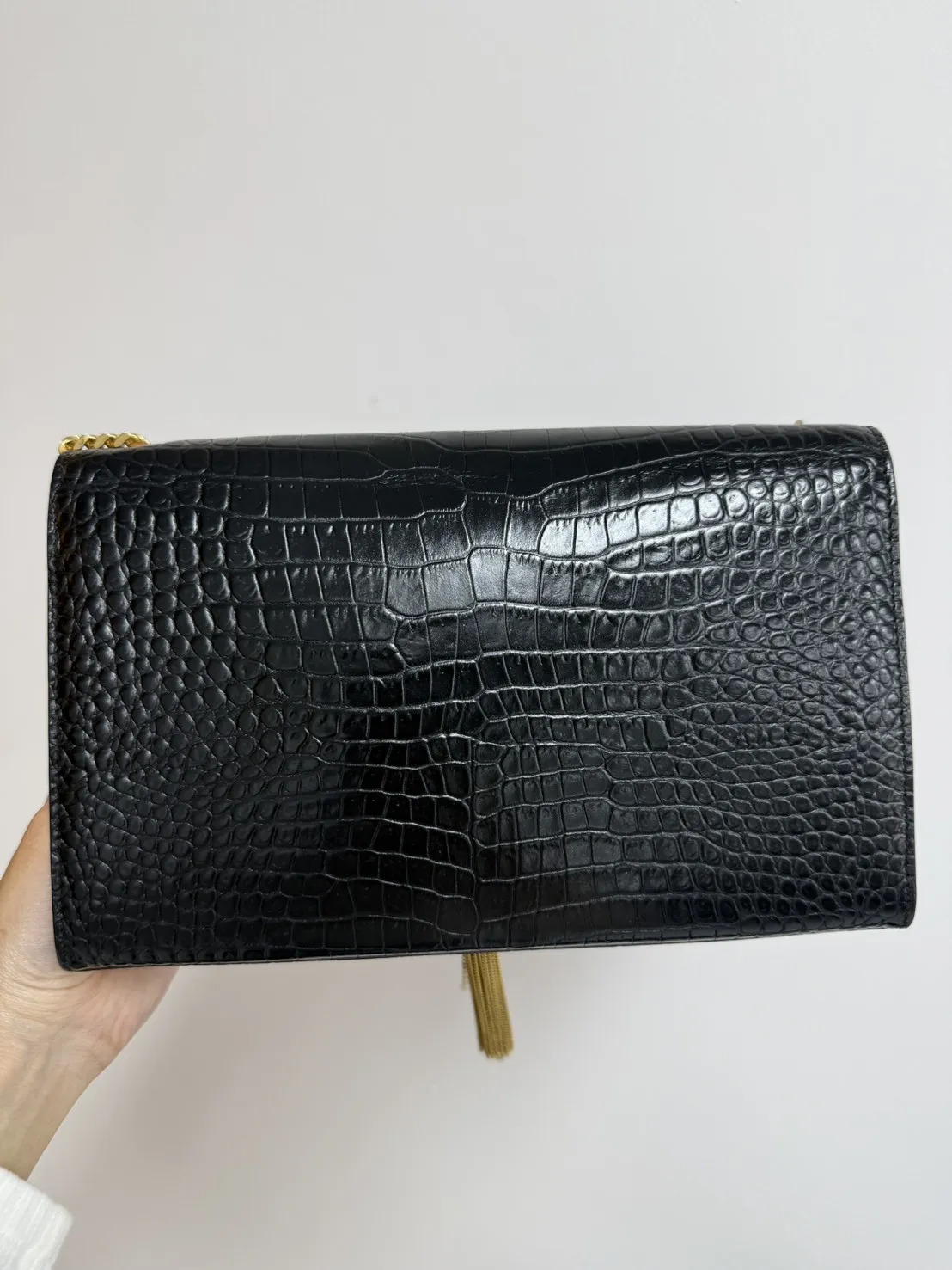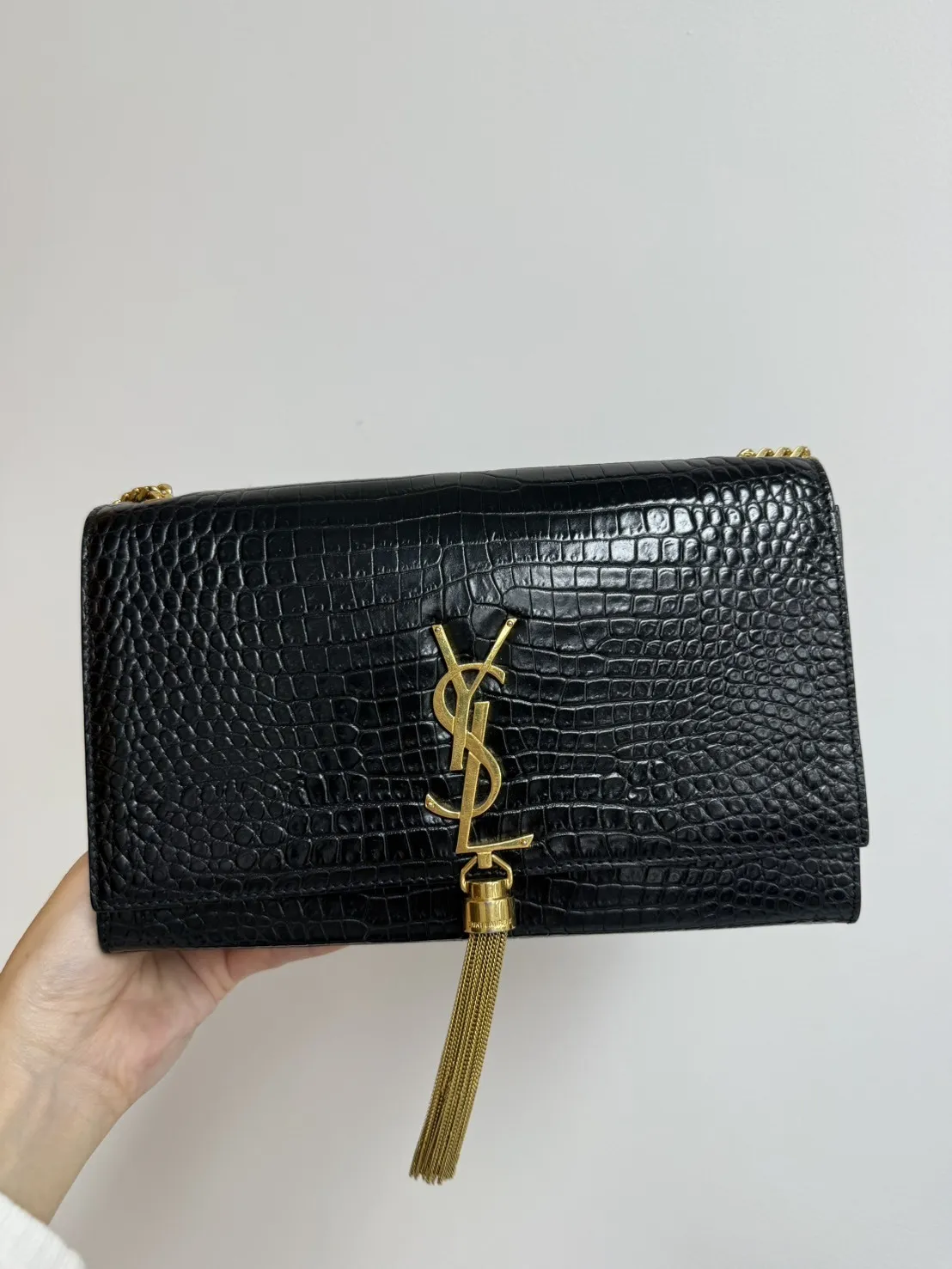 A15 YSL 牛皮鱷魚紋金鍊流蘇扣woc 95成新