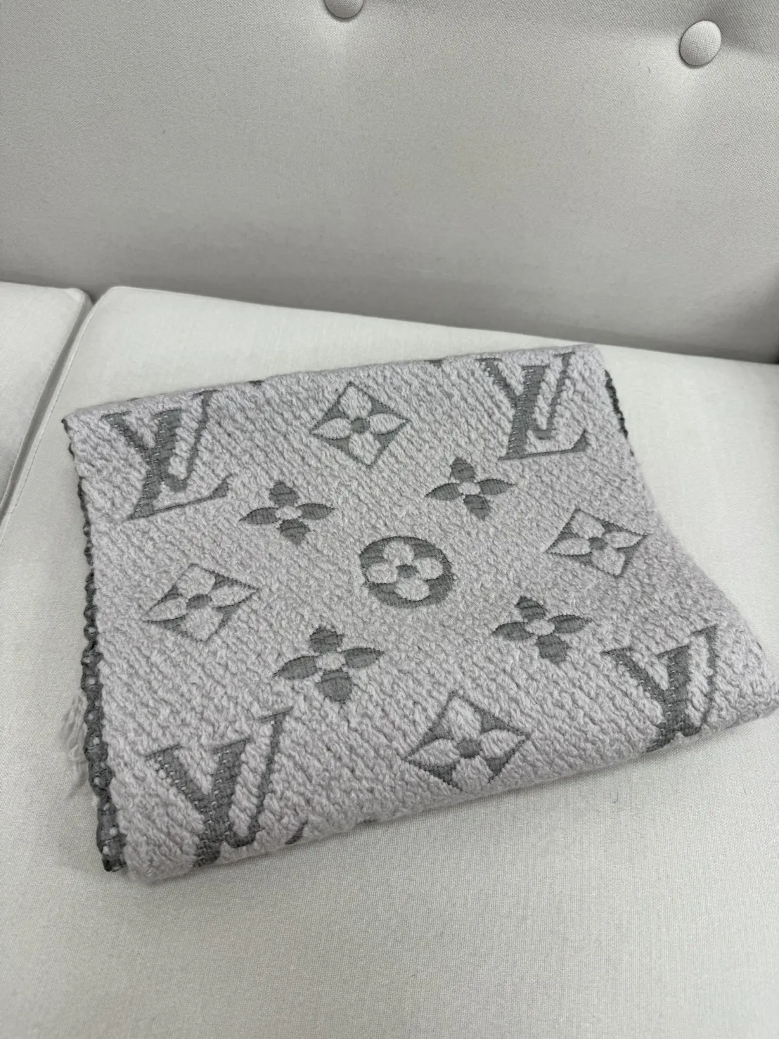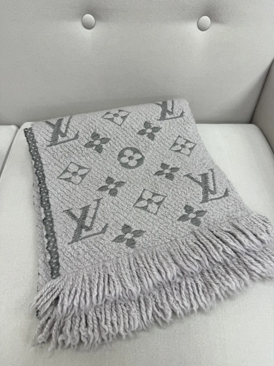 A35 LV 灰色雙面圍巾94%羊毛6%絲 全新閒置