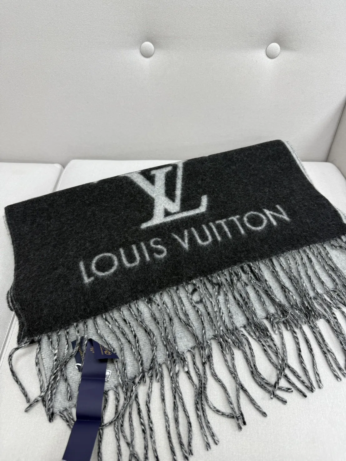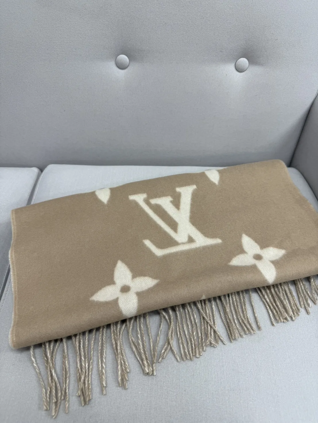 A36 LV 黑色/奶茶100%山羊絨雙面圍巾 全新閒置
