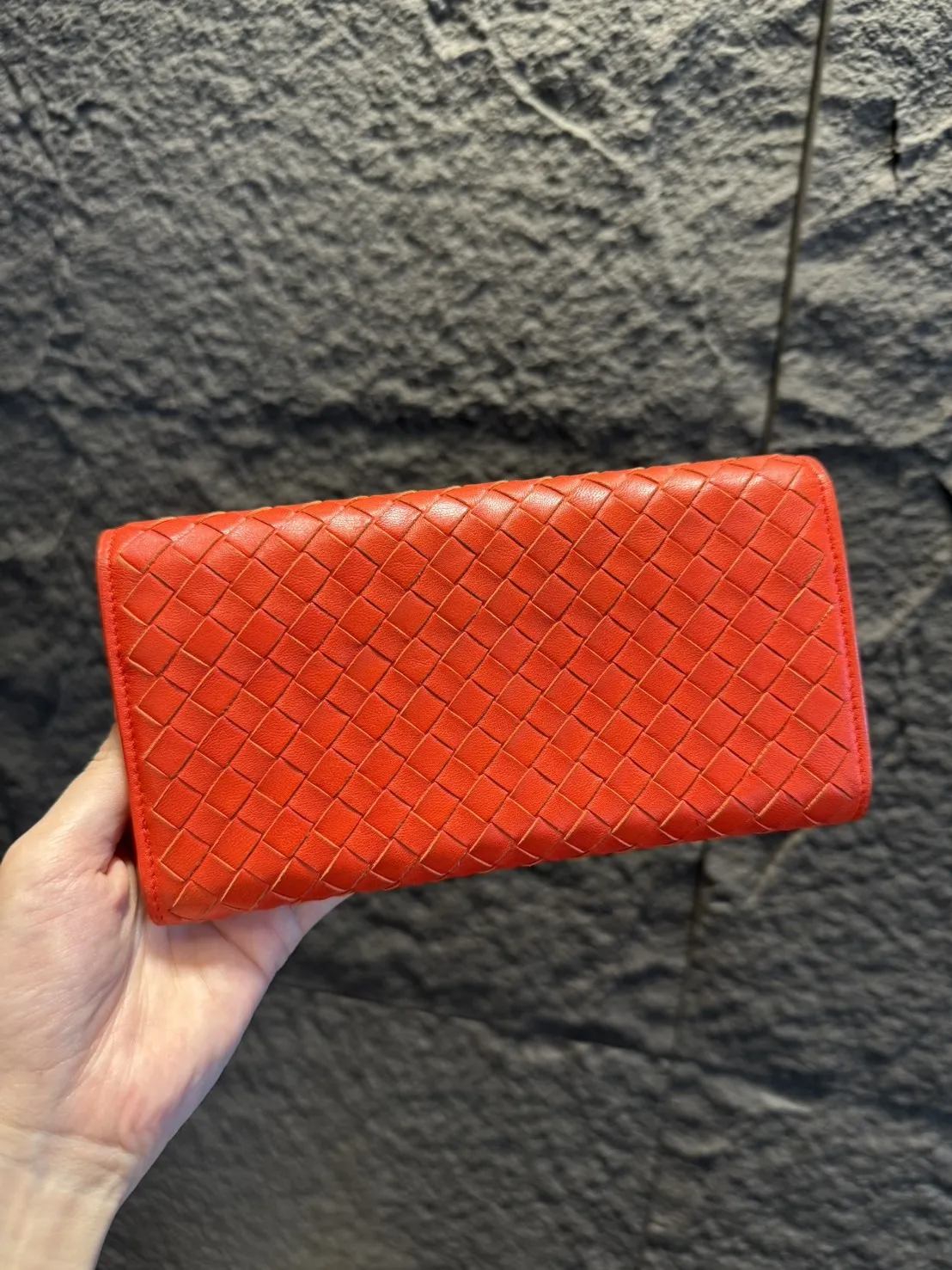 C07 BV 橘紅羊皮編織信封式長夾 9成新