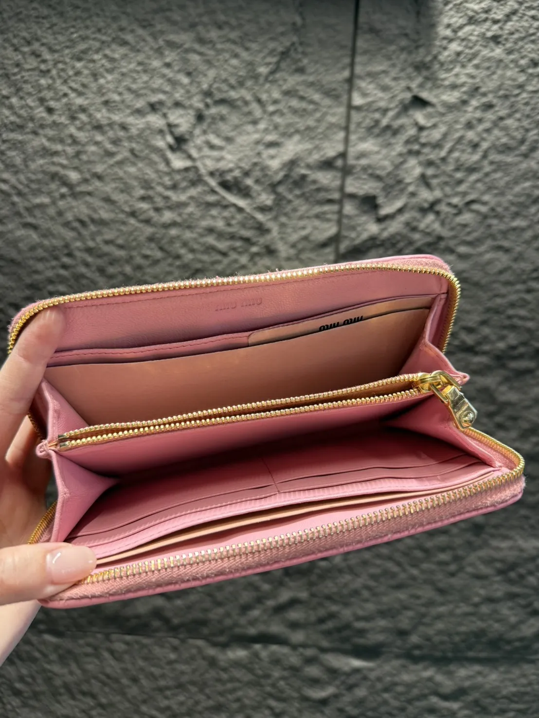 C14 miumiu 粉色拉鍊羊皮長夾 有盒有購證 95成新