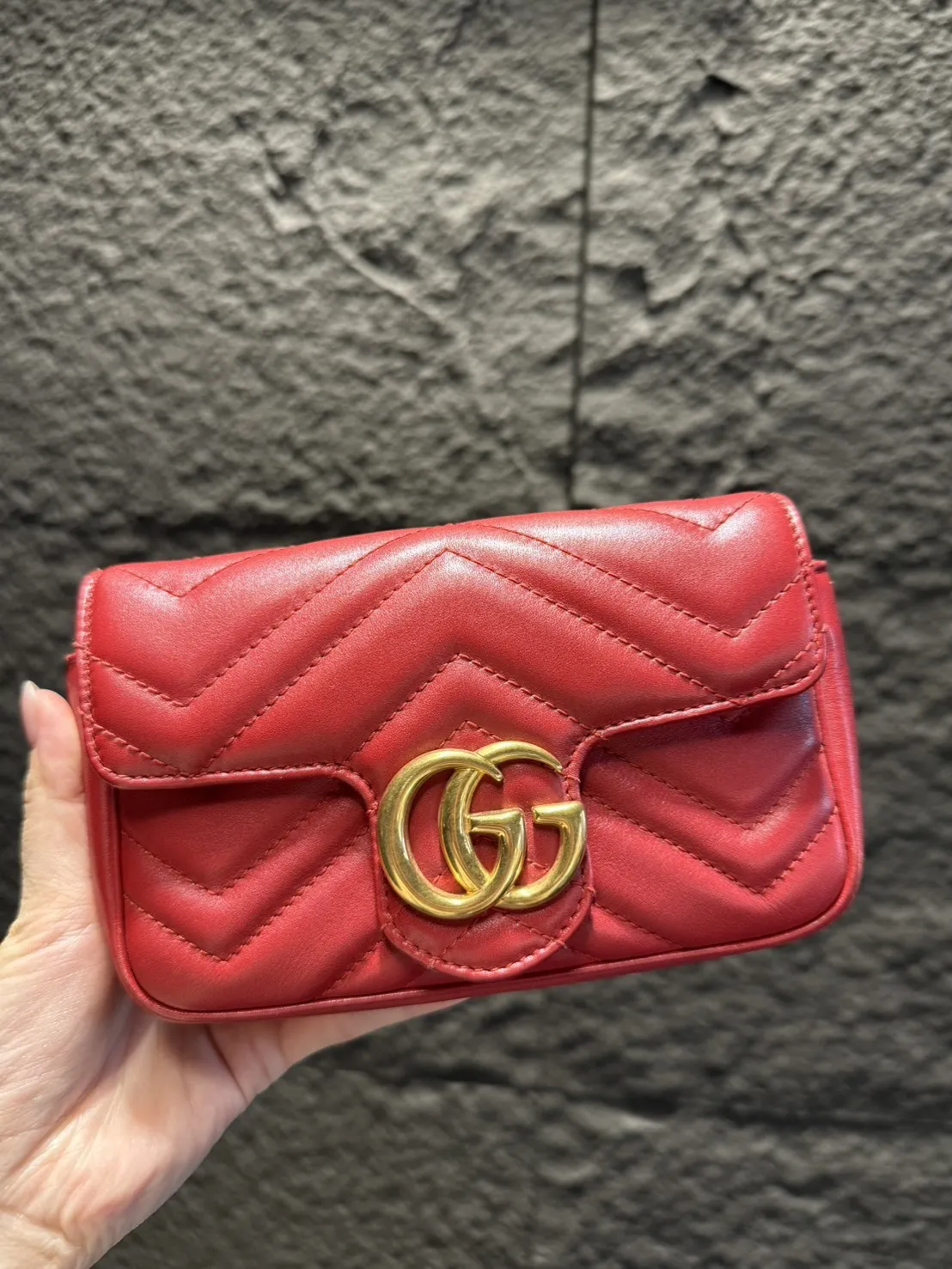 C15 Gucci mini 紅色Marmont包 金鍊 95成新