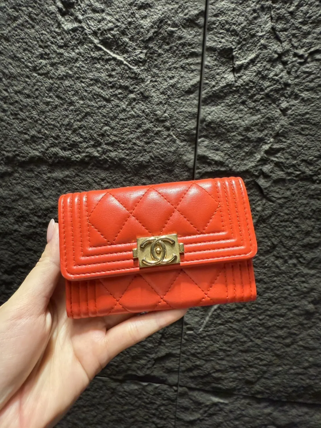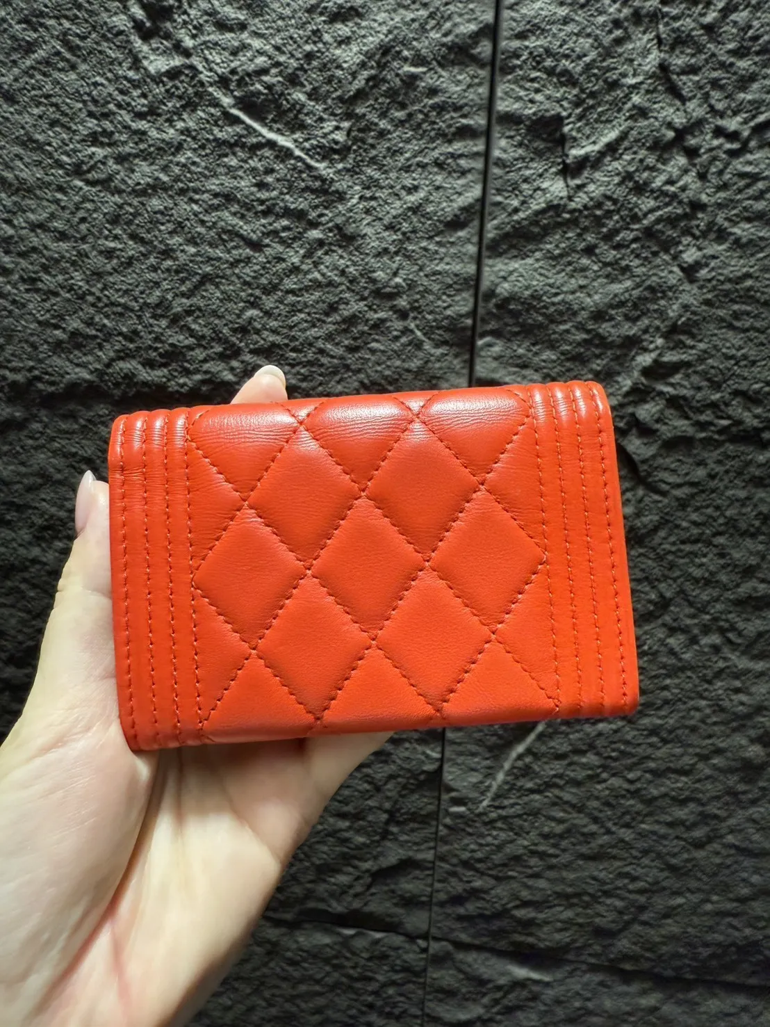 J01 Chanel boy 23開 橘紅金釦卡包 95成新