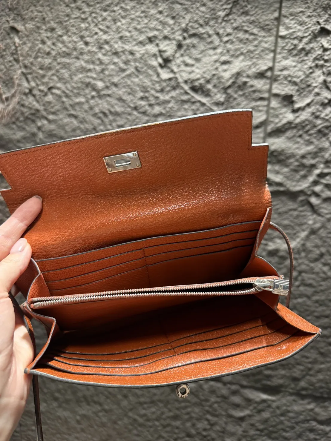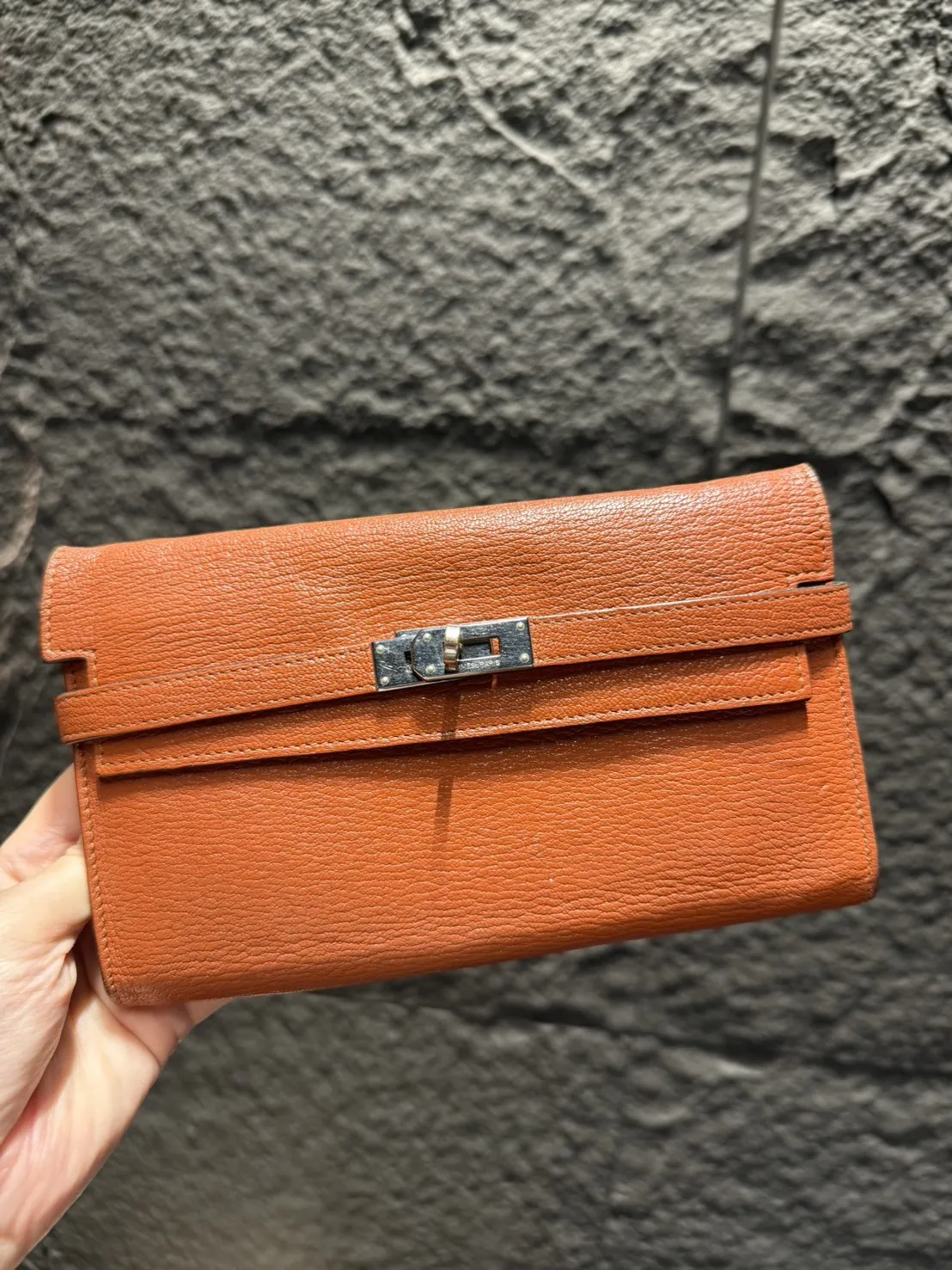 J08 Hermes Kelly長夾 磚紅銀釦 A刻 95成新